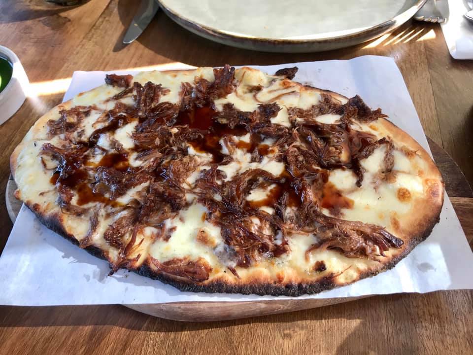Tadım menüsünün tuzluları burada biterken sipariş ettiğimiz diğer ana yemek zincire ekleniyor. Garsonun tavsiyesi ile “dana kuyruk etli lavaş” söylemiştik. Başta pöç zannedip bu yemeği esgeçmiştik (pöç ikimize de ağır geliyor), garson tavsiye edince de pöç sevmediğimizi söyledik. Ancak garson “Hayır pöç değil, bu yemekte kullanılan hayvanın kuyruk yerine yakın ancak yine gövdedeki etidir” deyince siparişe ekledik. Çok da iyi bir tavsiyeymiş, işte beklediğimiz garson tipi. Menüde hamurun bilgisi lavaş diye geçse de tadının ve kıvamının pizza ile pide arasında olduğuna karar verdik. Peyniri, eti cidden çok lezzetliydi, sos olarak kullanılan incir sos çok yakışmıştı, hatta daha bol bile konabilirdi. Bence yiyecekseniz sosunu bol isteyin.