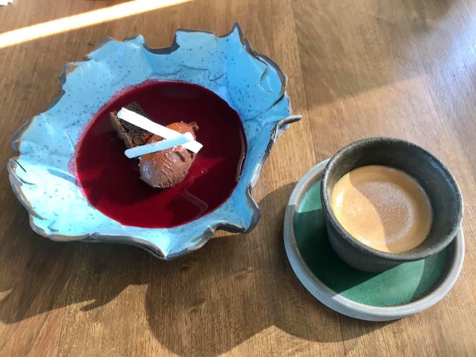 Tatlı olarak vişne sosu içinde gelen parfemsi mus, yoğun çikolata tadıyla çok başarılı. Ama esas tebrik kahveye gitsin benden. Çok ciddiyim, bir restoranda bu kadar iyi yapılmış espressoya nadir rastlıyorum. Kalkmadan soracaktım lakin aklımdan çıkmış; makineleri, kahveleri her ne idiyse, baristaları kimse bravo.