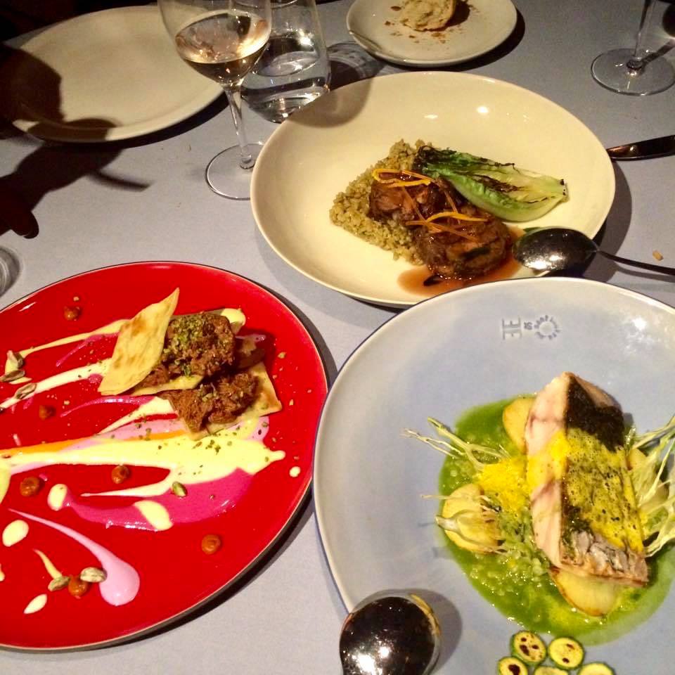 İlk fotoğraftaki başlangıçlar muhammara, ızgara sebze ve topik. Topik en sevdiğim mezelerden biri olduğu için onu özellikle merak ettim, keza muhammara da, sebze de çok severim. Topiğin tahin sos içinde yüzen adacıklar gibi sunumu çok hoş, görüntüsü de eğlenceli. Tat olarak bakarsak daha iyi topikler yemiştim, lakin o tat için sanırım formatın da klasik format olması gerekiyor. Muhammaranın üstünde otlarla renkli renkli sunumu başarılı ve mezeye farklı bir formata büründürüyor. Genel olarak bu başlangıçların hepsinin sunumu gayet iyi, tat olarak da başarılı, fakat “muhakkak tadılmalı” sınıfında değildiler.