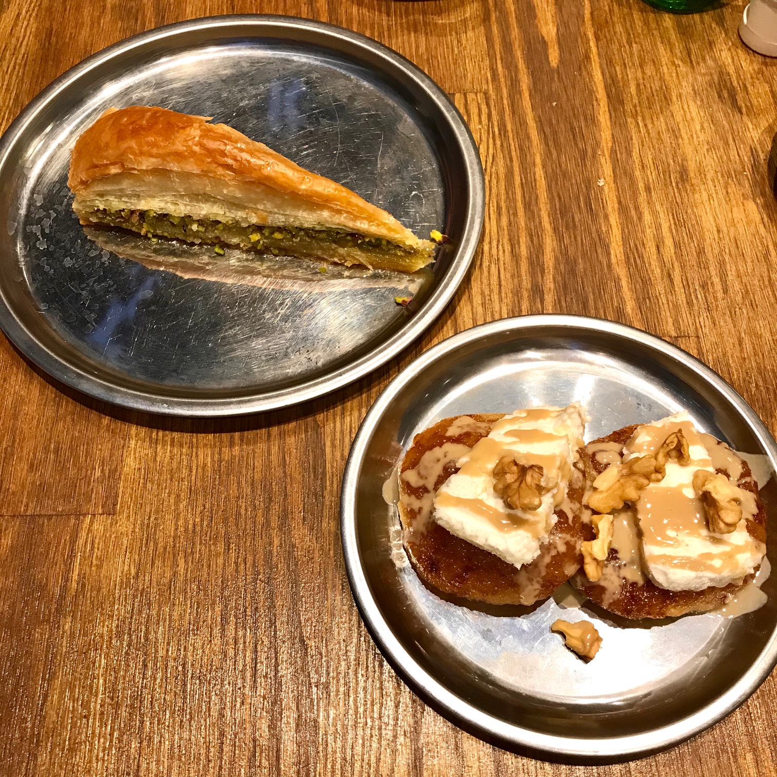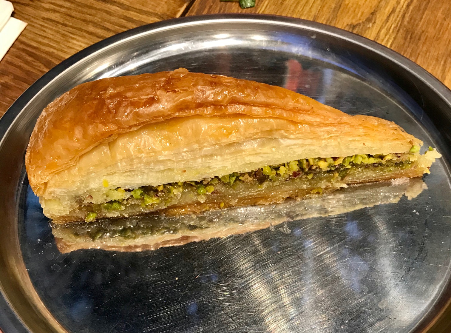 Bu kadar yemeğin üstüne bile olsa, tatlı yiyecek yerim daima vardır! Afil’de iki tatlı sunuluyor, biri kaymaklı, tahinli kemalpaşa, diğeri ise havuç dilimi. Kemalpaşa, endüstriyel üretim tipinde değil, ayrıca daha irice, süngere çevirmeden adabınca şerbetlenmiş. Havuç dilimi ise Antep’ten getiriliyor, Fıstıkzade imalatı. Şef Cem Bey, “Elbette Antep’ten bile gelse hiçbir baklava Antep’te yapıldığı gün yenenin yerini tutmaz, ama mümkün olduğunca en iyisini servis etmeye çalışıyoruz” diyor. Eh, bir Antepliden de baklava konusunda böyle dürüst bir açıklama beklenirdi. Antep’le kıyaslanmaması şartıyla gayet güzel bir havuç dilimi, benim baklava tipi tatlılarda pek sınırım olmadığından bir tanesini rahatlıkla bitirebilirim, ama çoğu kişi muhtemelen paylaşarak yemeyi tercih edecektir, sipariş verirken bunu gözetin.