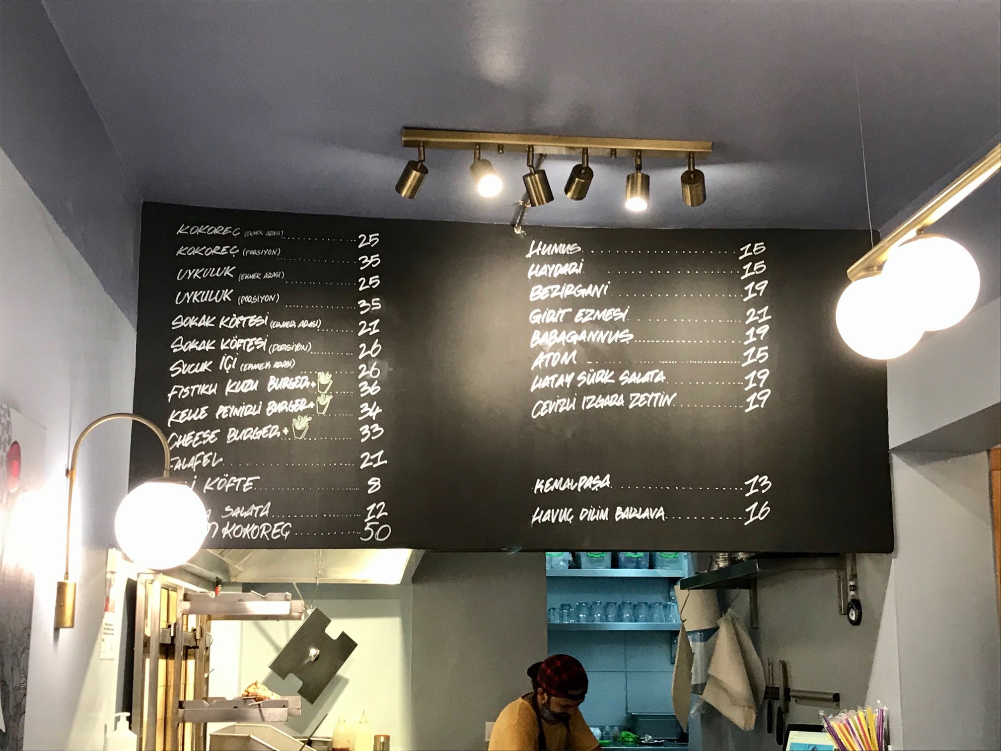 Menü ve fiyatlar mekanın içindeki kara tahtada yazıyor – sevdiğim bir başka şey, böylece sürekli menü istemek zorunda kalmıyorsunuz-, fotoğraftan tüm yenenlerin fiyatlarını görebilirsiniz. Bence fiyat/performans dengesi çok iyi. Metal tabaklar tam “tablacı” detayı, bence hoş bir ayrıntı. Izgara arkasında bu lezzetleri yaratan “Rafık” Cem Şef’in muhabbetini de ayrıca sevdik, bir şey sorduğunuzda güzel güzel cevap alabildiğiniz yerler bulmak çok hoş, değil mi? Cihangir’de bir yere geçmeden önce hızlıca yiyip kalkmaya müsait Özkonak gibi bir esnaf lokantasının yanına bir de böyle başka tarzda bir yer çok iyi olmuş doğrusu… Umarım “bozmadan” uzun yıllar devam ederler.