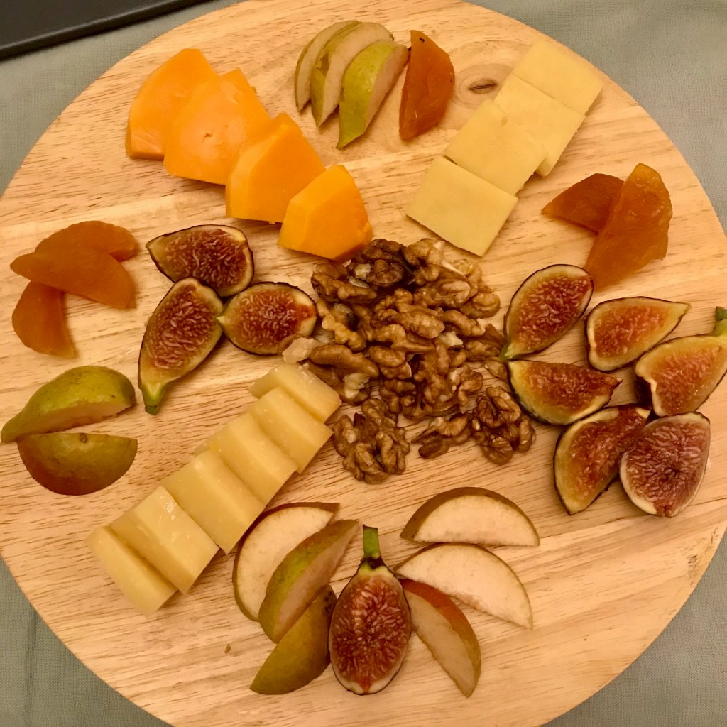 Peynir tabağı için mimolette (turuncu olan), cheddar (sarı, yumuşak olan -her cheddar çok sarı veya turuncu olmuyor aslında) ve parmigiano (sarı, sert, tuz kristalli olan) seçtim. Tabii gönül isterdi ki mimolette’in de cheddar’ın da yaşlanmışını bulabileyim, ancak ne yazık ki Türkiye’de -fahiş fiyatlara satılanlar dahil- Fransa’da ortalama bir pazarda alabileceğiniz kalitede ithal peynir bulmak mümkün değil. Ömrünü peynirle geçirebilecek, buzdolabında her an en az 10 çeşit peynir bulunmazsa üzülen biri olarak peynir kanayan yaram, ama bu konuya burada girersem çıkamam! Yaşasın güzel eski kaşarlar, divle obruklar deyip susuyorum.) Peynirin yanına şimdi tam zamanı olan incirlerden, minik bahçe armutlarımızdan kondurup kuru kayısı ve cevizle tabağı tamamladım.