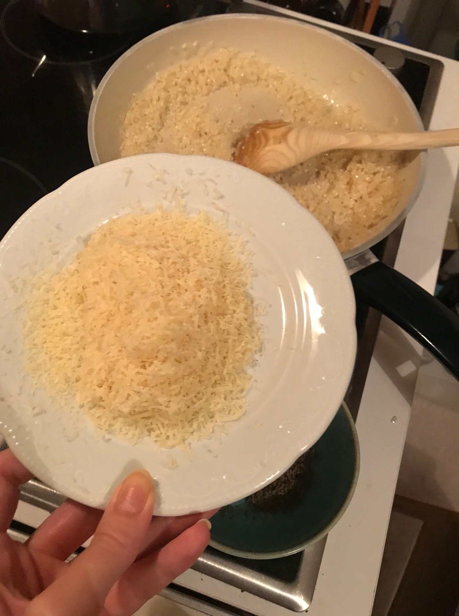Püf noktalar: Neden karıştıra karıştıra pişiriyoruz? Pirinç özlensin, nişastasını salsın diye. Tıpkı keşkeği de karıştıra karıştıra pişirmek gibi düşünün. Eh bir de pirincin dişe gelir hale gelmesi, lapa olmaması lazım. O lapa oluncaya dek pişmeden nişastasını salması için de karıştırmak önemli. İkinci olarak, bu risottoyu kremalı yaptığım için tereyağını az tuttum, çünkü krema zaten çok yağlı. Ama kremalı olmayan risottolarda yağ miktarı iki katına bile çıkarılabilir. Üçüncü olarak, trüf tadını öne çıkarmak istediğim için çok az soğan, karabiber ve kremayla yetindim, ama trüfsüz risottolar için soğanı daha bol tutabilir, seçtiğiniz eşlikçilere göre sarımsak da ekleyebilirsiniz. Keza bu versiyon için sadece krema ve su kullandım, ama başka versiyonlar için et suyu, tavuk suyu veya sebze suyu stokları kullanılabilir. Kısaca bu temel tekniği istediğiniz malzemeye göre uyarlayabilirsiniz. En son parmesan ekleyeceğimiz için tuzu ağza olması gerekenden biraz daha az gelmeli, peyniri koyduktan sonra tadar, gerekirse biraz daha eklersiniz. Haa, bir de muhakkak yayvan bir tencere veya tava kullanmak gerek, derin tencereden kaçının.