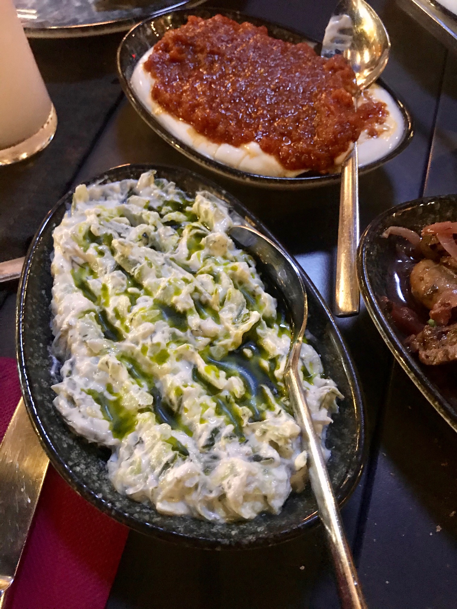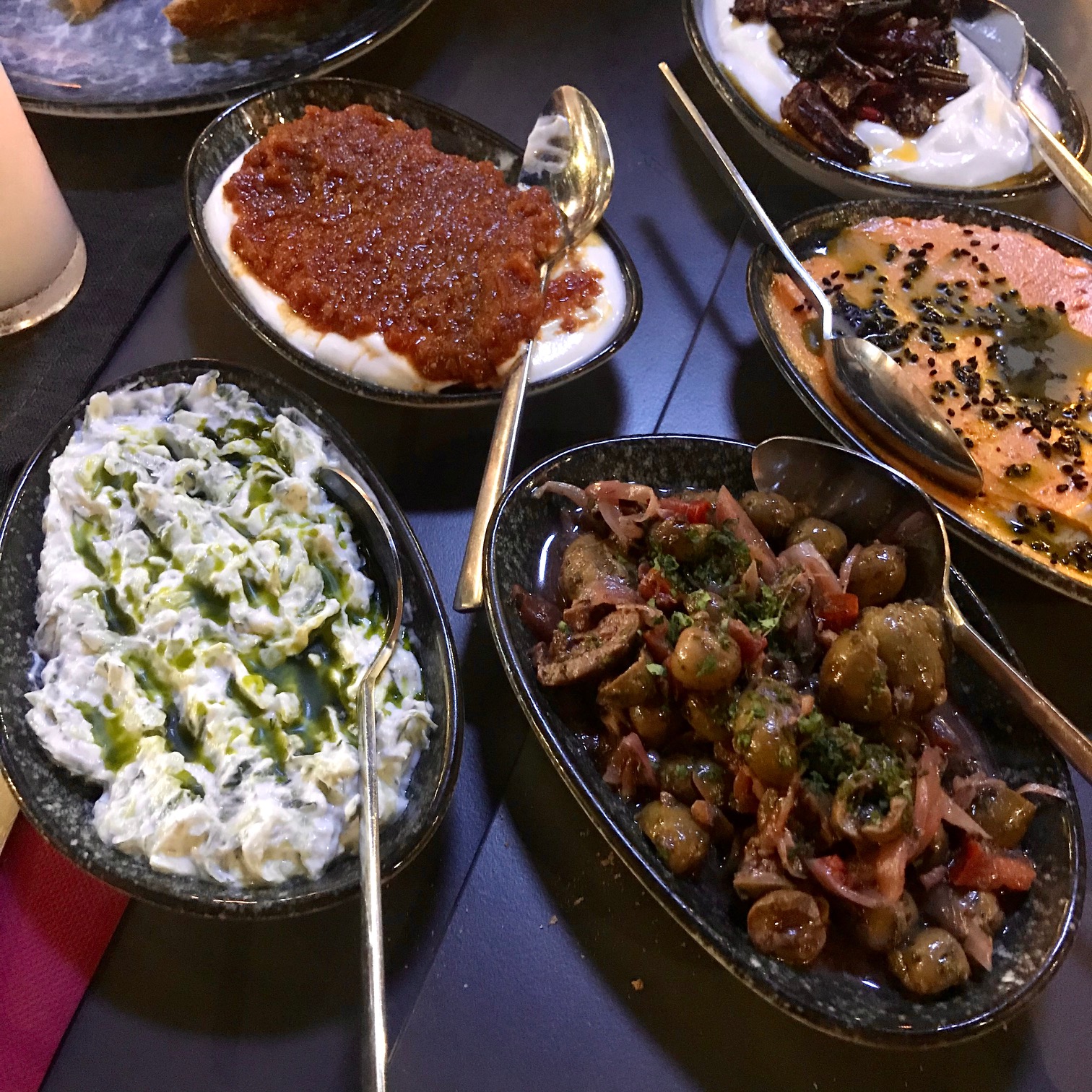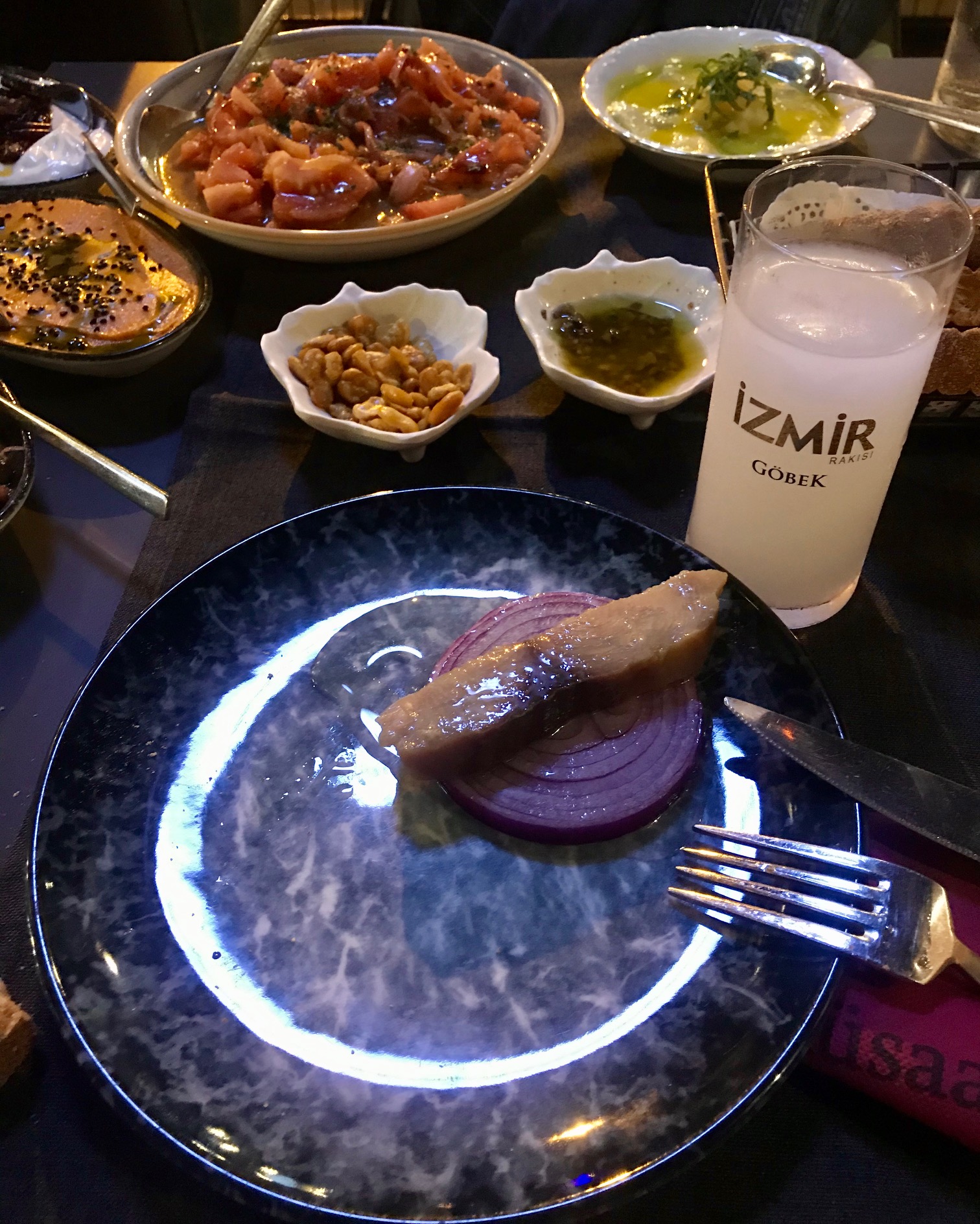 Burayı giden arkadaşlarımdan da duymuş, beğendiklerini bilerek gitmiştim, yemeğe başlarken hem bunun verdiği olumlu bir önizlenim, hem de bir beklenti vardı doğrusu; malum, bu işler tek yönlü işlemez. Özenle seçildiği belli olan ve klasik meyhane takımlarından ayrılan tabaklar, kullanılan canlı renkler insanın dikkatini çekiyor ve detaylara özen gösterilen bir yerde olduğunu hissettiriyor. Bir manada “ilk tanışma”yı restoranların görüntüsüyle yapmıyor muyuz zaten?
