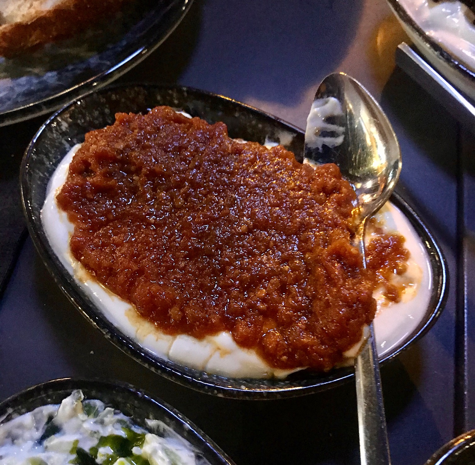 Biz bunları yerken, masamıza uğrayarak her şeyi nasıl bulduğumuzu sorma inceliğini gösteren mekanın işletmecisi Mert ve Ece ile de fikirlerimizi paylaştık ve biraz sohbet ettik. Mert, tabir-i caizse Kadıköy çarşısının içinde büyümüş, “muhitin çocuğu”, zira babası yılların İnegöl Express’inin sahibiymiş. Yeni adıyla işletmeci, ama özünde bildiğimiz adıyla “iyi esnaf” bulmanın oldukça zorlaştığı bu zamanlarda, böyle aileden öğrenilen esnaflığın hem ne kadar gerekli hem de ne kadar değerli olduğunu daha iyi anladık zannediyorum. Ece’ye gelince, o da yemeklerle ilgili en az Mert, hatta muhtemelen ondan fazla çaba harcıyor belli ki. Konuştukları zaman yaptıkları işe gösterdikleri saygı ve özen kendini kesinlikle belli ediyor; köpoğlunun muhteşem olduğunu söyleyince gözleri parlıyor, başka mezelerle ilgili fikirlerimizi ve eleştirilerimizi iletince de büyük bir dikkatle dinliyor ve cevap veriyorlar. Hem genç ve yenilikçi hem de ne yapmak istediğini çok iyi bilen kişiler; nasıl da güzel bir birleşim değil mi?