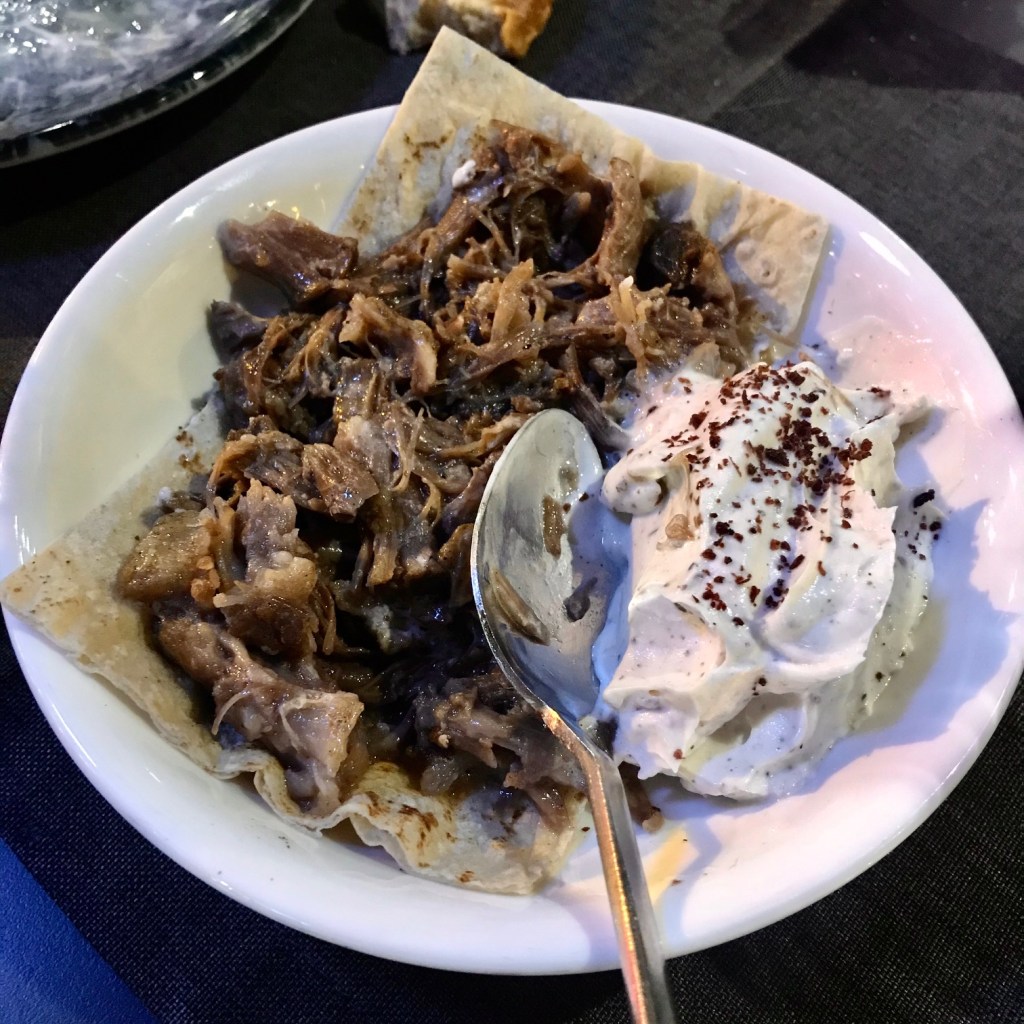 Pöçe gelince, oldukça enteresan bir pöçleri var. Pöç, dananın kuyruk sokumundaki oldukça yağlı bir ete verilen ad. Seveni çok sevse de, oldukça ağır olduğu için yiyemeyen de çoktur. Ben de pöçe biraz mesafeliyim, örneğin tandırı bana göre değil doğrusu. Ancak burada pöçü lavaş üstünde, lif lif edilmiş bir halde ve en önemlisi yanında ekşi kremayla servis ediyorlar. Bir eşleşme bu kadar mı lezzetli, bu kadar mı akıllıca olur? Ekşi krema, pöçün yağından kaynaklanan ağırlığı alırken, etin tadına da lezzet katıyor. Taze soğanın baharlı tadı da bunu bütünlüyor. Doğrusu ben böyle akıllıca tasarlanmış tabaklara hep özel bir hayranlık beslerim, zira bence iyi bir aşçının farkı böyle tabaklarda belli olur. Müsaade, bu anlamda hem kokoreç hem de pöç gibi, özel bir düşkünlüğümün olmadığı iki tabağı da yaptığı dokunuşlarla öylesine beğenmeme sebep oldu ki, olumlu manada şaşırdım ve bu mantıklı dokunuşlara şapka çıkardım. Bravo!