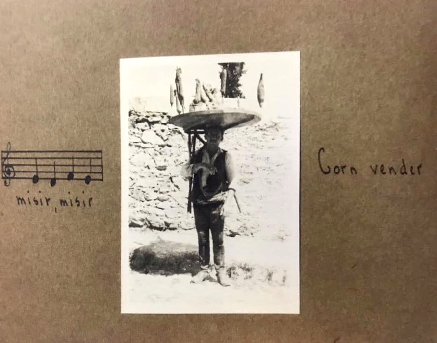 * Fotoğraflara dair bir not: Vaktiyle Türkiye’de hocalık yapan Edward Sheiry, bir Avrupa geleneğini buralara uygulamış. Çizim yapmak/fotoğraf çekmekle kalmamış, satıcıların kendilerini duyurmak için kullandıkları bağırışları da yazıya ve notaya dökmüş. Avrupa’da Cries of London ve Cris de Paris gibi örnekleri bulunan bu tarz sokak satıcılarından bahseden kitapların tarihi 1500’lere kadar gidiyormuş. Sokak satıcılarının bağırışlarından ilhamla eserler besteleyenler de varmış. Bu mini “İstanbul’un sokak satıcıları” albümünü Tarih Vakfı’nın yayını olan Toplumsal Tarih dergisi hazırlamıştı, hocanın terekesinde yer alan bu fotoğraflar ticari amaçla çekilmediği için tek nüshaymış ve bunu çoğaltarak bizim gibi meraklı insanlara da ulaşsın istemişler; sağolsunlar ne de iyi etmişler… Ben de albümden konuya uygun olan zerzevatçı ve mısır satıcısını seçtim.