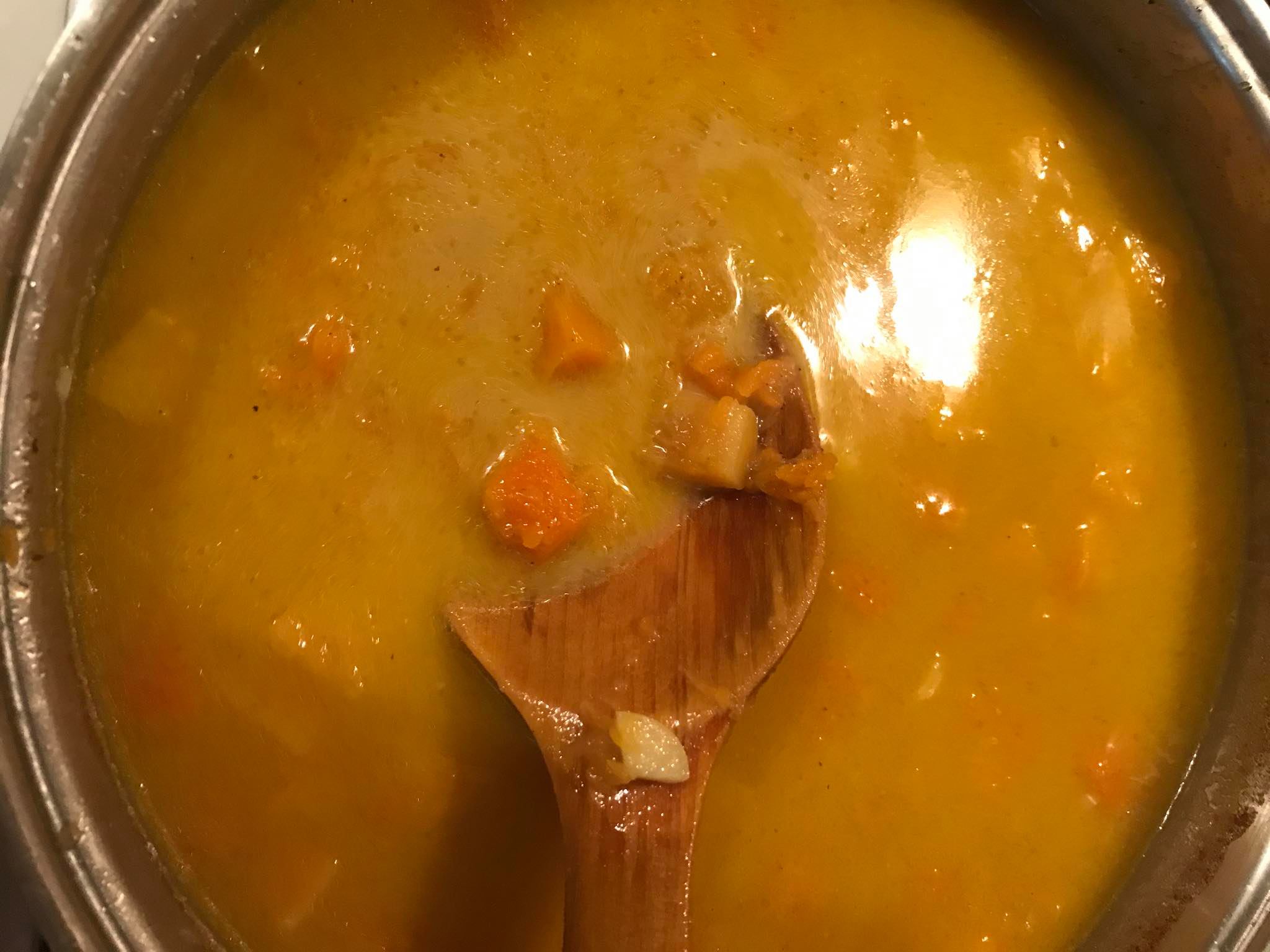 Sebzeler, baharatları da ekledikten sonra kısık ateşte hafifçe fıkırdayarak bir 20-30 dakika daha pişti mi çorba hazır demektir. Sonrasında blendırla güzelce çekip pürüzsüz bir hale getirdim. Tüm sebze çorbalarında olduğu gibi, bir gece bekletince çorba “oturuyor” ve tadı tam dengeye geliyor, baharatlarla sebzeler bütünleşiyor. O yüzden bir gece önceden yapmanızı tavsiye ederim.