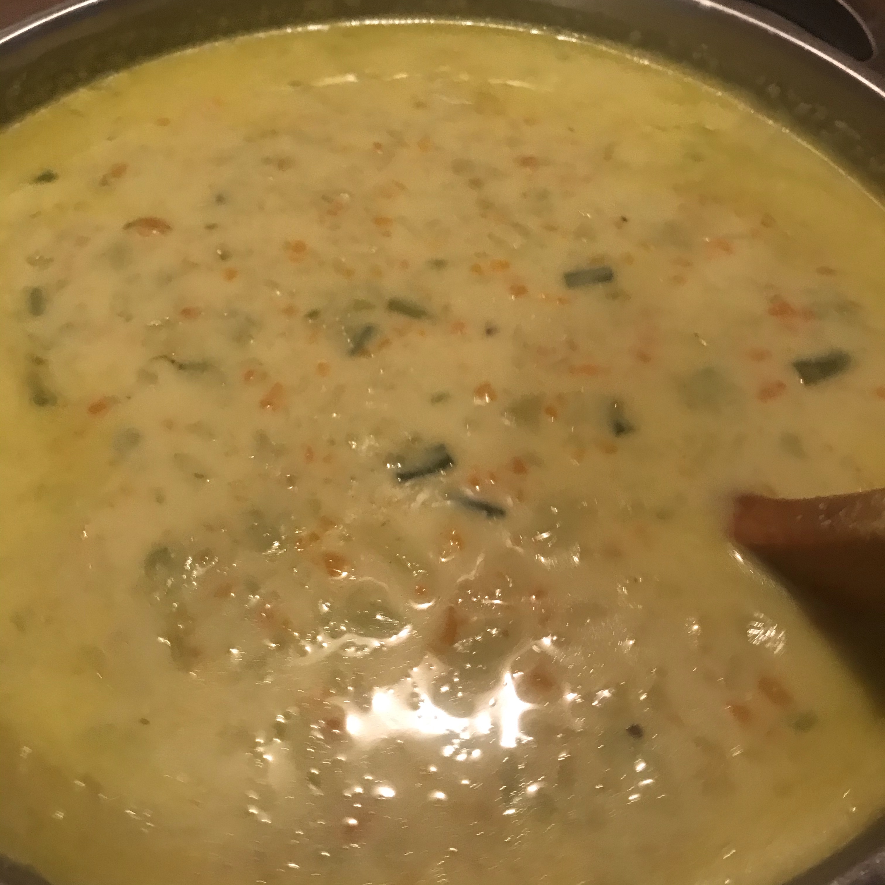 O zamandan beri ben de severek her kış yapıyorum. Deneme yanılma usulü ben de arkadaşımın tarifini kendi damak zevkine göre sizin gibi değiştirdim, ancak farklı noktalara evrilmişiz. Bazen içinde krema olmasına rağmen, konuyu daha da ağırlaştırıp et suyu + didilmiş et veya kıymalı yapıyorum. Fondü benzeri koyu kıvamlı ancak oldukça lezzetli bir çorba çıkıyor. Bir ara denemenizi tavsiye ederim.