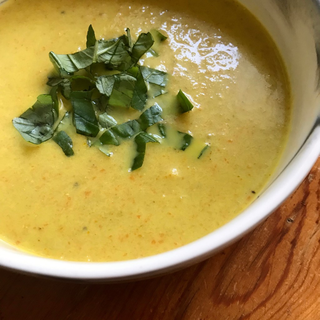 Bu parantezden sonra çorbaya geri dönersek, yaptığım şey oldukça basit, ama lezzet püf noktalarda açığa çıkıyor: sebzeleri çok çok iyi kavur ki lezzetlensinler; baharatlarla destekle ki tadının derinliği artsın; krema ekle ki tadı dengelensin, kolay içimli olsun; pişirirken yağını az tut ki kremanın yağı devreye girince fazla gelmesin ve en son, her şey birbirine karışınca en kısık ateşte beş dakika fıkırdat (fokurdatma, fıkırdat!) ve bitti! Ben ardından blenderla pürüzsüz bir kıvama gelinceye dek bızzztlıyorum, ama dileyen taneli de bırakabilir. Normalde taneli çorba severim, ama kremalı çorbalarda blender devreye girince oluşan kadifemsi dokudan çok hoşlanıyorum, lezzetlerin de tamamen birbirine entegre olmasını sağlıyor, o yüzden pürüzsüz hale getirmeyi tercih ediyorum.