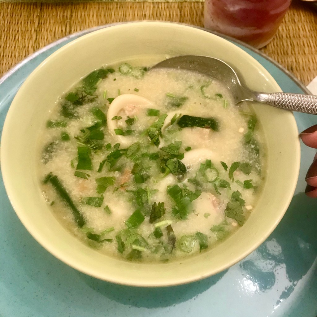 Gelelim masanın esas karakterine, tom kha gai’ye. Biz buna o kadar çok deniz mahsulü ekledik ki çorba gibi değil gayet doyurucu bir ana yemek olarak düşünmelisiniz, baştan belirteyim. Eğer daha çorba gibi olsun, çok doyurmasın derseniz deniz mahsulü miktarını azaltabilirsiniz. Thai mutfağının yemeklerinde temel mantık acı, ekşi, tuzlu, tatlı gibi tatları birlikte ama dengeli kullanmak. İlk başta tuzluyu sadece tuzluyla, tatlıyı sadece tatlıyla yemek gerek gibi düşünsek de aslında bu çok modern bir fikir; geleneksel mutfaklarda bunun hiç de böyle algılanmadığını, tatların birlikte kullanıldığını görüyoruz. (Öyle olmasa kereviz portakallı, dolma kuş üzümlü olur muydu!) Tayland mutfağı da yemek kültürüyle diplomasi yürütmüş, dünyaya gastrodiplomasiyi öğretmiş ülkelerden biri olarak kendi geleneksel mutfak mantığına epeyce sahip çıkıyor ve bilhassa deniz mahsulü sevenler (ama sadece onlar için değil!) içim birçok ilham alınacak yemeğe sahip doğrusu. Önemli olan o ilham… Mesela bu tarifi de eğer deniz mahsullü sevmiyorsanız tavuk göğsüyle de aynı şekilde mükemmelden yapabilirsiniz.