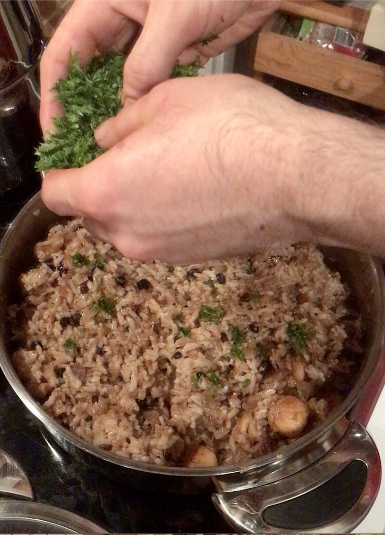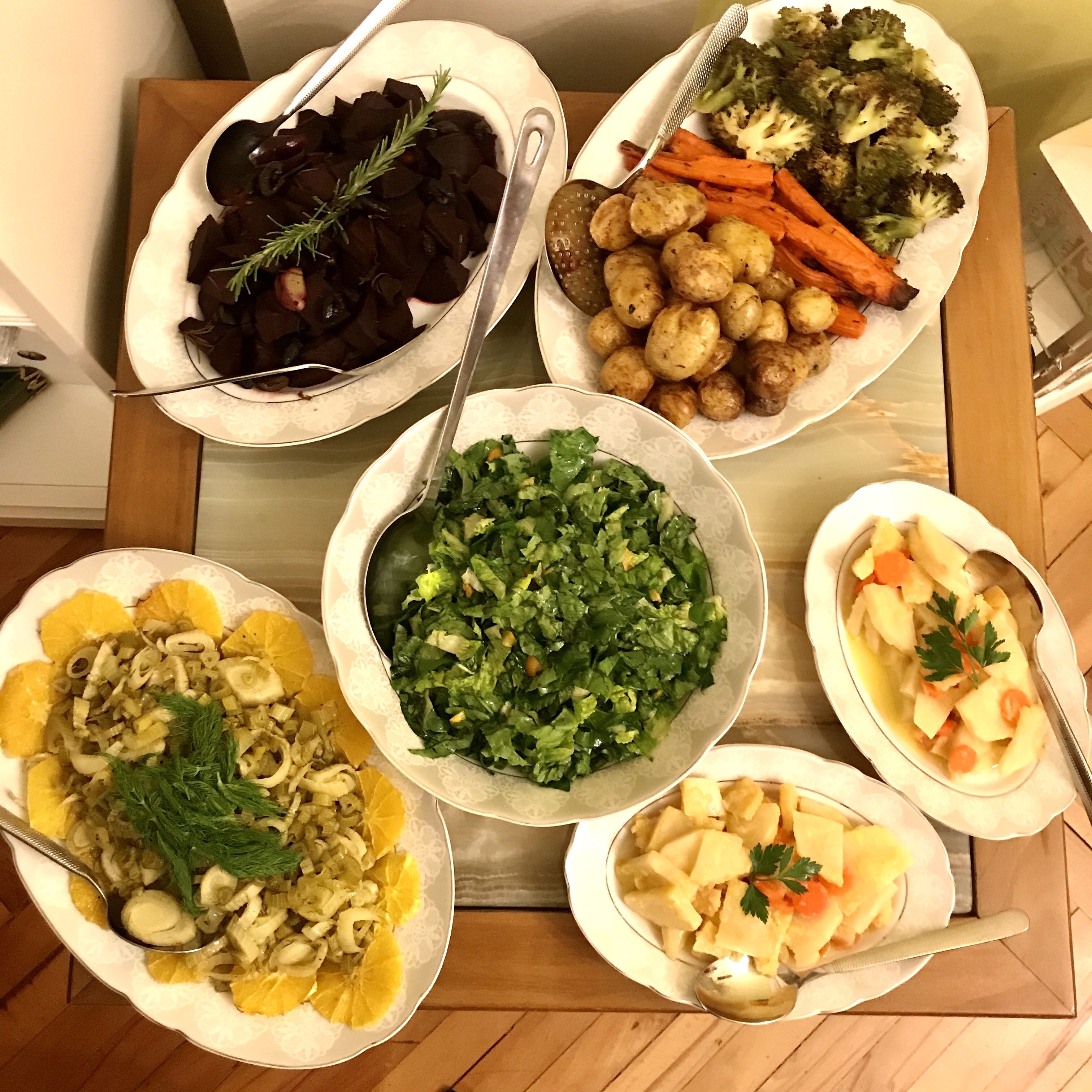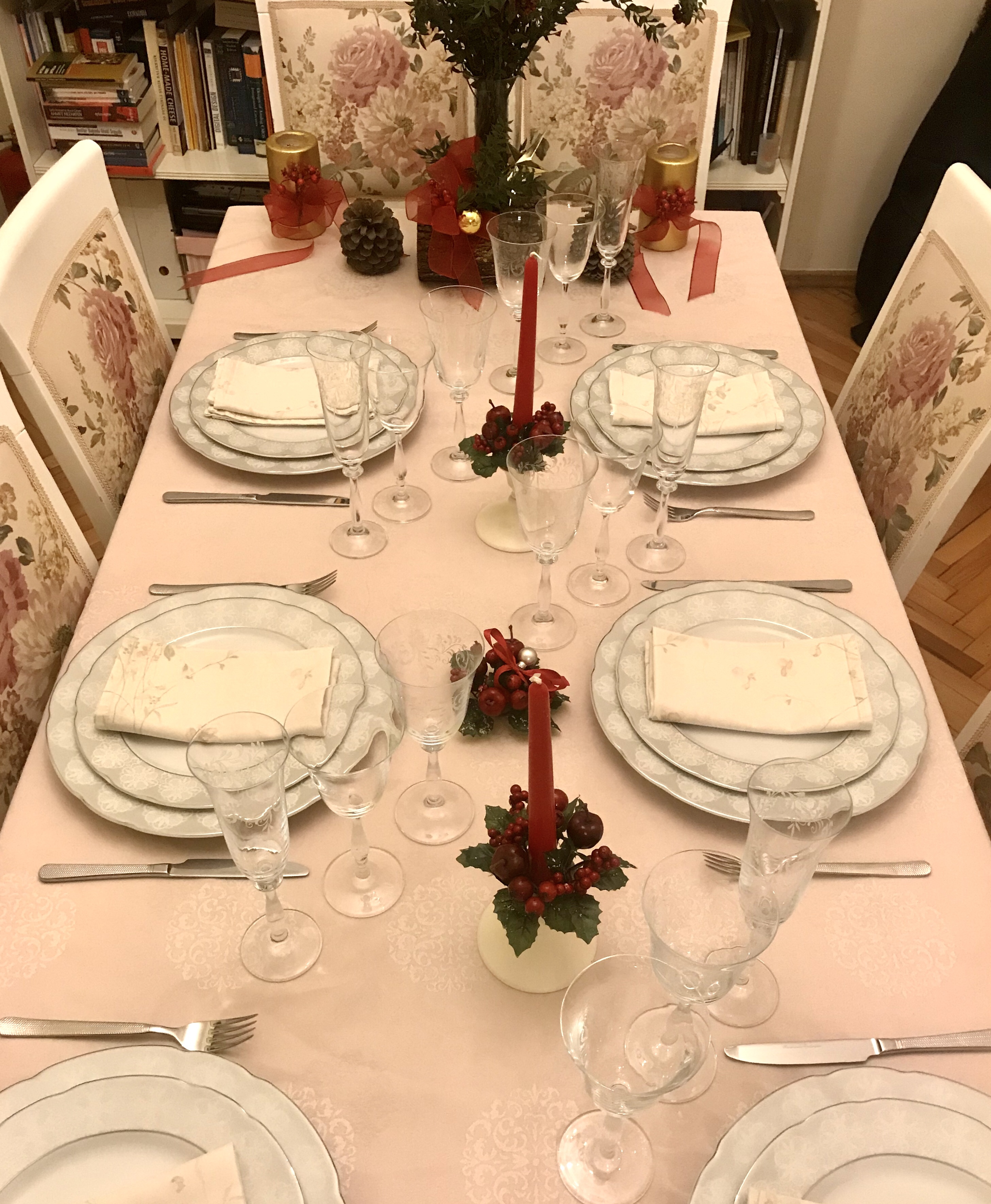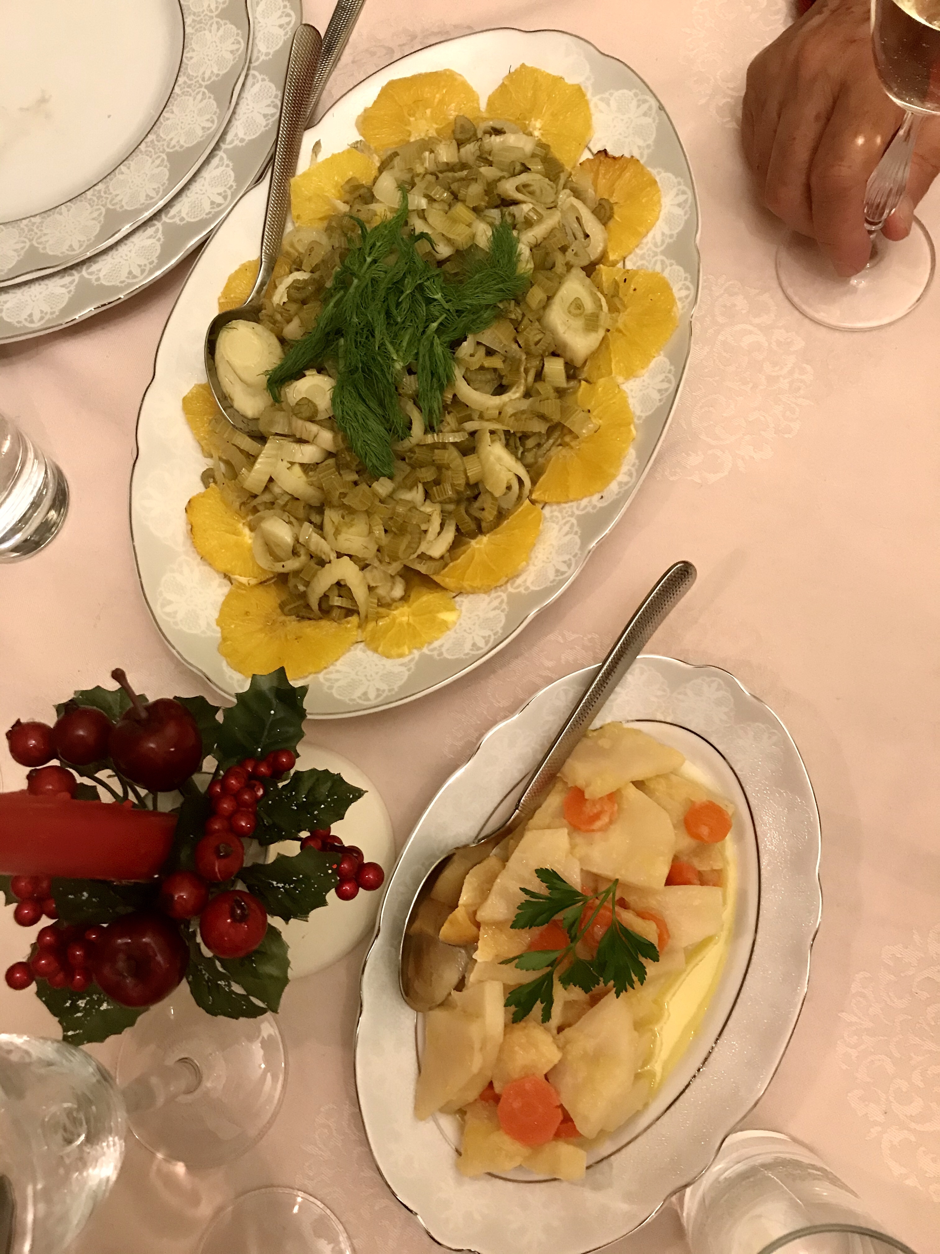 Normalde yılbaşı sofraları çok çeşitli ve mezeli olur genelde, ama birincisi bahsettiğim doğum gününü bol çeşitli rakı-meze sofrası olarak yapmıştık, o yüzden daha farklı olsun dedik bu kez; ikincisi, iç pilav ve hindi gibi çok doyurucu bir yemek merkezde olduğunda İbrahim de ben de yenmeyecek gereksiz çeşitle sofrayı doldurmaktansa ona uyacak derli toplu bir menü hazırlamayı ve daha restoran hissi verecek, şarapla gidecek çeşitler yapmayı tercih ettik. Tüm sebzeleri özellikle kış sebzelerinden seçtik ve bunlar hindinin garnitürü oldu mesela; portakallı rezene hem mideyi çok rahatlatan hem de iç pilavdaki baharatı dengeleyen, ağız tadını temizleyen bir yemek olarak eklendi menüye (ve masanın ilk biten yemeği oldu!); keza salatayı özellikle sadece yeşil tuttuk ve kumkuatları tazelik, ferahlık vermesi için ekledim gibi gibi… Böylece sofradan kalktığımızda hem çok güzel doymuş, hem yerimiz kalmadığından yiyemediğimiz bir şey olmamış, hem de her şeyden bolca yemiş olmamıza rağmen ağırlık hissetmez haldeydik.