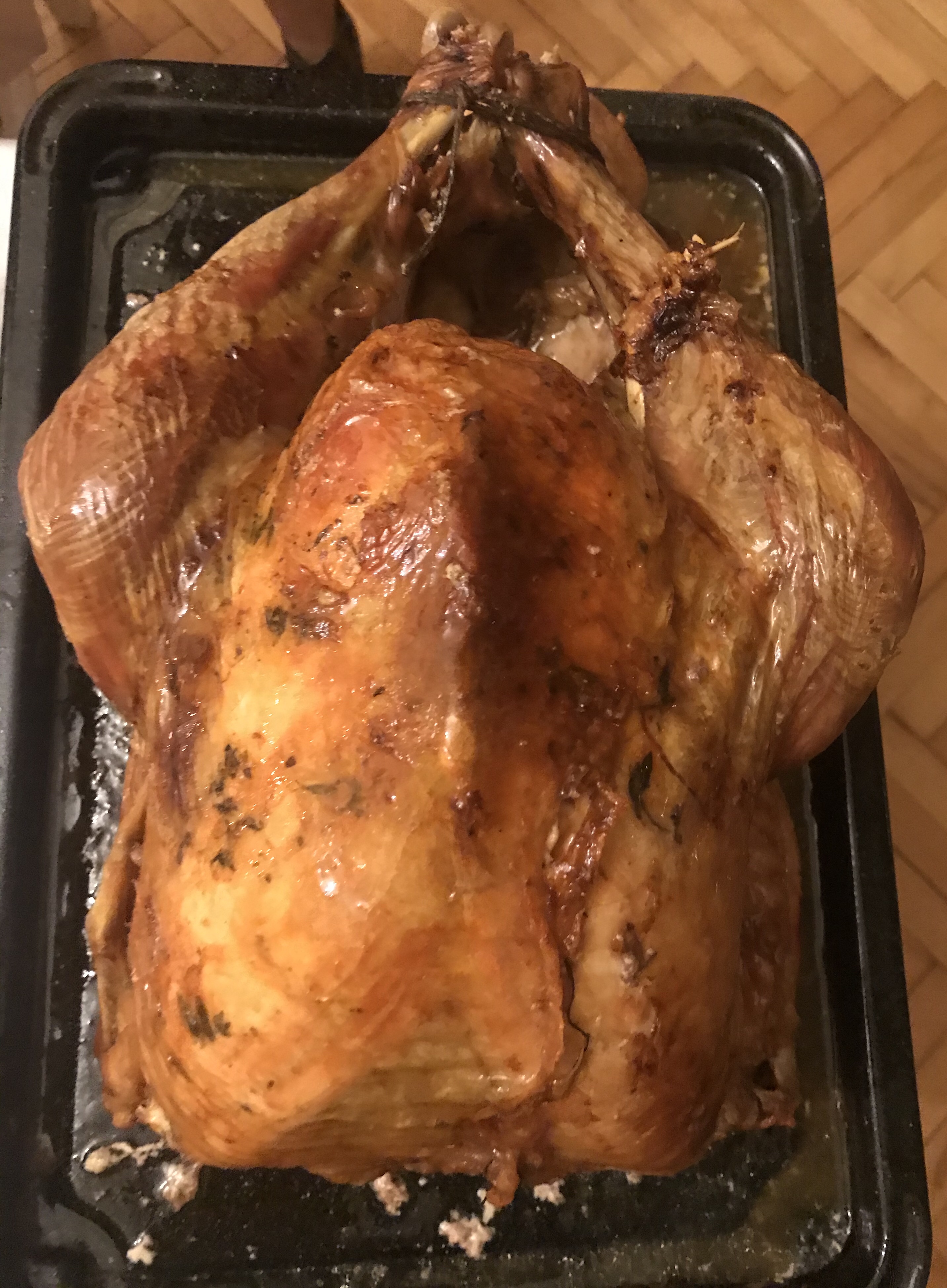 Şimdi geldik sofranın yıldızına… Doğrusu hindi yapmak cidden büyük bir işmiş, 3 gün kendisiyle hususi ilgilendik! Ama değdi mi derseniz, hem de nasıl! İbrahim’in yöntemiyle o kadar güzel, o kadar pamuk gibi bir hindi yedik ki, doğrusu artık ne dışarıda hindi yerim ne de dışarıdan kolay kolay pişmiş hindi sipariş ederim bundan sonra… Önceki yediğim hindilerle alakası bile yoktu bunun, diğerleri bunun yanında ne kadar kuru, ne kadar lezzetsizmiş! Bu tarifi adım adım uyguladığınızda hiç yemediğiniz kadar lezzetli bir hindi (veya kanatlı) yiyeceğinizi garanti edebilirim.