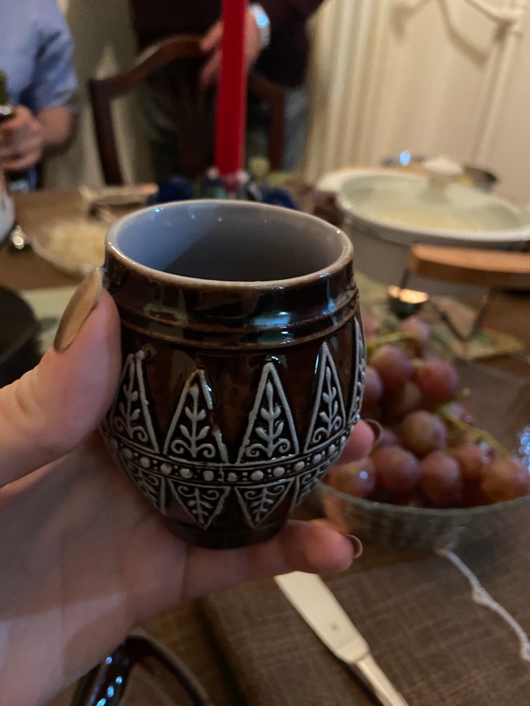 Bu arada şu tarz şarap bardaklarına özellikle bayılıyorum. Çok güzel, değil mi? Şarap sanki yalnızca kadehte içilmeli gibi düşünüyoruz bazen, ama ben kimi sofralarda kadeh yerine seramik/porselen bardaklar kullanmayı daha çok seviyorum, daha uyumlu geliyor. Mesela bazı sofralarda şarap için şu porselen bardakları kullanıyorum. Kuzeye gidildikçe bu tarz şarap bardaklarına daha çok rastlıyoruz ve bir “dağ yemeği” olan fondü sofrasına da böylesi daha uyumlu…