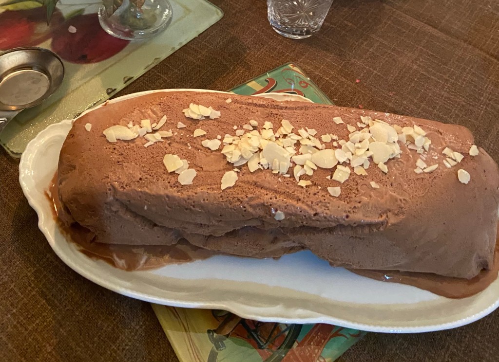 Toplamda 1.2 kilo peynirden yapılmış dev bir fondüyü silip süpürdükten sonra, gecenin finalini Bilge Hanım’ın mükemmel çikolatalı parfesiyle yaptık. O kadar lezzetliydi ki, ikinci dilimleri de yediğimizi bilmem söylemeye gerek var mı? Bu tarifi de bir Alman dostundan öğrenmiş, kendisini de hayırla yadettik.