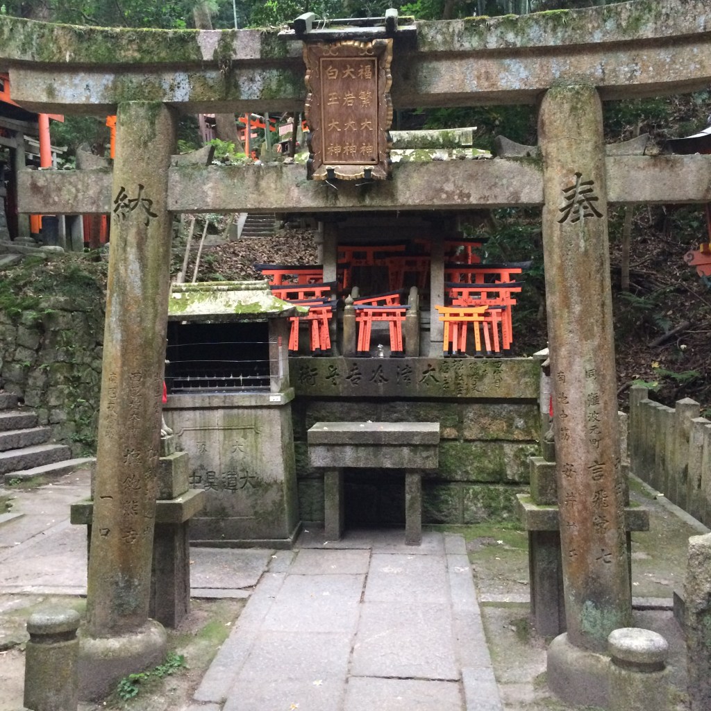 Bu binlerce kapının varlık sebebi de, aslında Inari’nin bu bolluk bereket tanrısı olması meselesinde saklı. Eskiden beri tüccarlar Inari’den işlerinde başarı dilemişler ve onu yüceltmek adına tapınağına bu taklardan bağışlamışlar. Zamanla bu bir gelenek halini almış ve tüccarlar, kendi ekonomik imkanları ölçüsünde tapınağa taklar bağışlamayı adet edinmişler. Bugün tapınakta boyu 10 santim olan sembolik torii’ler de var, altından geçtiğiniz birbiri ardına dikilmiş devasa taklar da. Çünkü buraya taklar izinle dikilebiliyor ve tahmin edebileceğiniz gibi, üstünde şirketinizin adının yazdığı devasa bir tak dikmek epey sağlam bağış gerektiriyor! (Gezerken gözünüze neredeyse bütün Japon şirketlerinin adları çarpabilir yine de, e gelenekler mühim!)