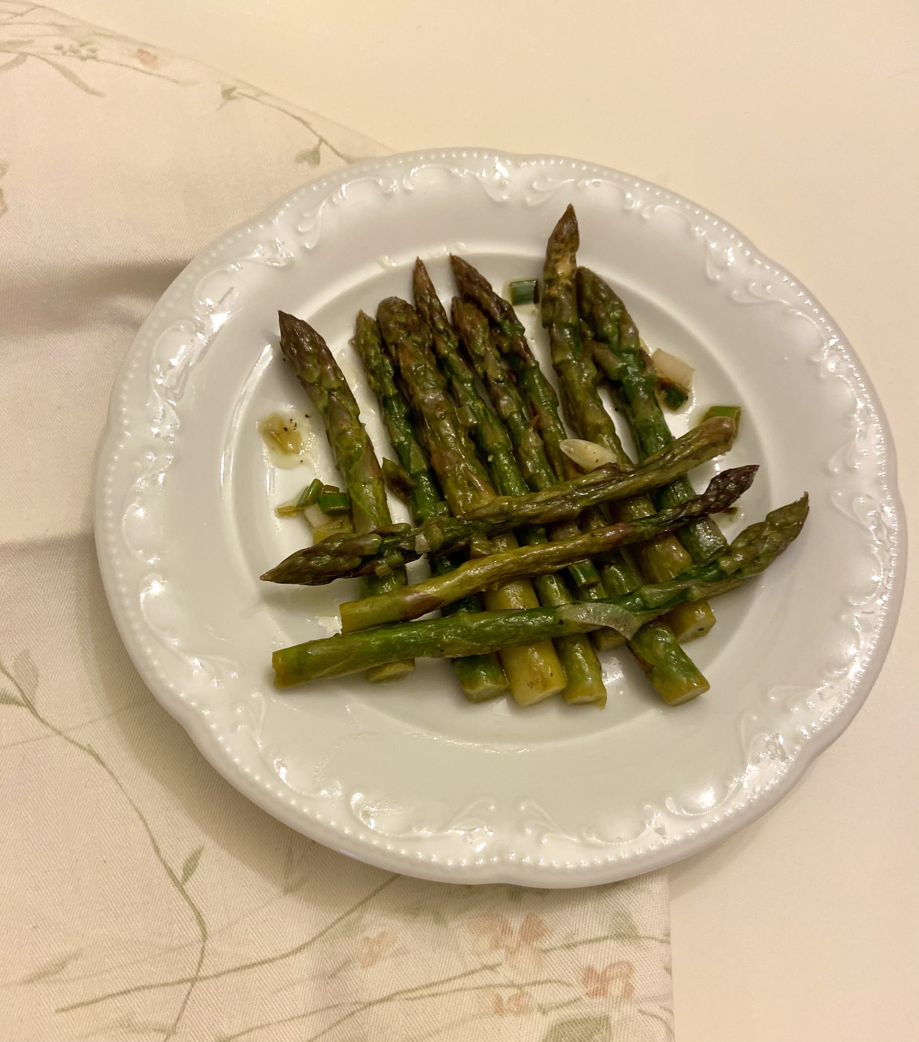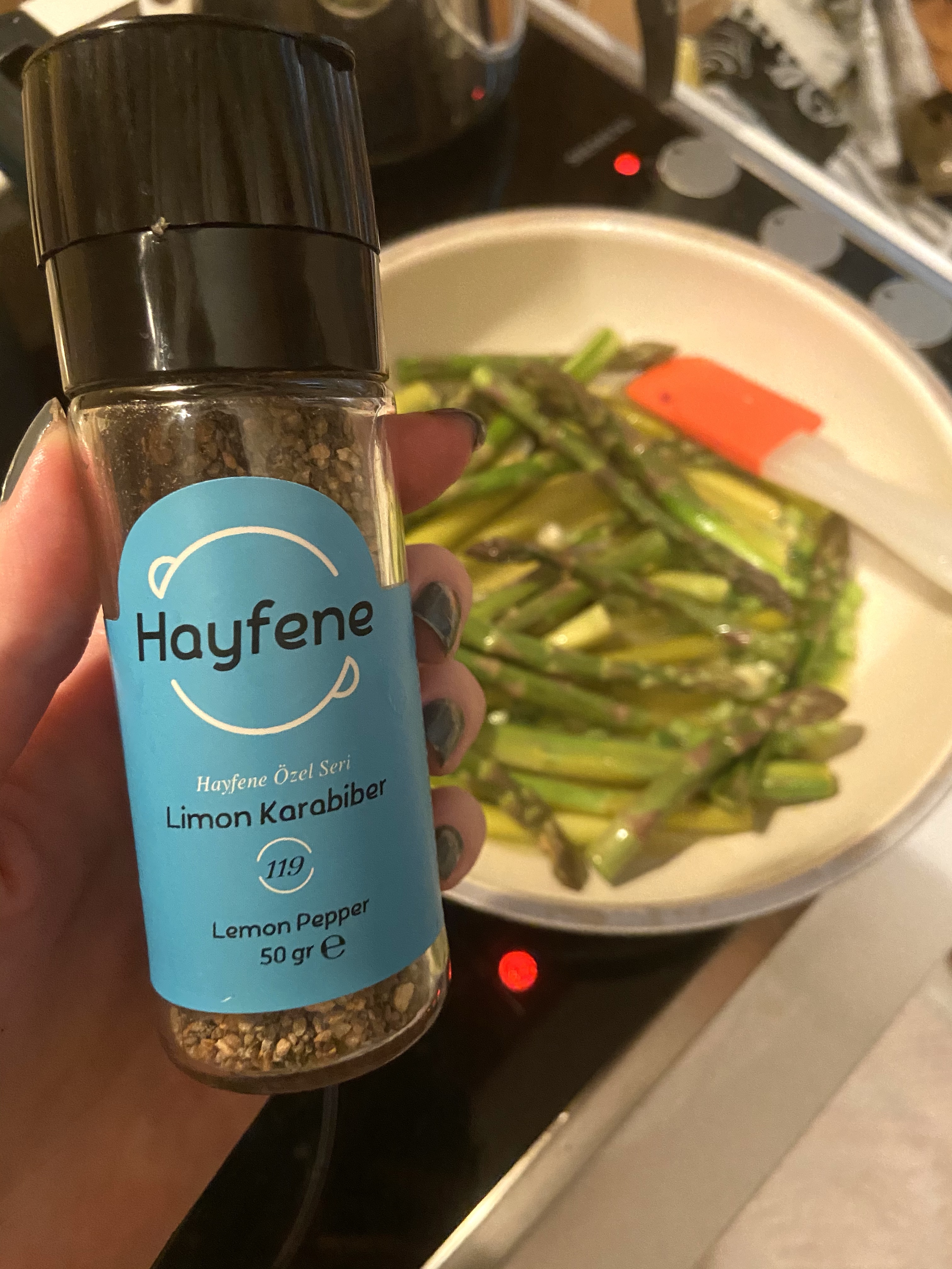 Şimdi geldik nazenin kuşkonmazlarımıza… Kuşkonmazı fırında pastırmayla veya baconla sarıp pişirebilirsiniz, kremalı çorbasını yapabilirsiniz, sadece zeytinyağı ve karabiberle fırınlayıp garnitür gibi sunabilir veya buharda pişirip sonra zeytinyağı ve limonla buluşturabilirsiniz… Hepsi mümkün, hepsi de lezzetli. Ben azıcık daha farklı yaptım ama… Taze sarımsağın hastasıyım çünkü ve bulup alabildiğim zaman bu tarz sebzeleri, otları taze sarımsakla hazırlamaya bayılıyorum! (Evet, bahar boyunca bir süre daha taze sarımsağa dadanacağım!) Önce kuşkonmazların kabuğunu soydum. Bunun için bildiğiniz soyacak kullanıyorum, dipten üçte ikilik kısmı soysam yetiyor, uçlar zaten körpe oluyor. Sonra kalın kısımları kesip ayırıyorum. Bunun sebebi kalın yerleri pişirmeye daha önce başlamam, böylece yemek bittiğinde körpe uçlar ölmemiş oluyor. Kuşkonmazlarım hazır olduktan sonra iki taze sarımsağın beyaz kısımlarını doğrayıp zeytinyağında öldürdüm. (Zeytinyağı olarak Kürşat kullanıyorum, bayağı memnunum, tavsiye ederim.) Ardından kuşkonmazların bu bahsettiğim kalın yerlerini atıp çevirmeye başladım. Renkleri dönmeye başlayınca uca daha yakın, ince kısımları da ekledim. Yarım limonun suyunu sıktım, tuz attım. Baharat olarak tadına uyum sağlasın diye düz karabiber yerine limon karabiber kullandım. (Eskiden yurtdışına gidince bunlardan alıp depoluyordum, artık Türkiye’de de var, Hayfene satıyor. Gerçekten çok iyi bir baharatçı, Türkiye’de kolay bulunmayan pek çok şey onlarda var, tavsiye ederim.) Kuşkonmazlar yumuşamaya başlayınca sarımsağın yeşil, taze kısımlarını da kıyıp ekledim ve şöyle bir çevirdikten sonra ateşten alıp soğumaya bıraktım. Toplam pişirme sürem 15 dakika civarındaydı. Kuşkonmazlarınızı çok kıtır seviyorsanız daha da az pişirebilirsiniz, tadarak kendi zevkinize göre optimum süreyi seçin. Ben yumuşamış, ama ölmemiş ayarda seviyorum örneğin. Tabağa alınca tavadaki sosundan üstüne gezdirmeyi sakın unutmayın!