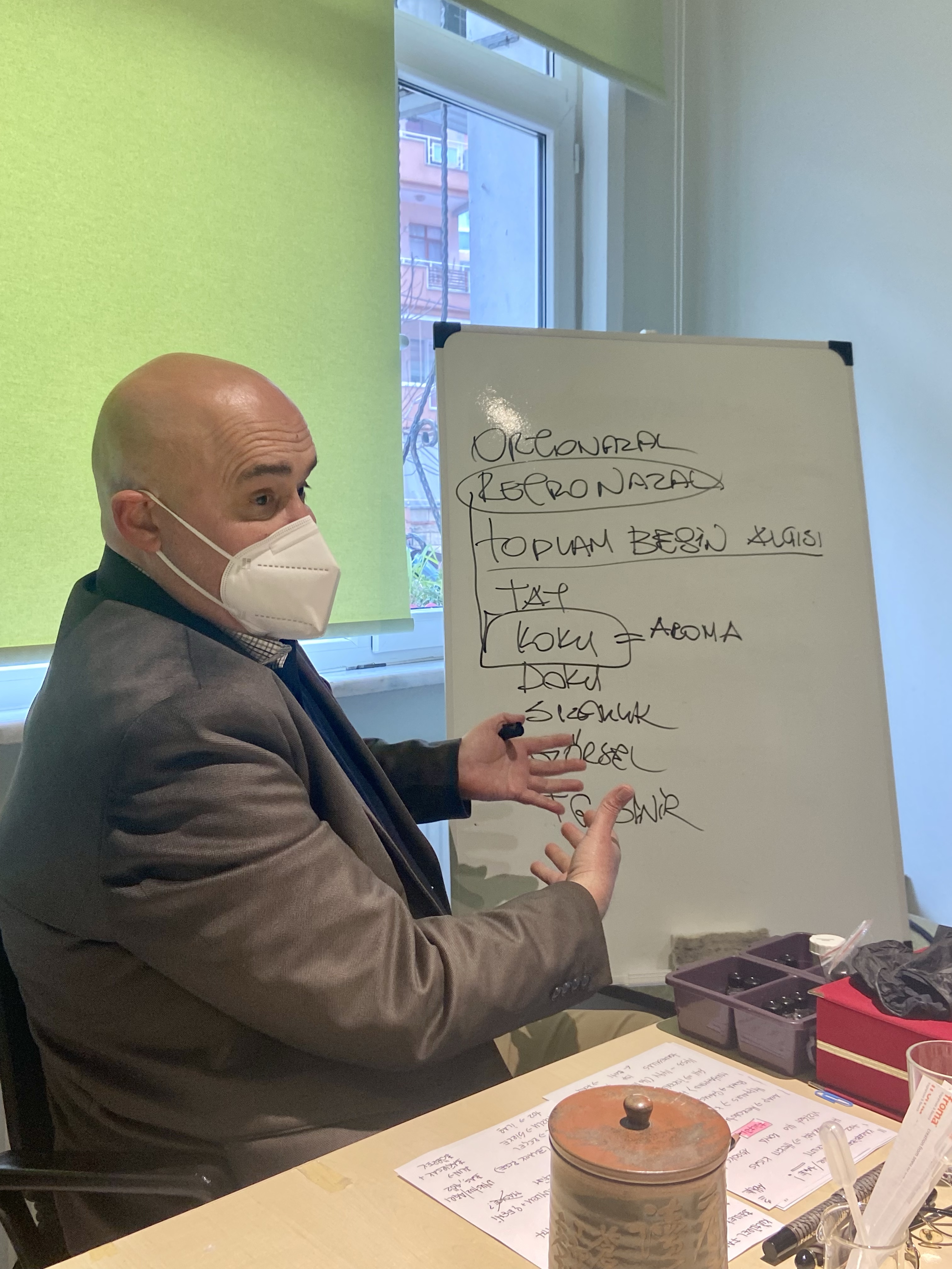 Vedat Ozan‘ı eminim ki birçoğunuz tanırsınız, zira kendisi Türkiye’nin sayılı koku eğitimcilerinden. Naçizane, koku alma sistemimizin gastronomiyle, parfümlerle, kültür tarihiyle ve lezzetlerle olan ilişkisini Türkçede en iyi anlatan kişi olduğunu düşünürüm. Onu dinlemek yahut yazdıklarını okumak benim için yıllardır büyük bir keyif, ilk kitabını yazdığından beri kendisini hayranlıkla takip ediyorum -ki yazının sonunda kitaplarından ve videolarından bahsedeceğim. Ama bugünkü bahsim daha da atraksiyonlu ve ister gastronomiyle isterse kokularla, aromalarla ilgilensin, ucundan konuyla alakalı olan herkesin aklını alacak bir husus hakkında: koku atölyesi!