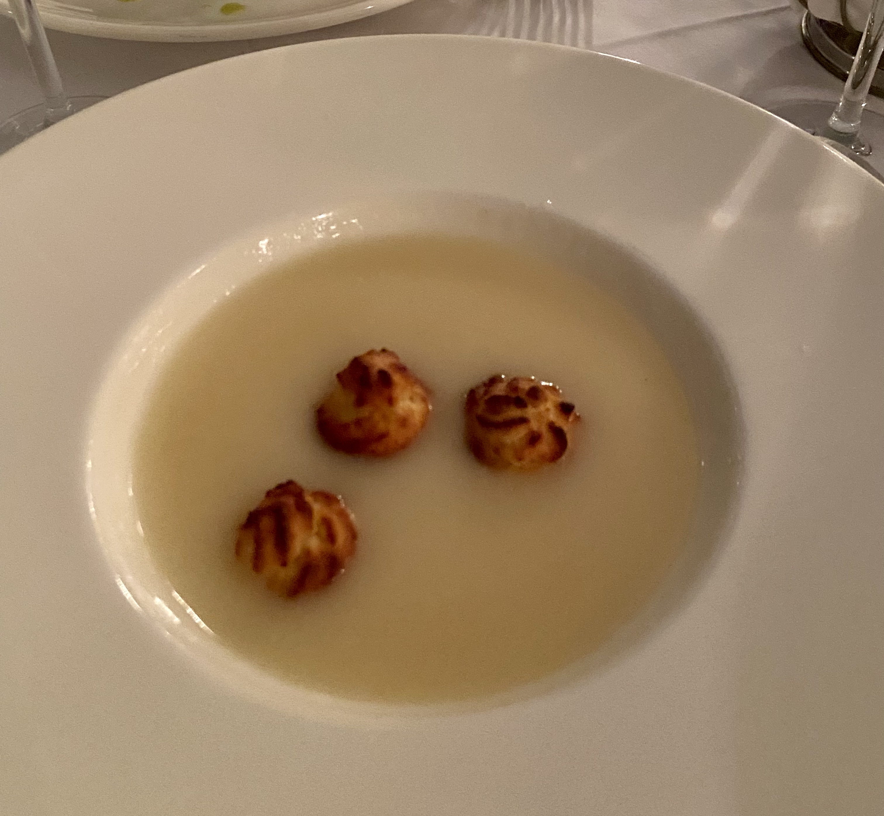 Menü biraz “kafası karışık”. Şimdi burası haliyle daha ziyade Alman ve Avusturya yemekleri sunması beklenen bir yer. Ama sanırım güzel ve geniş bir bar da kurdukları için ayrıyeten barda atıştırmaya uygun “tapas” kısmı da eklemişler menüye. Kafası karışık menü her zaman için iyi bir sinyaldir, yine şaşmadı, ama elbet denemeden kalkacak değildik. Laf aramızda acayip de acıkmışız zaten, menüde “Kızarmış peynirli cidre çorbası” görür görmez söyledim. Cidre’e de bayılırım kızarmış peynire de, ikisi bir arada muhakkak güzel bir çorba olmuştur, değil mi?