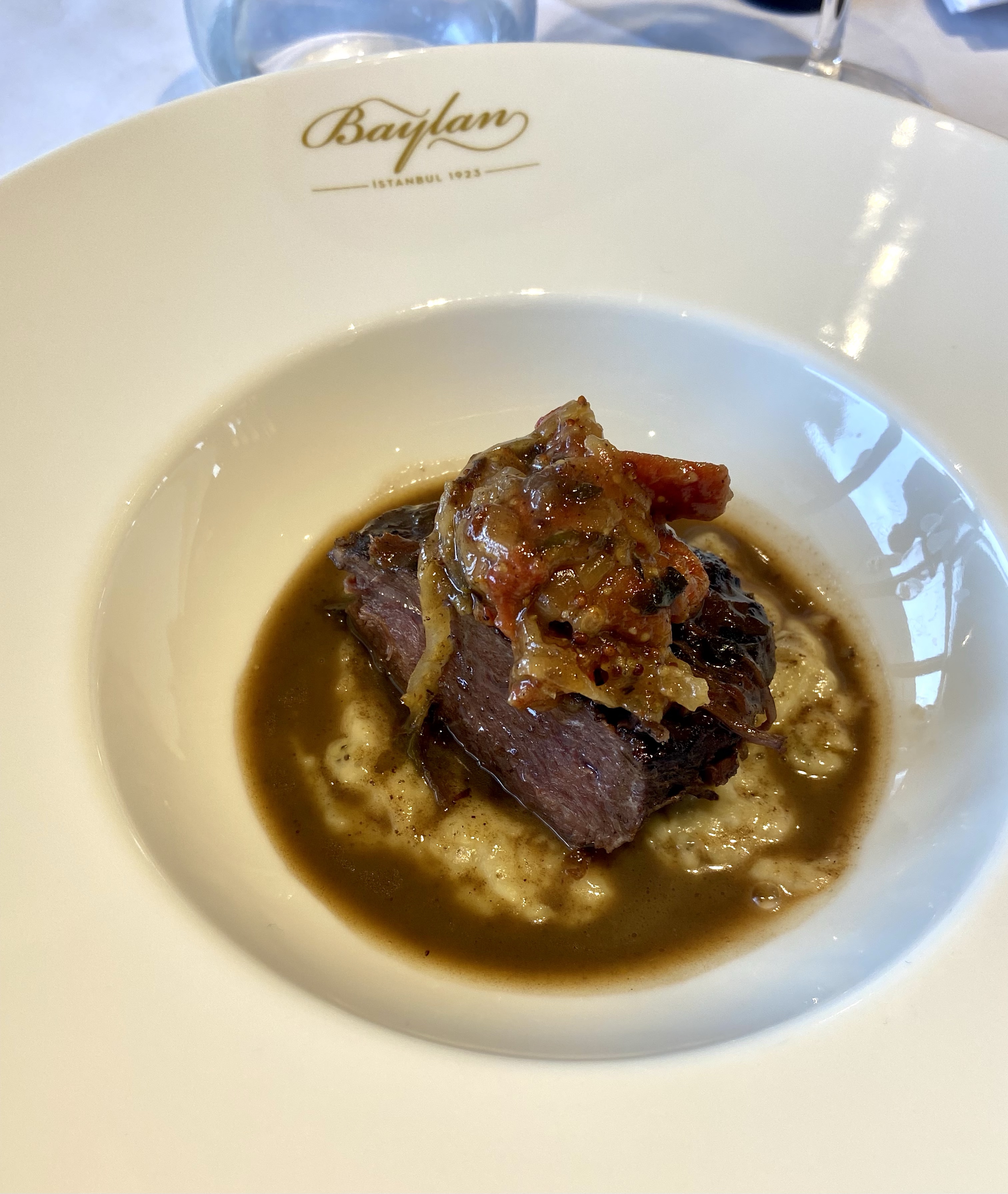 “Peki Baylan’da neler yiyebiliriz?” diyorsanız mesela yediklerimden örnekler vereyim. Öncelikle yumuşacık pişirilmiş, tadı tuzu çok yerinde bir ahtapot salatası… Porsiyonu da görüp görebileceğiniz en büyük ahtapot salatası olabilir! Cannelloni’ye sarılmış kuzu incik tel tel ayrılıyor, sosuyla müthiş bütünleşmiş ve o da neredeyse bir ana yemek doyuruculuğunda! 48 saat şarapta marine edilmiş dana yanak ise inanılmaz bir yumuşaklıkta, daha çatalı attığınız anda dağılıyor. Mac & Cheese ise Amerikan tarzı yemeklerden hoşlananlar için -keza çocuklar için de- her zaman garanti bir lezzet. Anlayacağınız menüde kuzudan danaya, balıktan ahtapota, salatadan çorbaya birçok lezzetli kalem var ve bilhassa akşamüstleri gün batımında gelip keyifle yemek yemek için de Baylan harika bir tercih olur. Zarif şarap listesi de bu anlamda yemeklerle gayet iyi eşleşebilecek tercihler sunuyor, ki favori üreticilerimden olan 7 Bilgeler’in şaraplarını bulundurmaları beni hususi olarak mutlu etti, hele Türkiye’nin en iyi şarap üreticilerinden olan Chateau Kalpak’ın da yer alması tam isabet…
