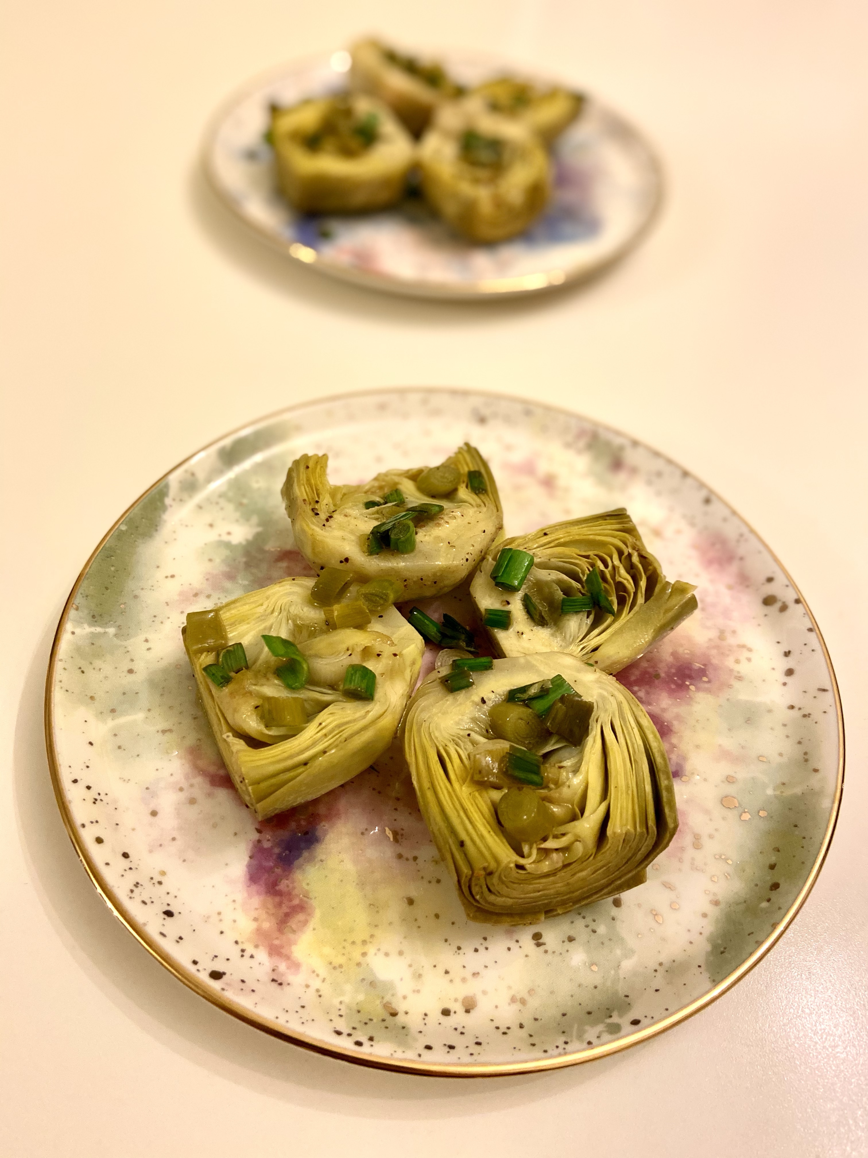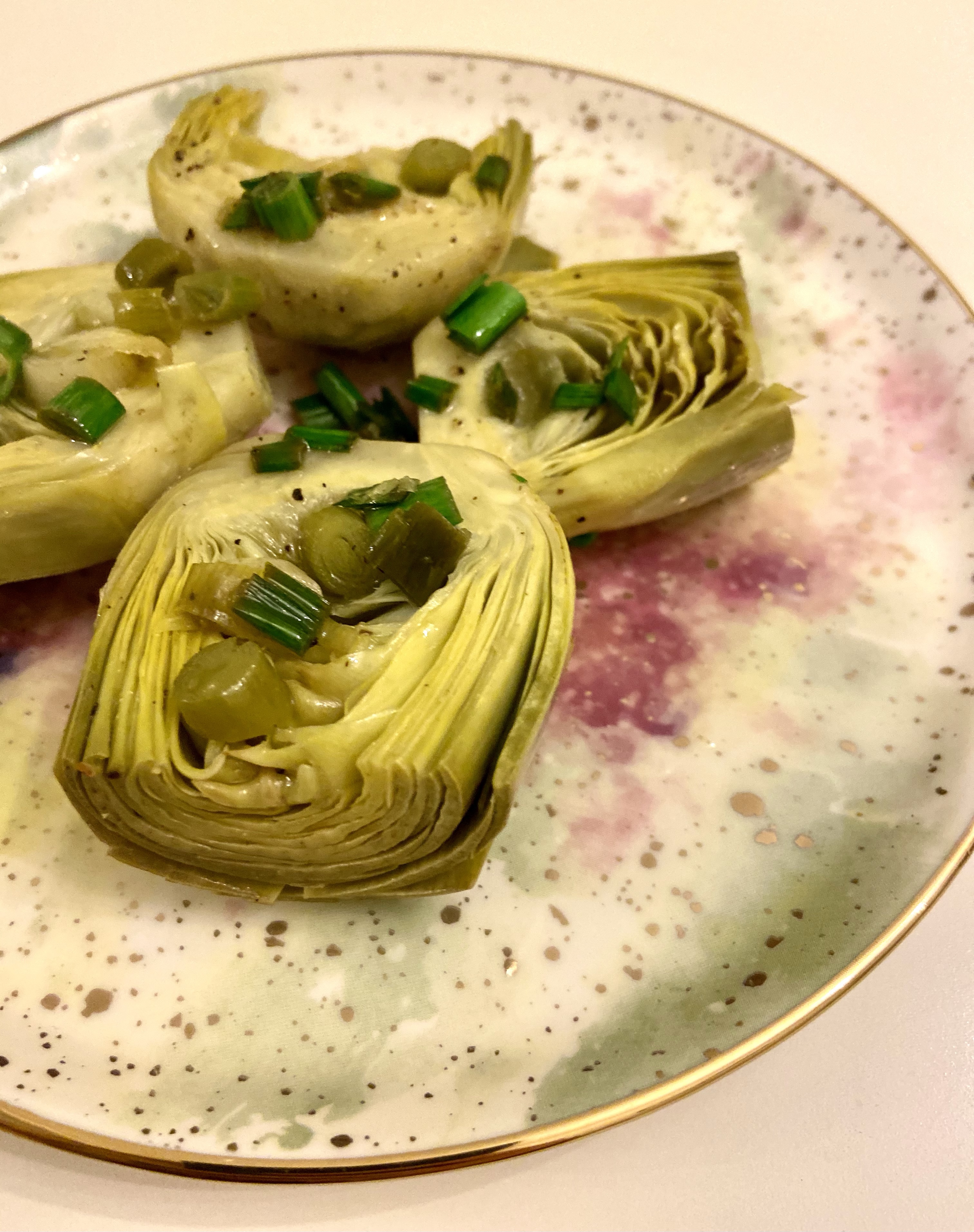 Enginarın çanak dışındaki formlarını da yemeye daha çok alıştığını görüyorum insanların ve bu beni çok mutlu ediyor, çünkü onun her halini pek severim! Bu son derece kolay tarif için tek ihtiyacımız olan dört adet en körpesinden enginar kalbi (yahut kalp enginar). Normalde kalp enginarların da -tıpkı çanat enginarlar gibi- zeytinyağlı yemeğini yapabilirsiniz, ama ben onun yerine enginar tadını sonuna kadar alacağım bir tava yemeği tercih ettim. Çanakları daha büyümeden toplanan bu çiçek enginarların en dışını alırken soydurtabilir veya evde dıştaki en kalın, sertleşmiş yapraklarını soyarak hazır edebilirsiniz. Sonrasında güzelce yıkayın, suyunu alın ve ortadan ikiye böldüğünüz kalpleri kızdırdığınız tavaya az zaytinyağı, karabiber, doğranmış taze sarımsak filizleri ve tuzla birlikte yerleştirin, damak tadınıza göre biraz da üstüne limon sıkın. Hafif rengi dönünce diğer taraflarını çevirin ve yine rengi dönene kadar pişirin. Acele etmeyin, ocağı fazla harlamayın, bırakın enginarlarımız güzelce sararsın.