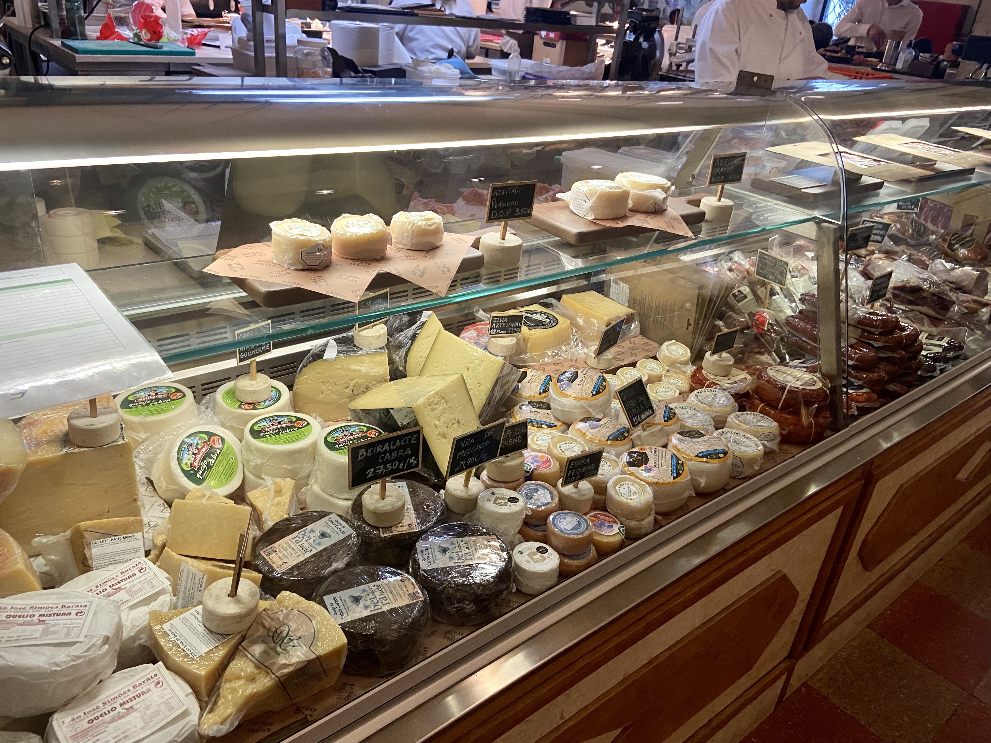 İçeri girer girmez tavandan asılı butlar dikkat çekiyor, burası hem jambon, sucuk, peynir gibi şarküteri ürünlerini tadabileceğiniz hem de tattıklarınızı beğenirseniz alabileceğiniz bir yer. Bir de tabii çeşit çeşit deniz mahsulü ve et yemekleri var. Şarap listeleri ise hayli kabarık! Biz öncelikle 24 ay dinlenmiş Sao Jorge peynirinden istiyoruz; ne de olsa yıllanmış peynire dayanamayoruz! Oldukça keskin, hatta biraz ağzı buran, güçlü mü güçlü bir peynir bu, şahane… Zeytin ve tereyağla gelen ekmekler de nefis, bir buğday biri mısır ekmeği. Portekiz’de Yeni Dünya etkisini görmek çok mümkün elbette, bu mısır ekmeği geleneği de Yeni Dünya’nın keşfiyle yerleşmiş olsa gerek…