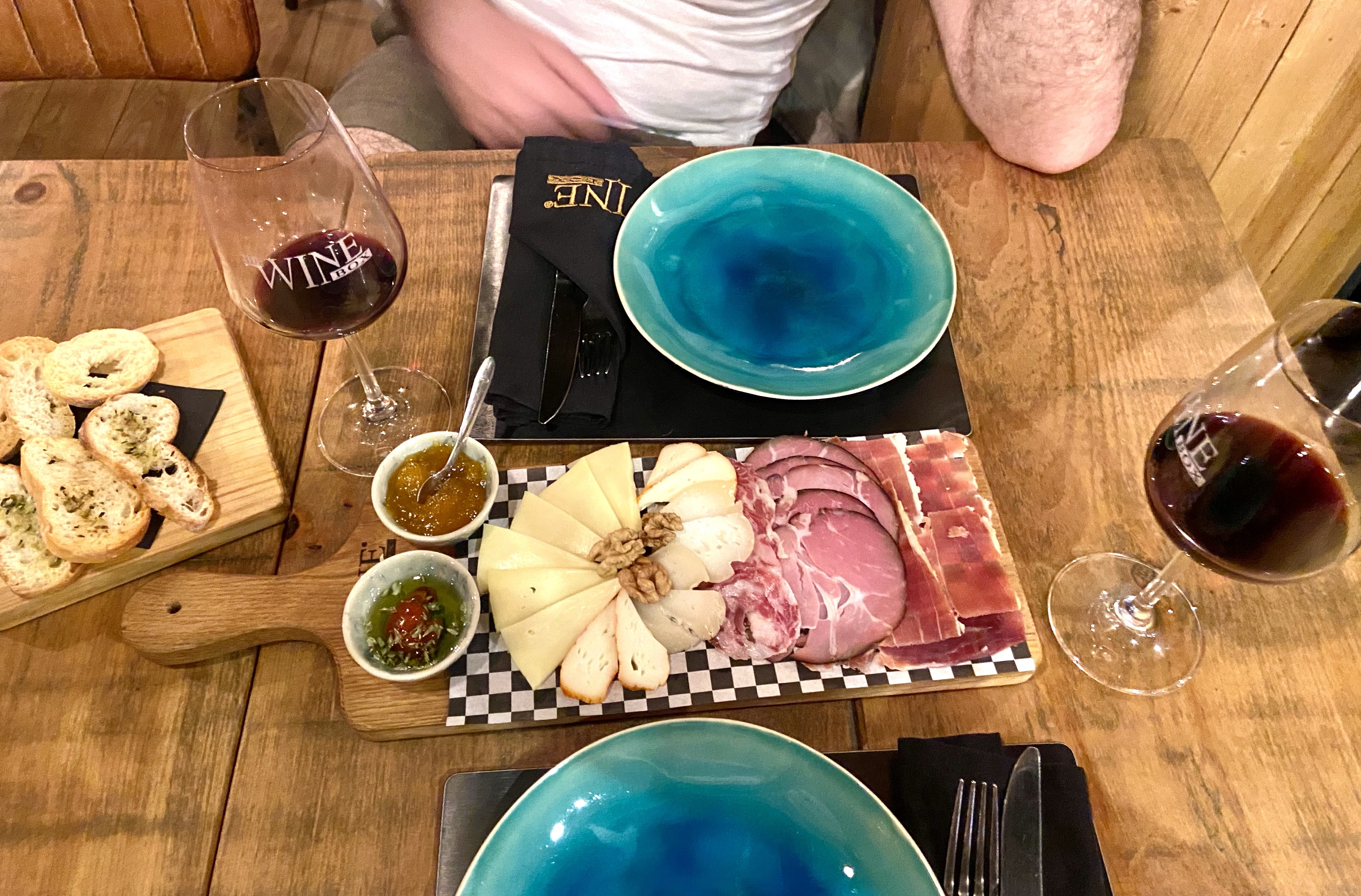 Rue dos Mercadores’te, köşede yer alan The Wine Box‘a iki kez gidip toplamda 13 şarap tattık ve menüsündeki her bir sekmeden en az bir çeşit denedik. Çeşitli peynir tabakları ve şarküteri tabakları sunuyor mekan, hem büyüklük hem çeşit sayısı olarak farklı özellikteler. Portekiz peynirlerinde bir Fransız peyniri çeşidi ve olgunluğu beklememek gerek, fakat özellikle koyun peynirleri çok lezzetli varyasyonlara sahip. Şarapla çok iyi gittikleri de bir gerçek! Üstelik yanında, Türkiye’de artık unutulmakta olsa da, Sefaradlar sayesinde tanıştığımız ve eskilerin pek iyi bildiği “bimbriyo” (Portekiz’deki adıyla membrillo) yani ayva marmelatı/ayva helvası da geliyor her yerde. Nasıl muhteşem bir peynir eşlikçisi! Yine iberico olarak da bilinen, domuz budundan yapılan jambonlar ve diğer chorizo benzeri sucuklar da şaraplara harika eşlik ediyor.