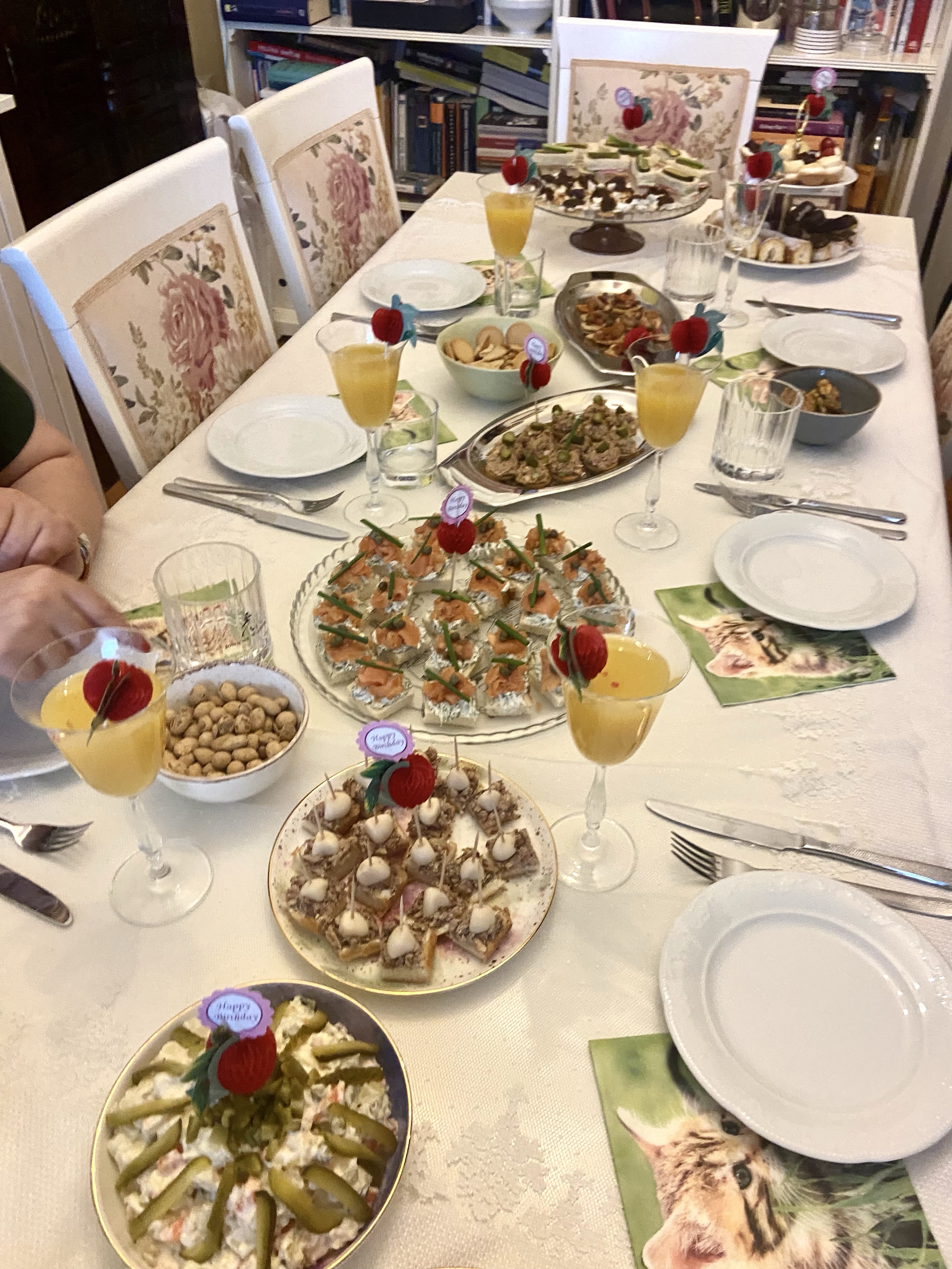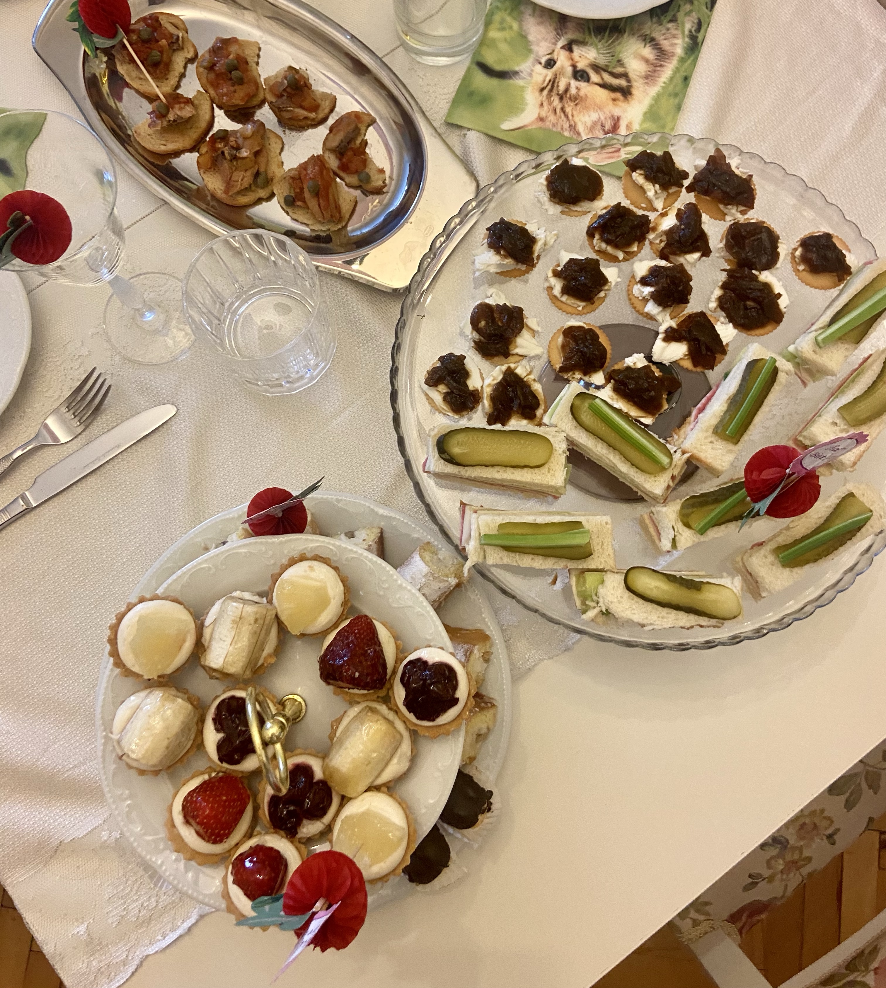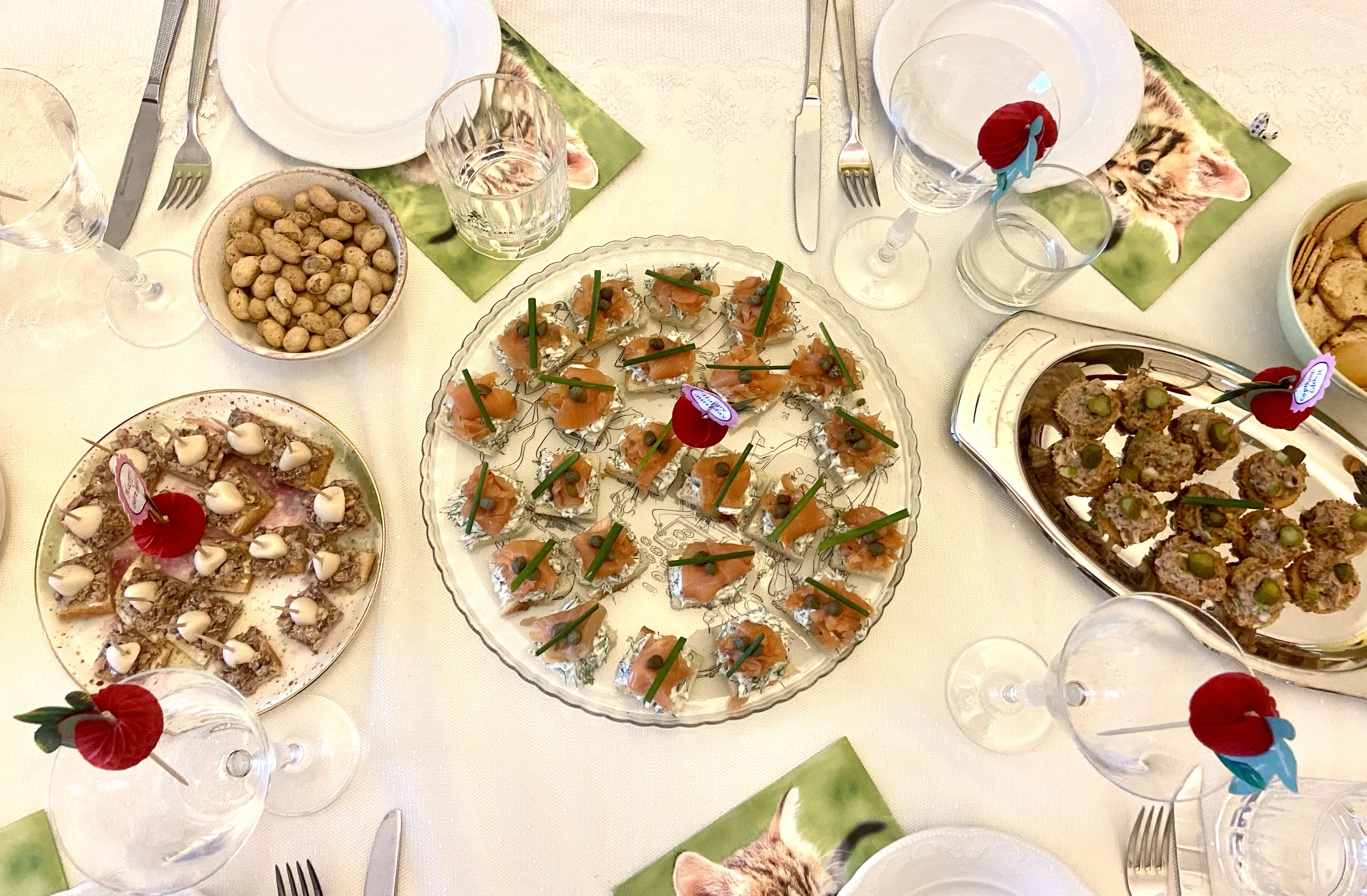Böyle bir masa kalabalık, bol sohbetli hallere çok iyi uyum sağlar, belki de o yüzden bana kanepe ve finger food en çok yaz akşamlarını ve kutlamaları çağtıştırır. Bizim de kendimizce bir kutlama sebebimiz vardı, kedim Elma’nın bana 15 yıldır, bize hatrı sayılır bir zamandır yoldaş olması… Onun şöleni de en sevdiği yaş mamaydı elbet. Evet, bir hayvanın “insanı” olmamış insanlar için belki pek anlamlı değildir, hatta komiktir belki kutlama sebebimiz. Ama bizim için şu dünyadaki pek çok şeyden daha anlamlı onun bize yoldaşlığı, o yüzden pek güzel kutladık… Sizin belki bambaşka sebepleriniz olacaktır, belki bir sebep bile aramadan dostlarınızla biraz yiyip için konuşmak için evinize böyle bir sofra kuracaksınızdır. Eğer aklınıza bir fikir düşürebildiysem ne mutlu bana!