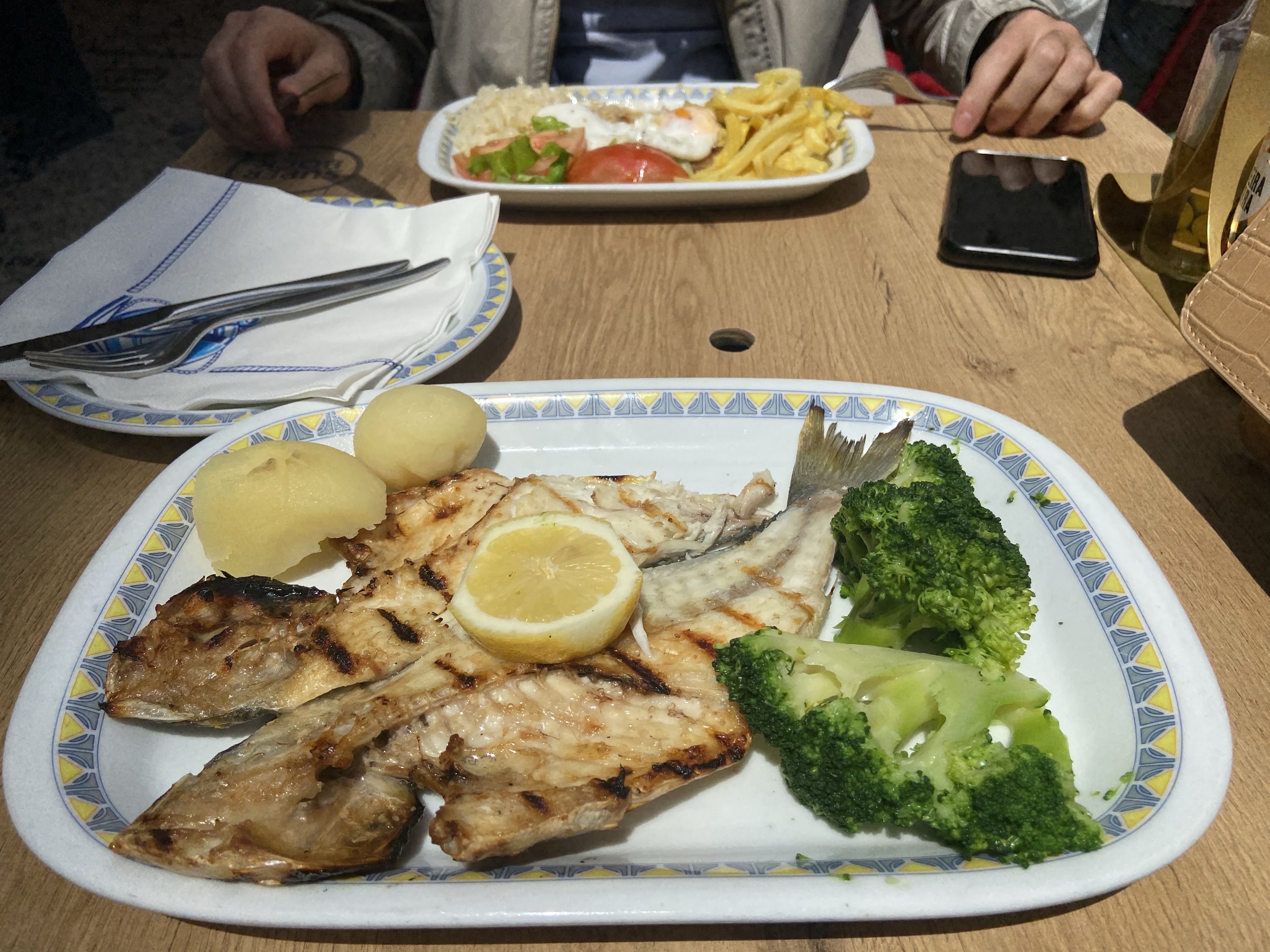 1- Rua Eça de Queiros, 5 numaradaki O Cacho Dourado bizdeki esnaf lokantalarının karşılığı tam. Temel kural “follow the locals/yerlileri takip et” düsturu burada da işe yarıyor. Takım elbisesiyle öğle arasındaki bankacılar, aileler, öğrenciler genellikle bu tarz yerlerde yemek yiyorlar ve bir bildikleri var hakikaten, her şey çok uygun fiyatlı ve çok lezzetli. Çorbası, yemeği, tatlısı, her şey var… Ben Akdeniz’de yaygın olan dorada, yani bir tür çipura yedim; doğrusu uzun zamandır bu kadar deniz kokan bir çipura yememiştim. Bu tarz lokantalarda makul fiyata düzgün yemek garanti.