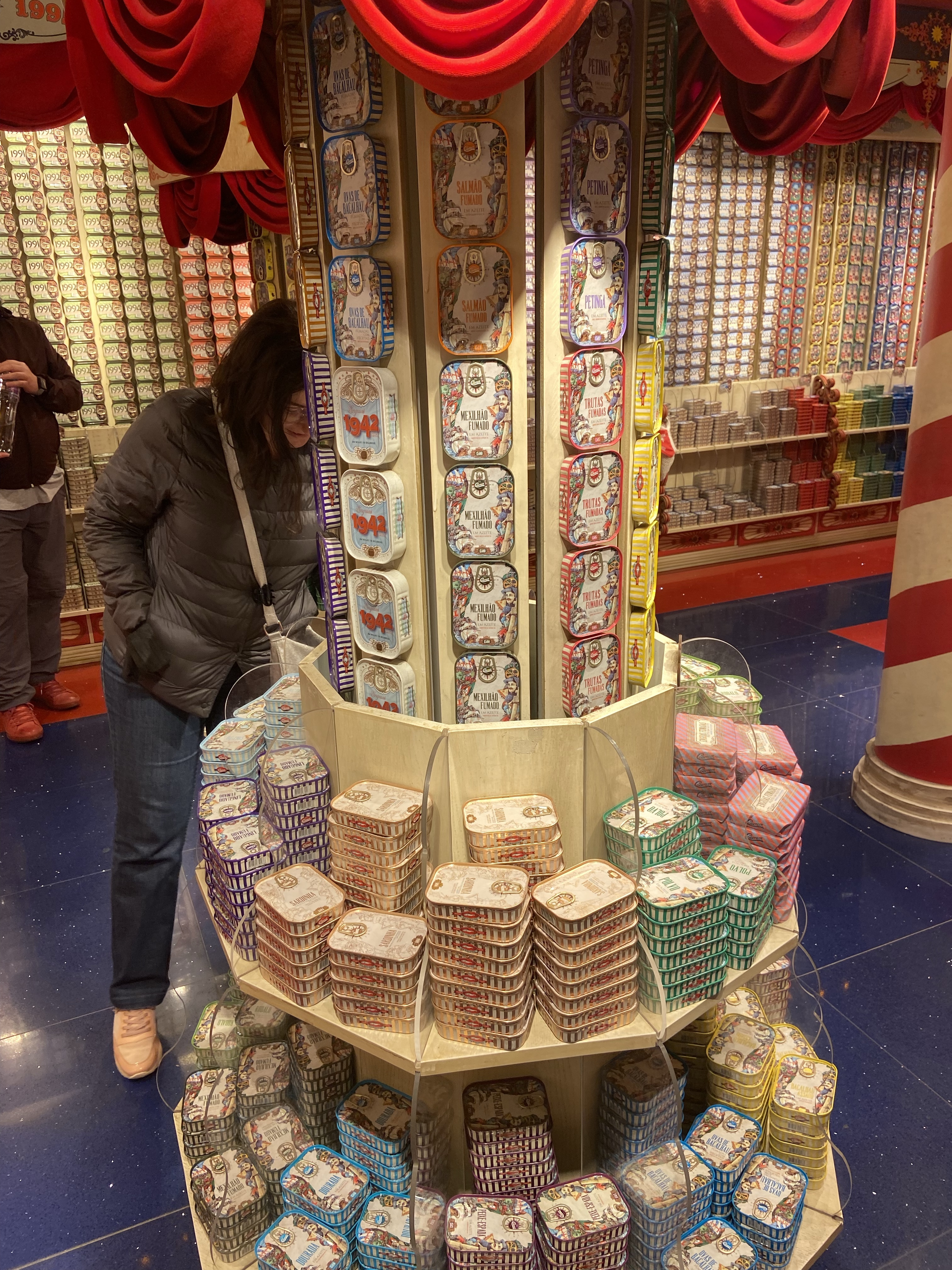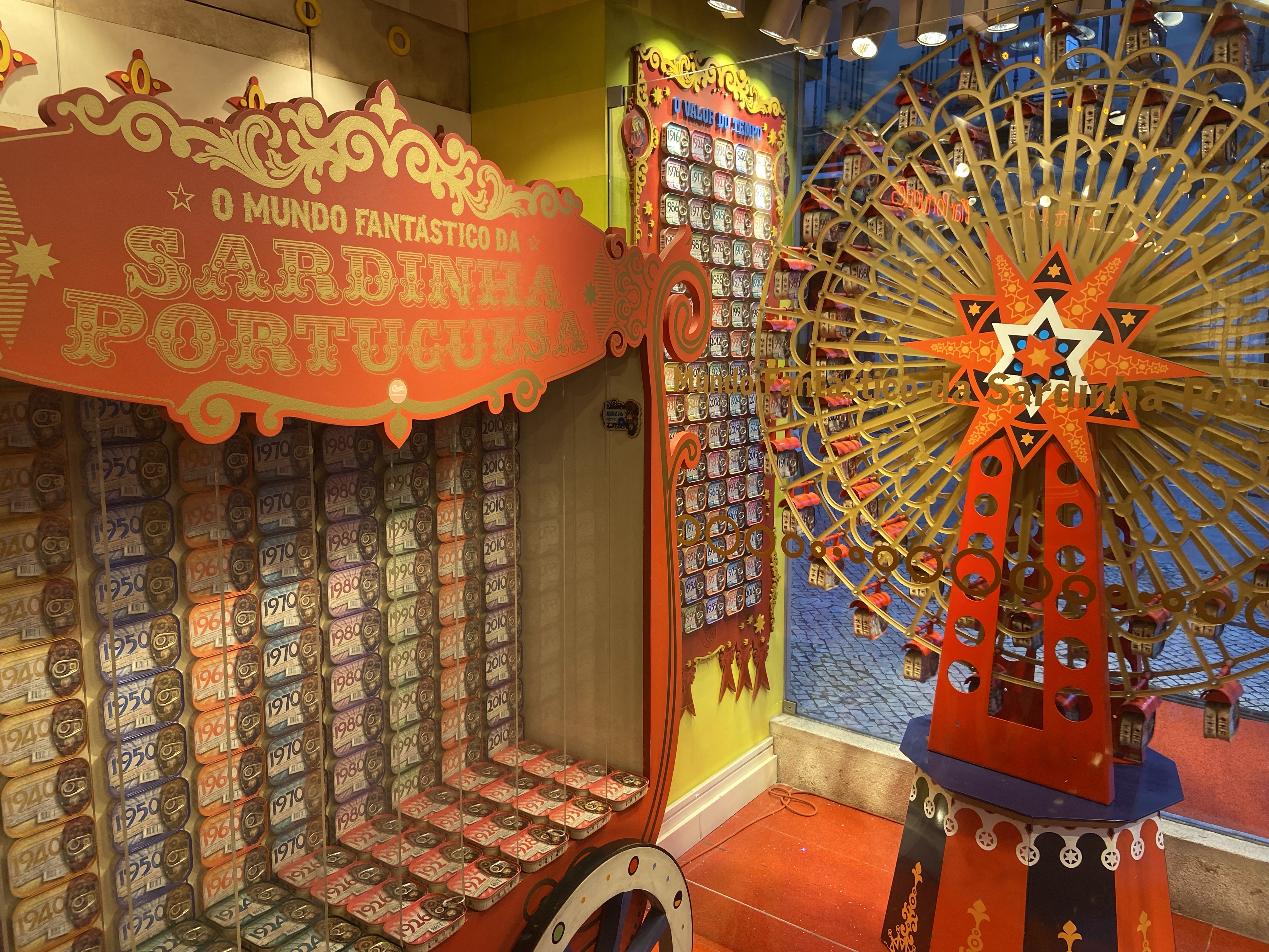 4- Portekiz’in sardalyası meşhur olduğu için çeşit çeşit de sardalya konservesi satan yer var. Bunlardan sanırım en turistik olanı O Mundo Fantastico da Sardinha Portuguesa. Sirk konseptli dükkanlarda koleksiyonluk ambalajlarda sardalya konservesi satıyorlar. Birçok şubesi olduğundan illa denk gelirsiniz, ama buna para vermeye gerek var mı, emin değilim. Zira herhangi bir marketten aldığınız herhangi bir sardalya konservesi bile çok güzel, yaklaşık olarak da buranın sekizde biri fiyatına. Yani çok fark yoktur diye düşünüp almadan önce bir market bulmak daha iyi bir fikir olabilir 🙂