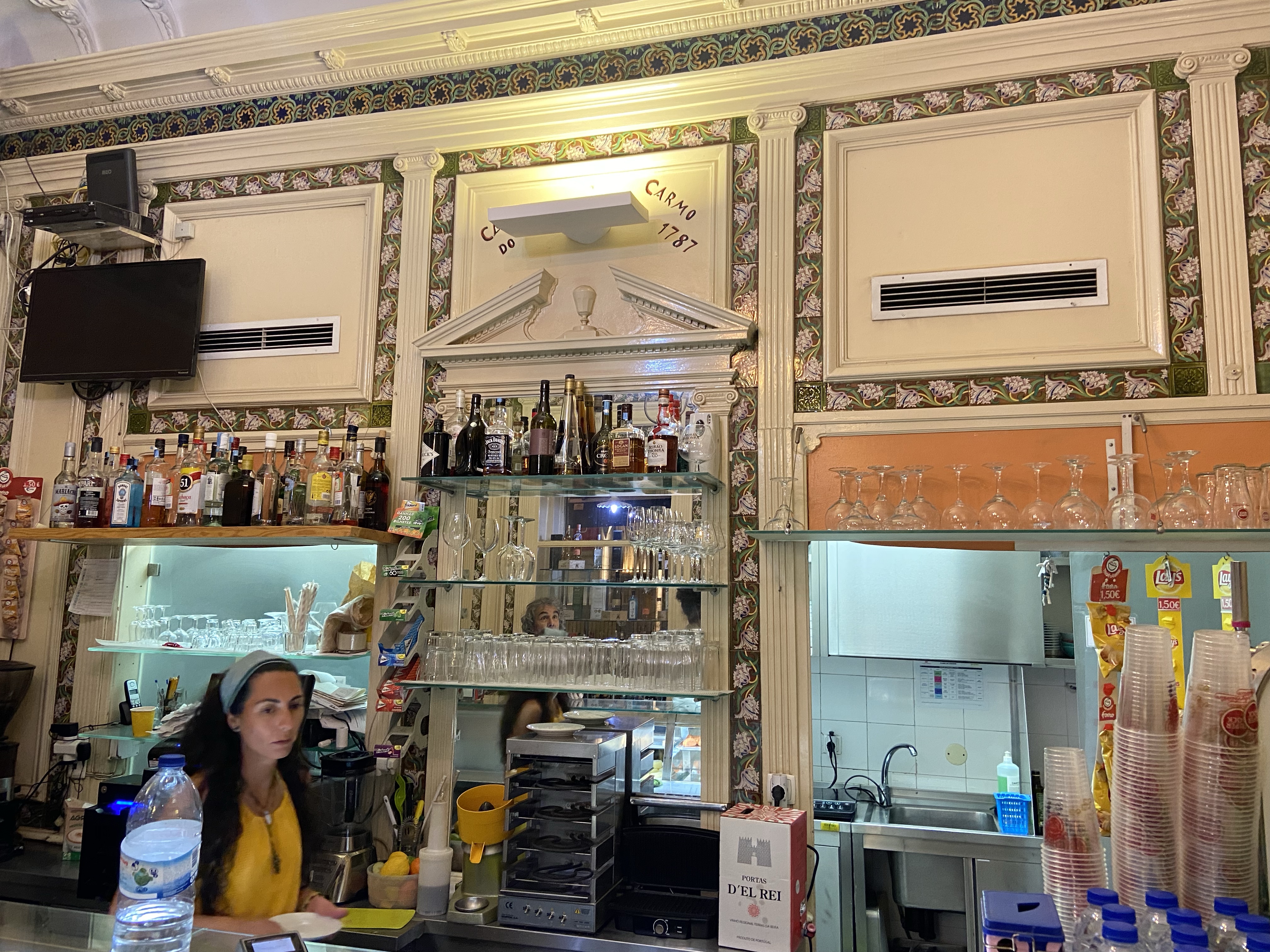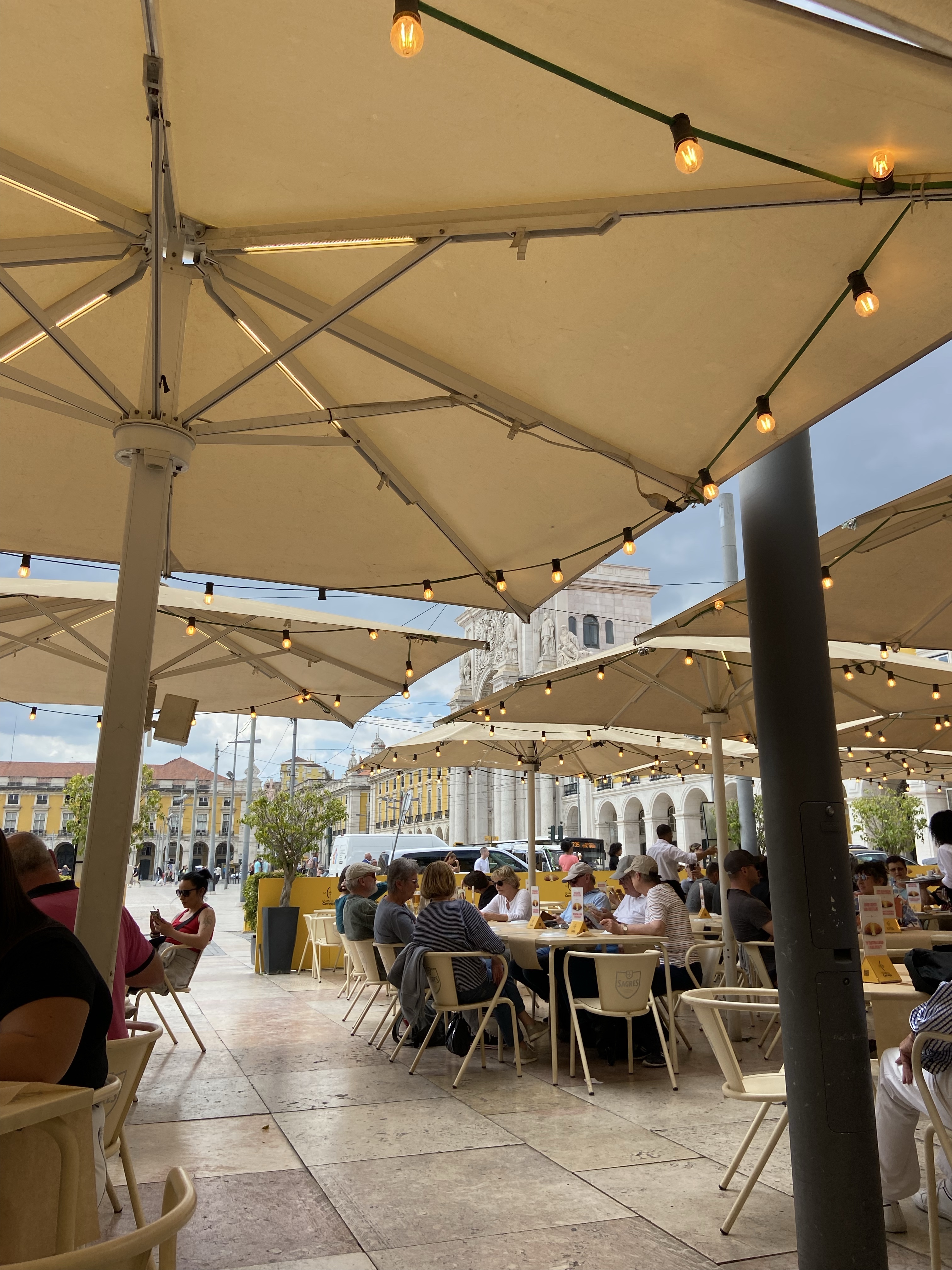 11- Lizbon’da kaldığımız süre boyunca en çok gittiğimiz meydan Carmo Meydanı oldu. Yarı yarıya yıkılmış Carmo Kilisesi’nin önündeki bu meydan, ulu ağaçlarıyla, meydanı çevreleyen güzel binalarla sahiden oturması çok keyifli bir yer. Her meydanda olduğu gibi, burada da içki servisi yapan kiosklar var. Ama biz özellikle Leitaria Academica’nın meydandaki masalarında oturduk, çünkü geniş bir menüleri var. Ginjinha’nızı da içebilir, kokteyllerinizi de yudumlayabilir, benim favorim olan Moscatel’leri (tatlı Misket şarabı) bardak bardak yuvarlayabilirsiniz. Leiteria Academica, Largo do Carmo
