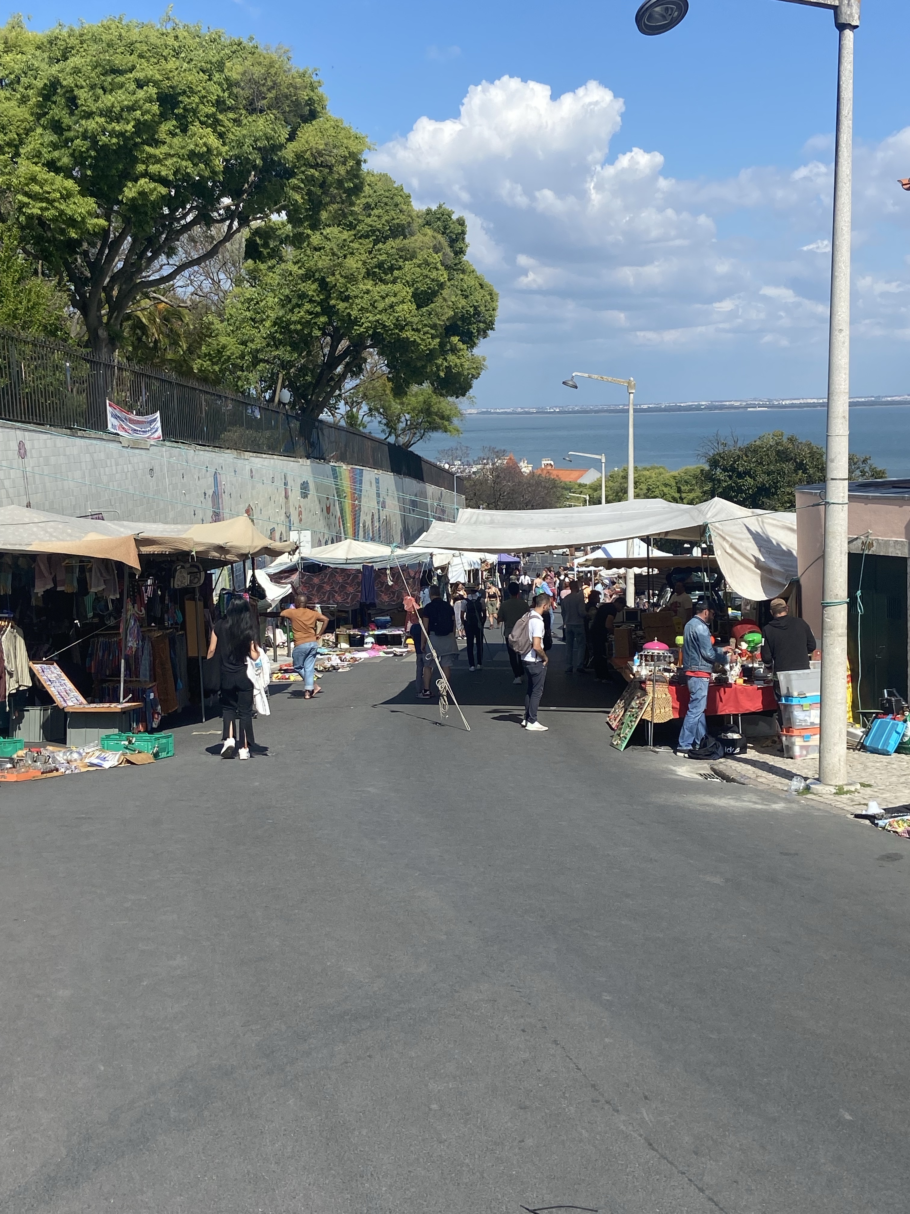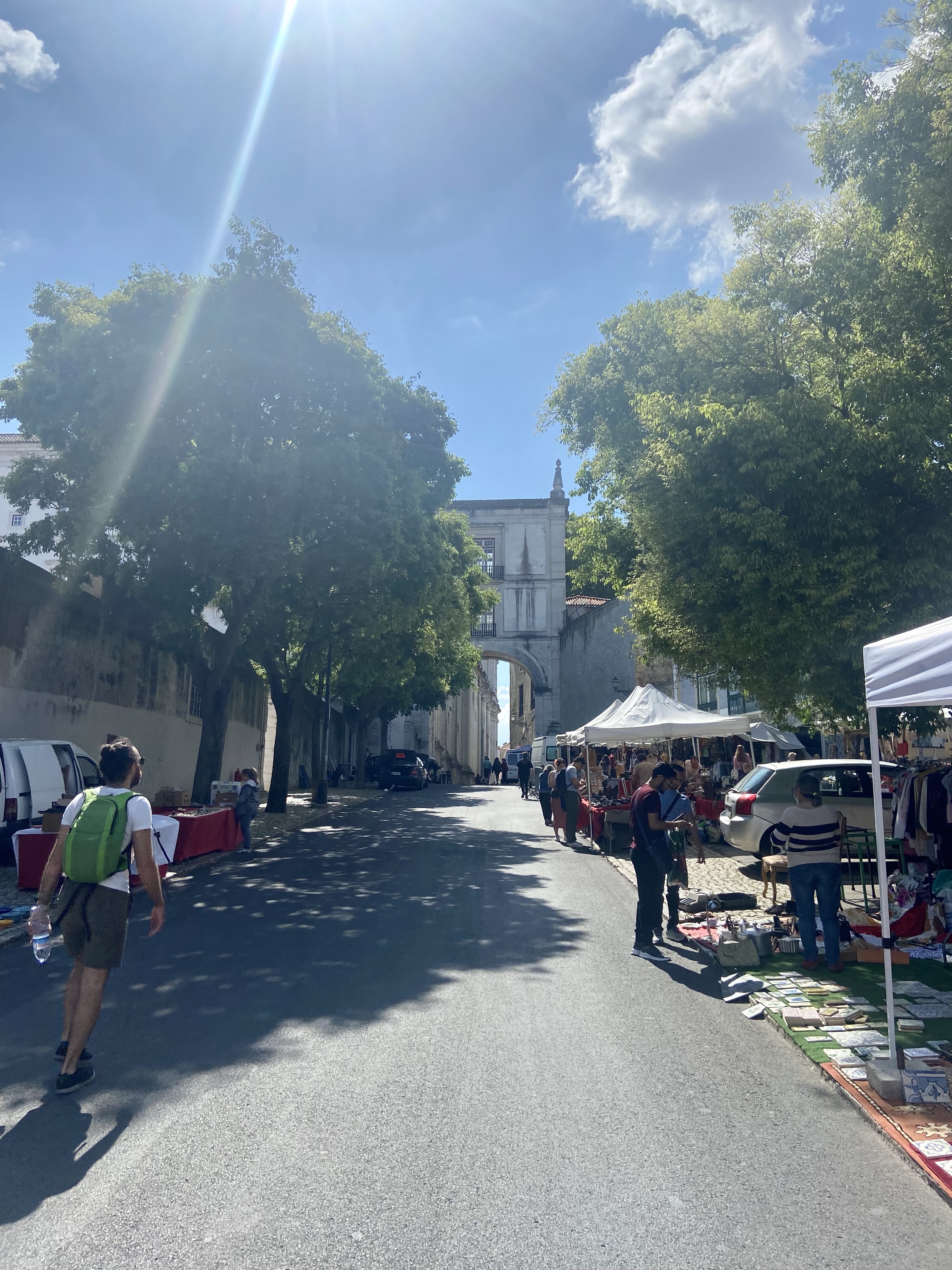 8- Feira da Ladra, “hırsızlar pazarı” yani Lizbon’un bit pazarı, Campo de Santa Clara meydanında yer alıyor. Alfama’dan çıkarken epey yokuş yukarı, fakat bence acayip zevkli bir yol. Pantheon da pazara çıkarken yol üstünde, o yüzden onu da görüp yola öyle devam edebilirsiniz. Saat 5’e doğru tezgahlar toplanıyor, o yüzden 4 gibi oralarda olmak iyi fikir olabilir. Meydanda antika dükkanları da var ve içinde gerçekten güzel şeylere rastlamak mümkün, (malum zaten İstanbul’daki antikacılar buralardan alıp 3 kat fiyata bize sattıkları için…) Bu meydan benim Lizbon’da en hoşuma giden yerlerden biri oldu, tam akşamüstü gittiğimizden belki, o kocaman ağaçların altında serin serin oturup kitabımı okumak, arada kafamı kaldırıp etrafı izlemek, kuşların şen sesleri filan derken hayatımın güneş ışığına boyalı zaman dilimlerinden biri olarak kayıtlandı zihnime… Tam meydanda, İstanbul’un eskiden sayfiye yerlerinde olan kır kahvelerini anımsatan küçük bir lokanta var, sangriası çok güzel ve ucuz, kocaman ahtapot parçalarıyla dolu olan şu pirinç yemeği ise 7-8 Euro gibi bir şeydi, ki ikimiz yedik. Tam akşam üstü atıştırması… Bence buraya muhakkak bir akşam üstü varacak şekilde, geze dolaşa, yürüye yürüye gidin, bir iki parça hatıralık eşya alın, çökün gölgeye ve nefis tatlı Moscatel’lerden ya da sangriadan için; inanın hayat daha güzel gözükecek…