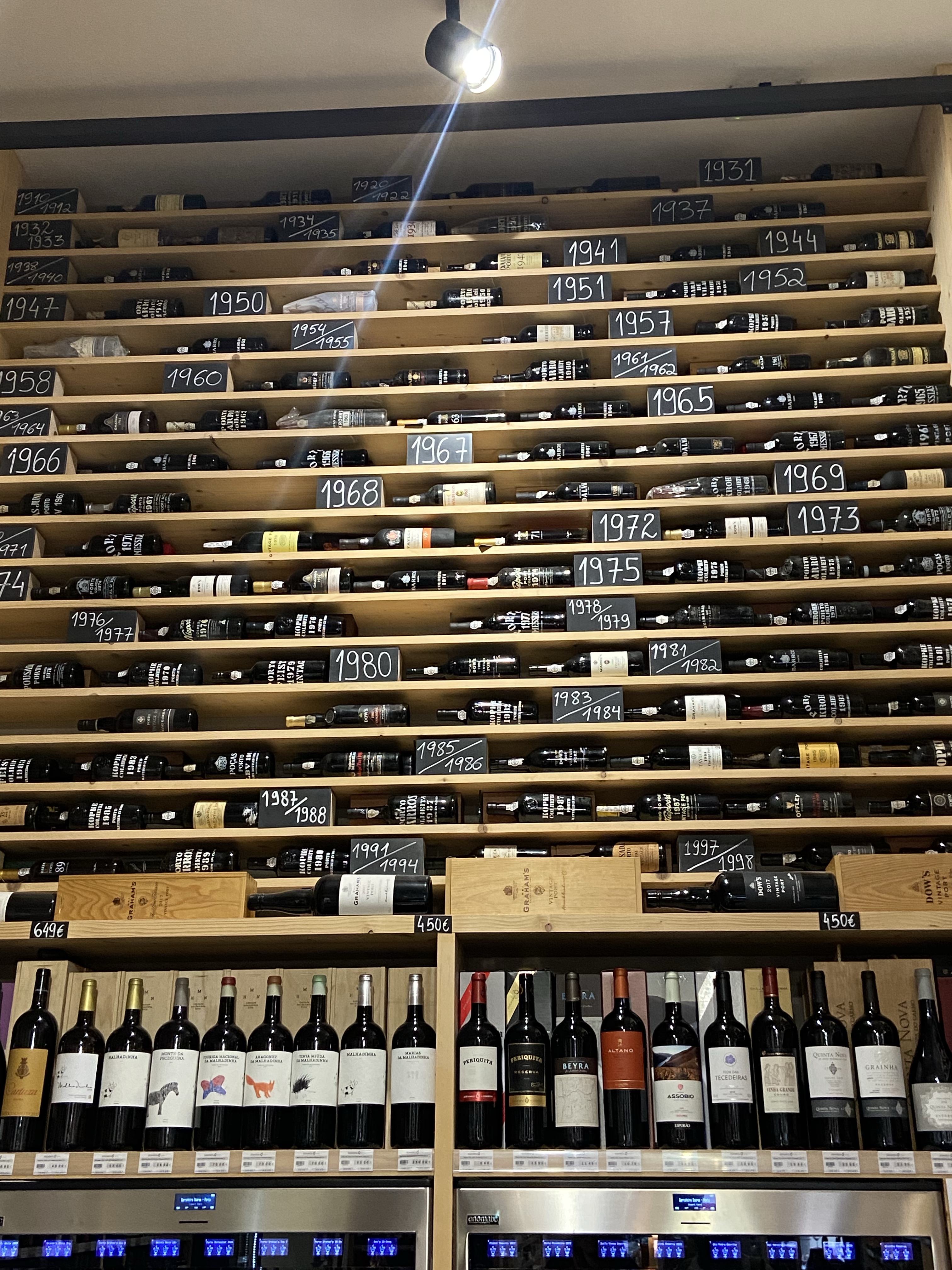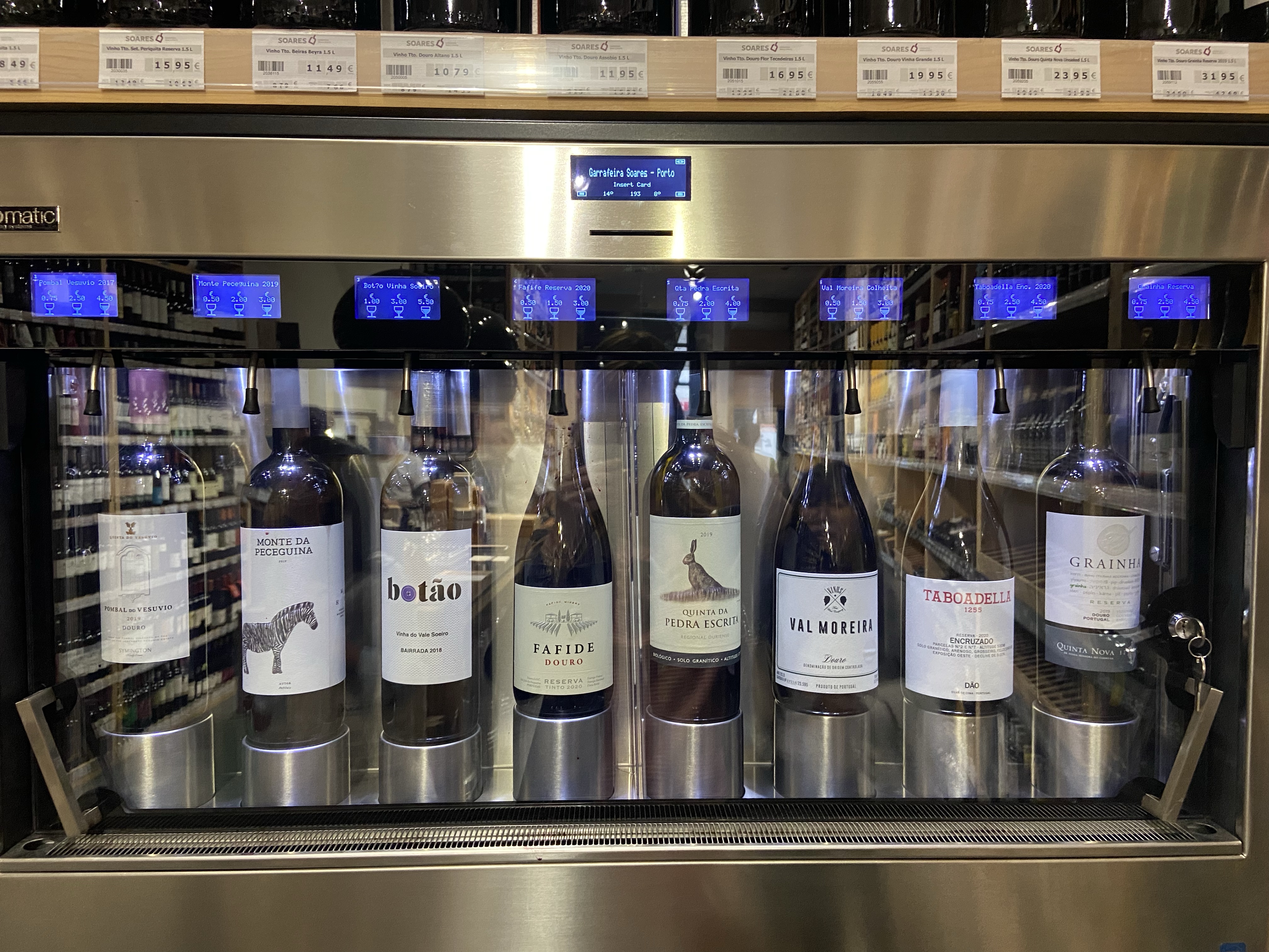 1- Soares Wines and Spirits, muazzam bir şarap butiği. Fotoğrafta da görebileceğiniz gibi, kavında taa 1910’da yapılmış şaraplar bile var. (Ama en pahalısı, 1952’de tahta çıkan II. Elizabeth adına yapılan ve yeni şişelenen şarapmış!) Bu dükkanın en hoşumuza giden yanı, tadım yapılabiliyor olması. Gördüğünüz makinede çeşitli şaraplar var, beyaz, roze, kırmızı, Porto… Makineye para atıyorsunuz ve istediğiniz boyda şarabı kadehinize dolduruyor, tadım boyu veya tam kadeh, seçim size kalmış. Yöntem inanılmaz pratik ve şahsen benim gibi kendi başına olmayı seven insanlara uygun, birisine rica etmeniz gerekmiyor, istediğinizi, istediğiniz kadar deniyorsunuz. Tabii tavsiye de veriyorlar isterseniz, zira dediğim gibi binlerce şaraplık bir kav mevcut. İyi bir şarap dükkanı arıyorsanız bu dükkana gitmenizi, tatmanızı ve beğendiklerinizi almanızı öneririm. Rua de São João’da Numara 70.