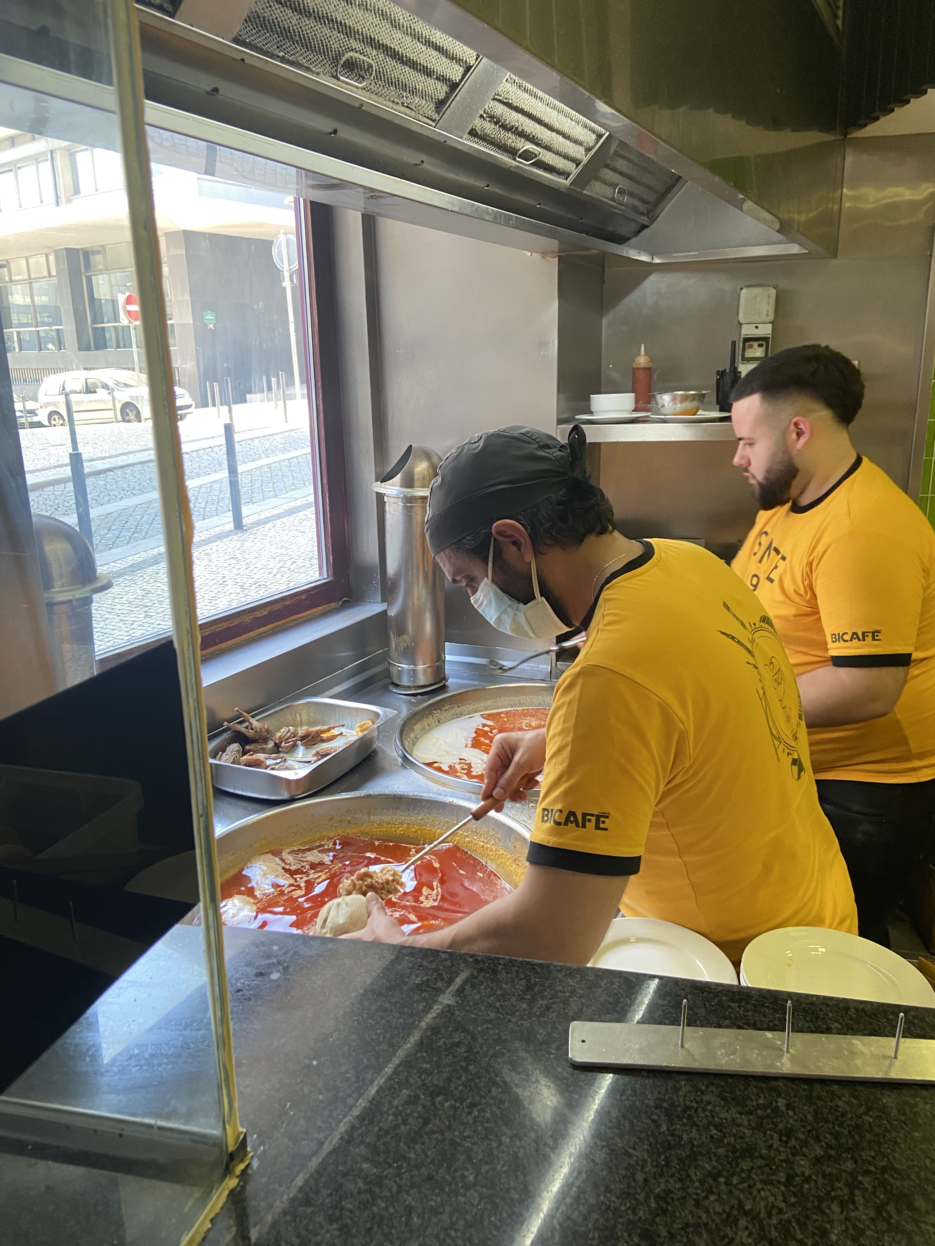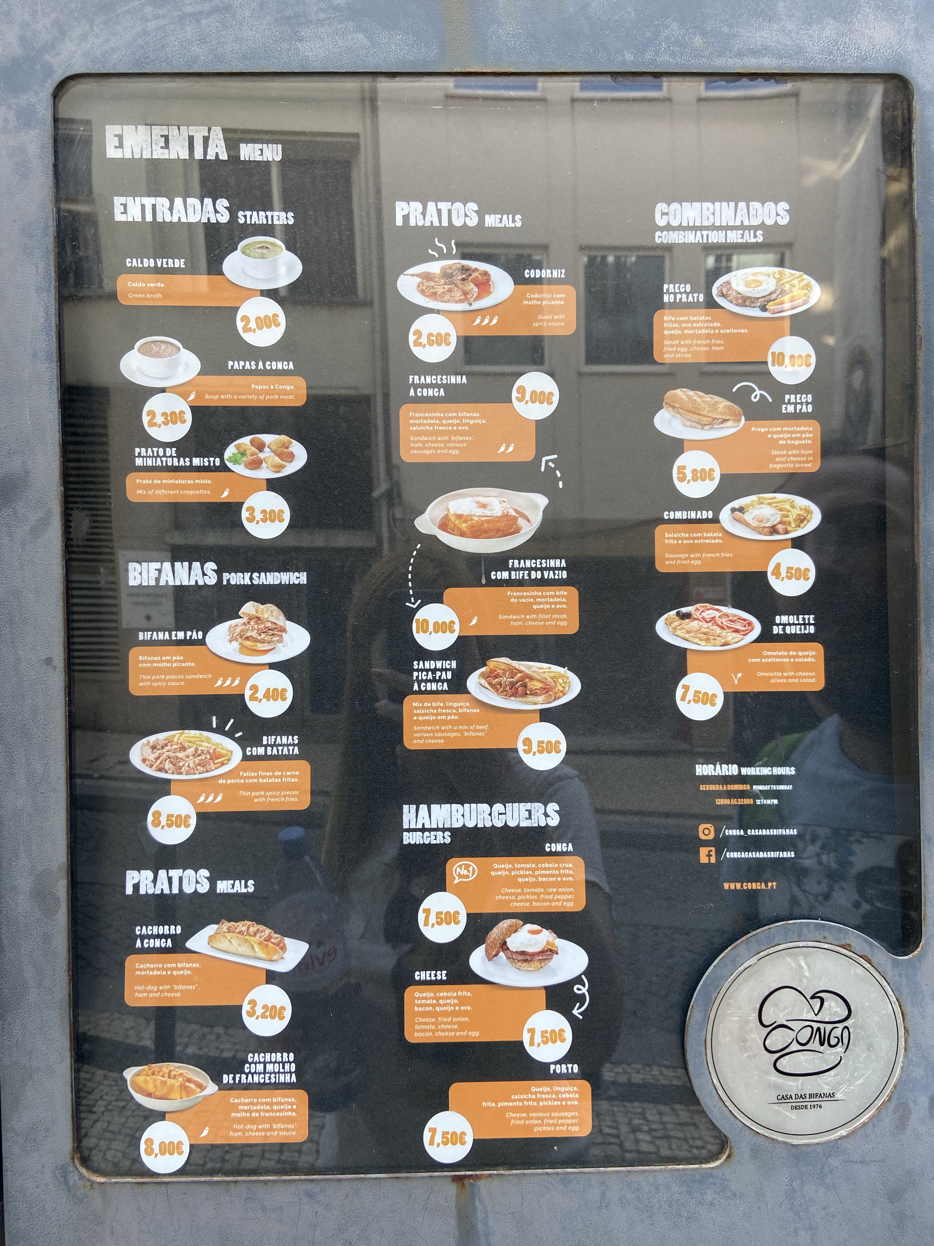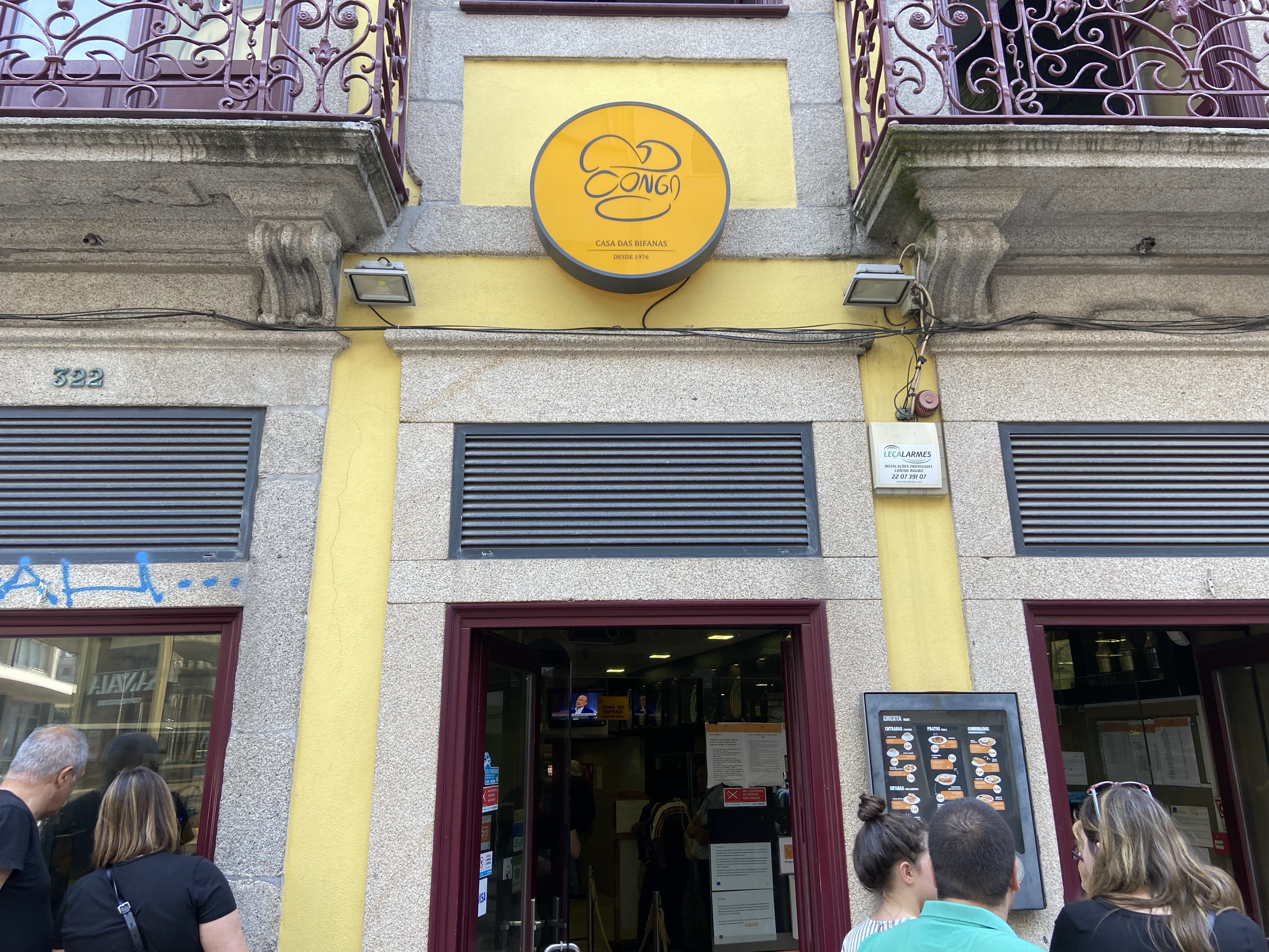 2- Conga, Porto’nun en ünlü “hızlı lezzetçi”si, şehrin yerlisinin de daima yemek yediği bir yer, bir nevi bizdeki Bambi Büfe… Bir nevi bizdeki ıslak hamburgere benzer bir sandviç sunuyorlar, çıtır beyaz ekmek arasında, salçalı ve biraz acılı suda pişmiş domuz eti. Fiyatı acayip ucuz, 2,60 Euro’ya bayaa bayaa et dolu bir şey geliyor önünüze. Tabii ki içeride bira, cidre vs. de var. Oturarak yemek isterseniz biraz sıra bekleyebilirsiniz, ama ayaktaki kısımda yemek bence daha güzel. Ayaküstü bir elma birası, bir sandviç yuvarlayıverdik. Rua do Bonjardim, Numara 318.