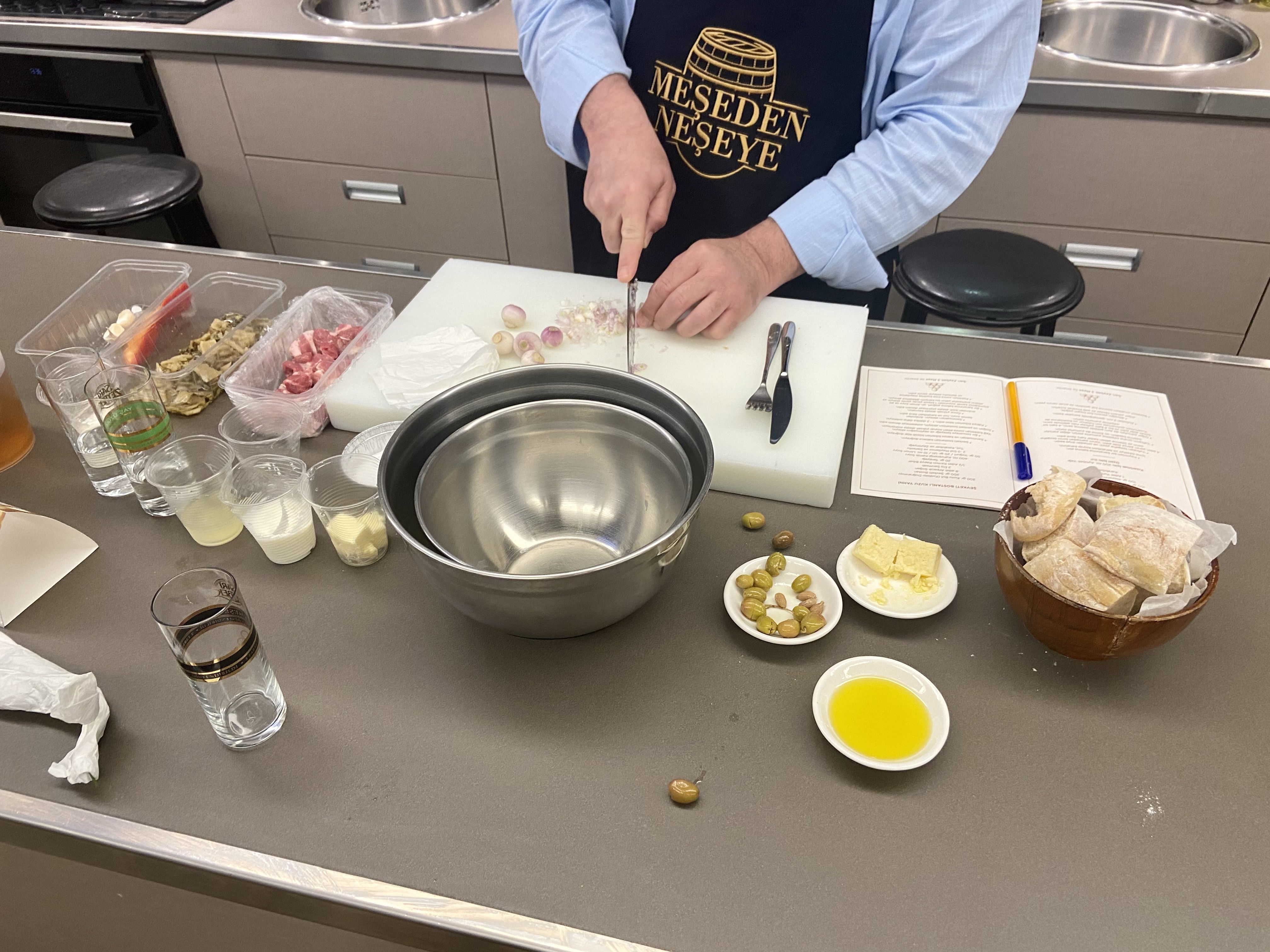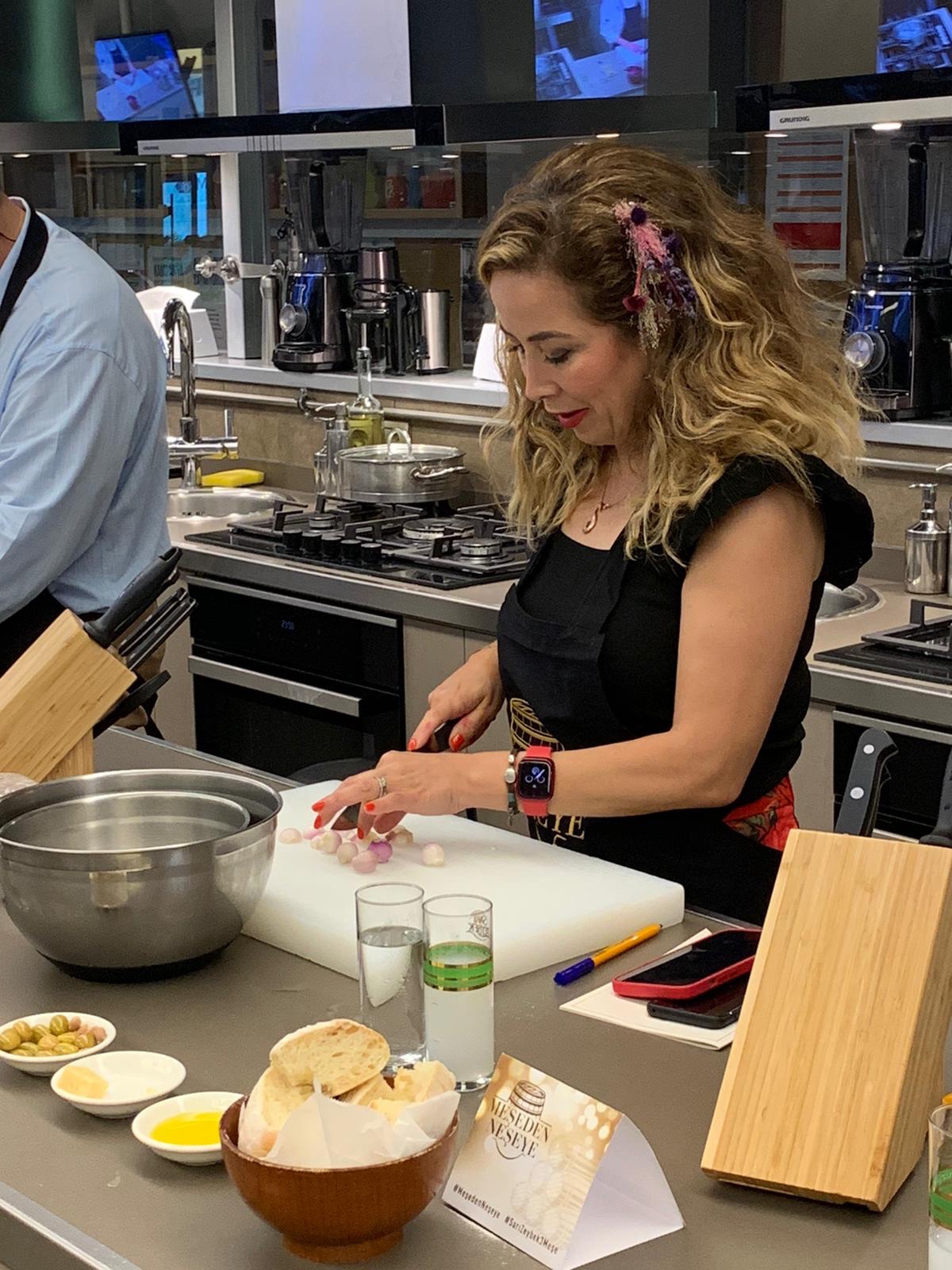 Menü demişken, hem Ege’yi hem İstanbul’u yansıtacak, tam bir bahar-yaz başı menüsü hazırlamak istemiştim, sevgili şefimiz Tolga Çakar ve MSA’nın da yardımlarıyla mümkün oldu, hepsine çok teşekkürler. Seçtiğim malzemelere en uygun tarifleri geliştirdiler ve katılımcılara öğrettiler. Sonuç: mutlu yüzler!