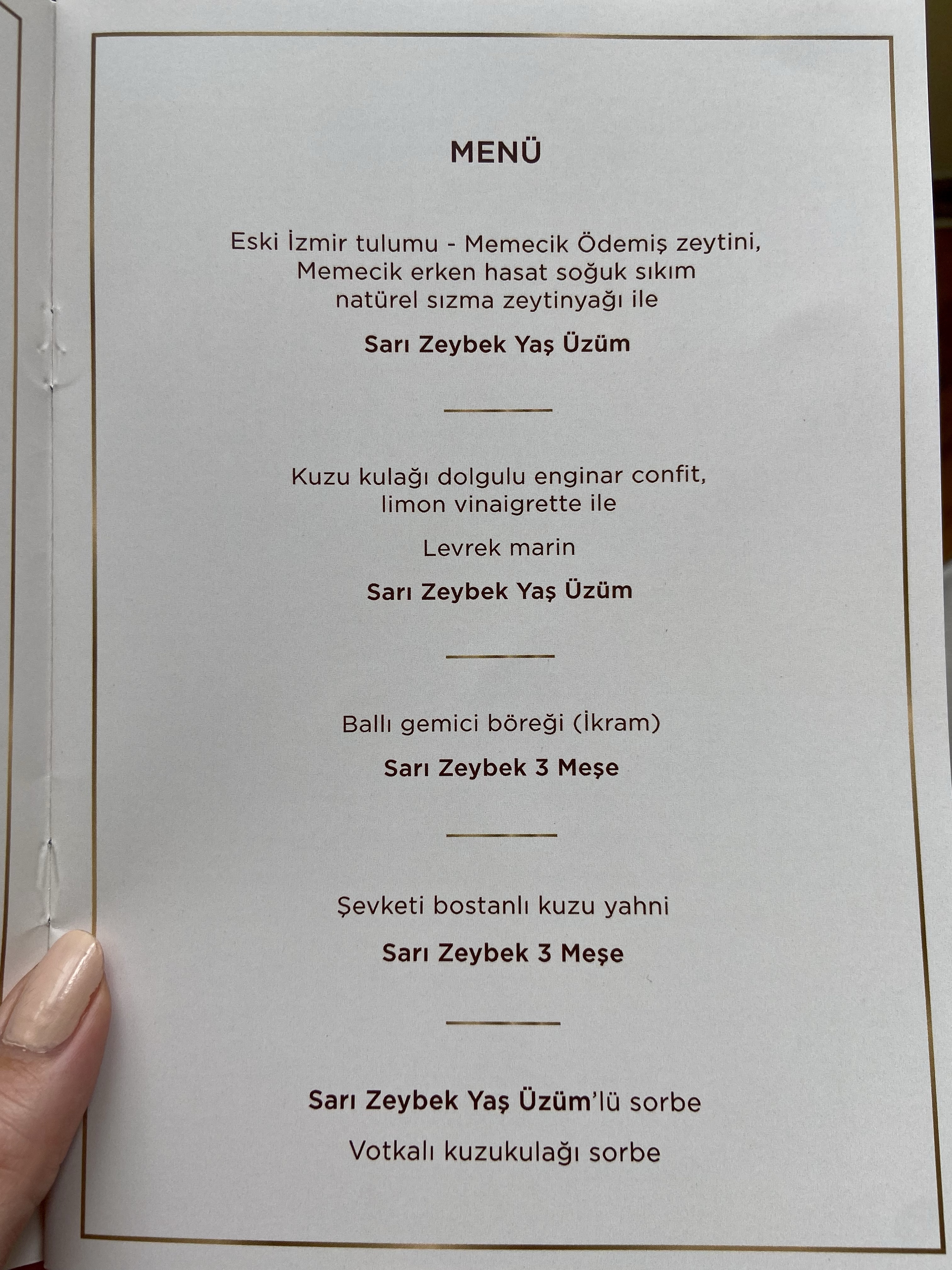 Sadece konuşmadık, yediklerimizi de biz yaptık; Sarı Zeybek Yaş Üzüm’e eşlik edecek enginarı kuzukulağıyla, levrek marini hardalla hazırladık; sonra Sarı Zeybek Üç Meşe eşliğinde gemici böreklerini bala bandırdık, üstüne kuzu etli şevketibostan yedik. Yaş Üzüm’ün meyvemsi notaları belirgin tadı soğuk mezelere nefis eşlik ederken, Üç Meşe de sıcak yemeklere, etlere, güçlü tatlara ne kadar iyi bir eşlikçi olduğunu kanıtladı. Çoğumuzu şaşırtacak şekilde, alkol oranı aynı (%45) olmasına rağmen rakıların tadının ne kadar değişebileceğini deneyimledik böylece. Keza meşe fıçıya girmenin rakının tadını ne kadar değiştirdiğini de gördük: ben gibi başka “Normalde yaş üzüm sevmem, ama bu yaş üzüm rakısını çok beğendim” diyenler oldu. Belki de bu, önyargısız şekilde denemeye açık olmanın da ne kadar önemli olduğunun bir göstergesi… Gastronomiye keşifler bizi şaşırtmaya devam ediyor!