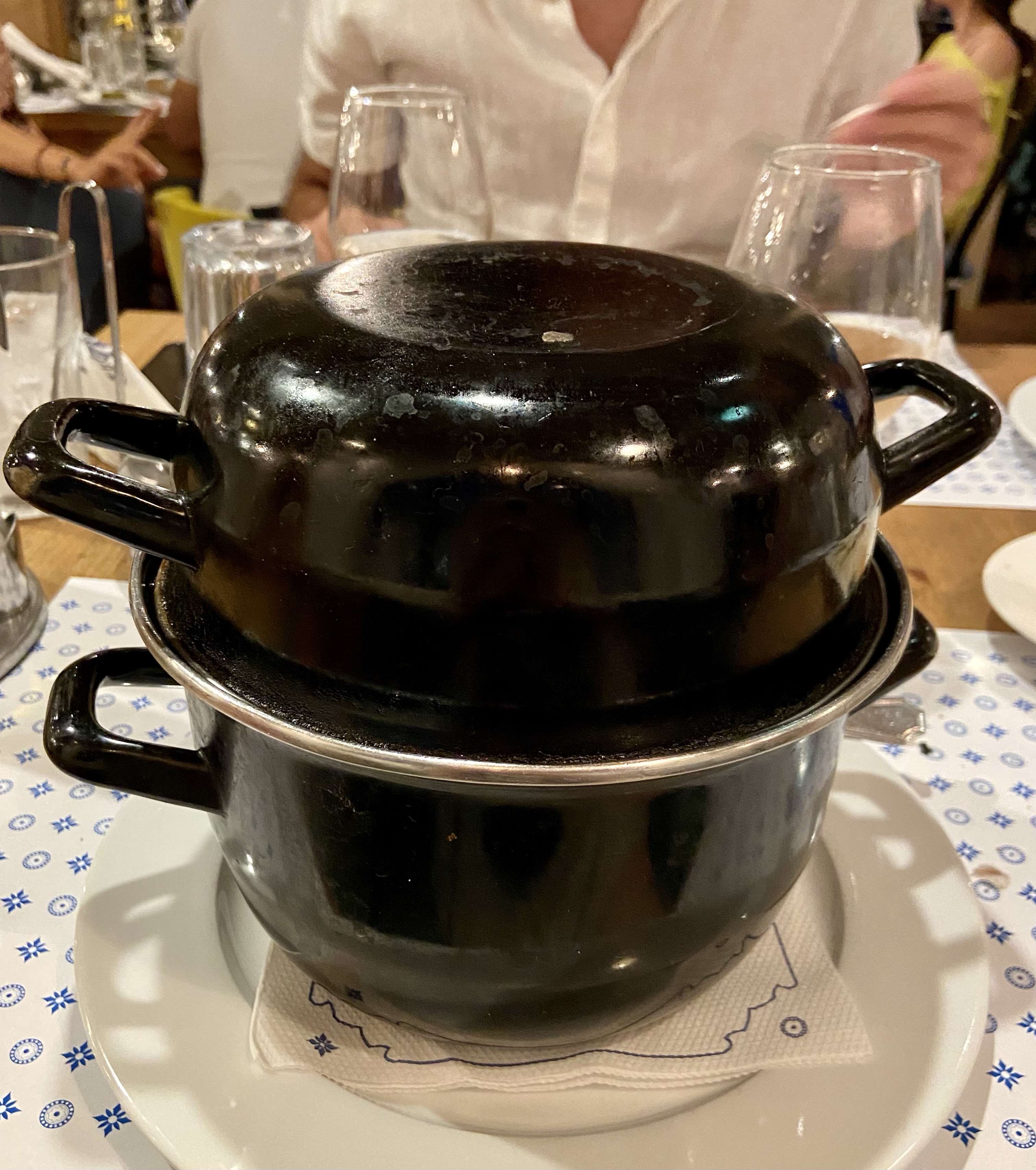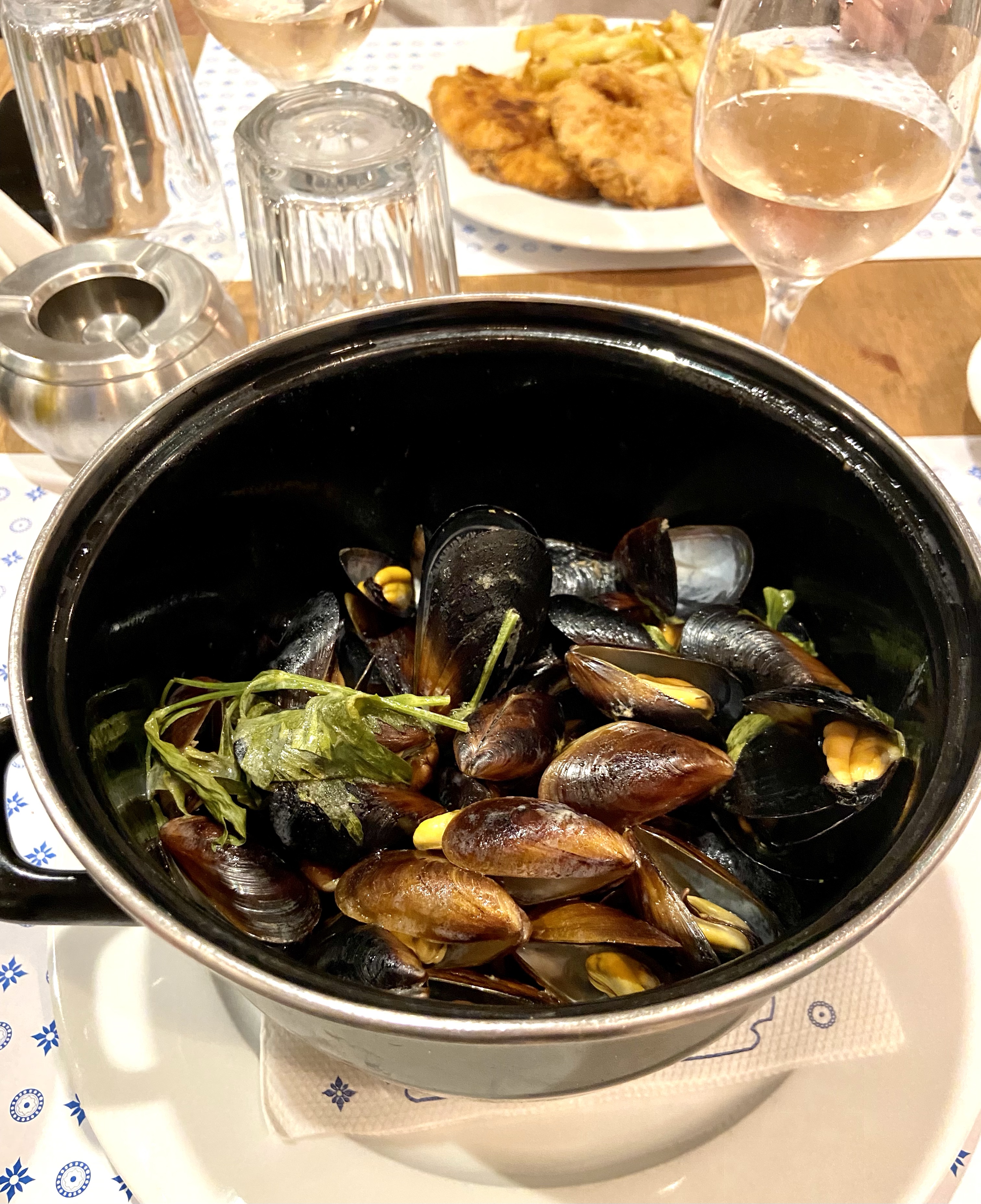 Yemek olarak Alp köpek balığı filetosu, babam ve kebabçe söyledi, bense midye aldım. Ortaya da kızarmış kalamar söyledik. Kızarmış kalamarlar birçok yerde farklı boyutlarda ve bacaklı geliyor, yani standart dondurulmuş kalamar kullanmıyor birçok yer, artı puan. Birçok deniz mahsulü gibi (Yunanistan kadar olmasa da, Bulgaristan’da da deniz mahsulü çok seviliyor, yaygın ve ucuz) midye çok yaygın, özellikle “Belçika usulü” diye bilinen moule mariniere’in birçok yerde servis edildiği dikkatimi çekti (ki daha önce Nesebar’a gittiğimde de denk gelmiştim). Portekiz’deki bol sarımsaklı, zeytinyağlı, beyaz şaraplı midyelere daha bir bayılsam da, soğanlı, maydanozlu, tereyağlı ve beyaz şaraplı bu midyeler de az nefis değil! Bir tencere dolusu midyeyi sosuyla beraber mutlulukla mideye indirdim.