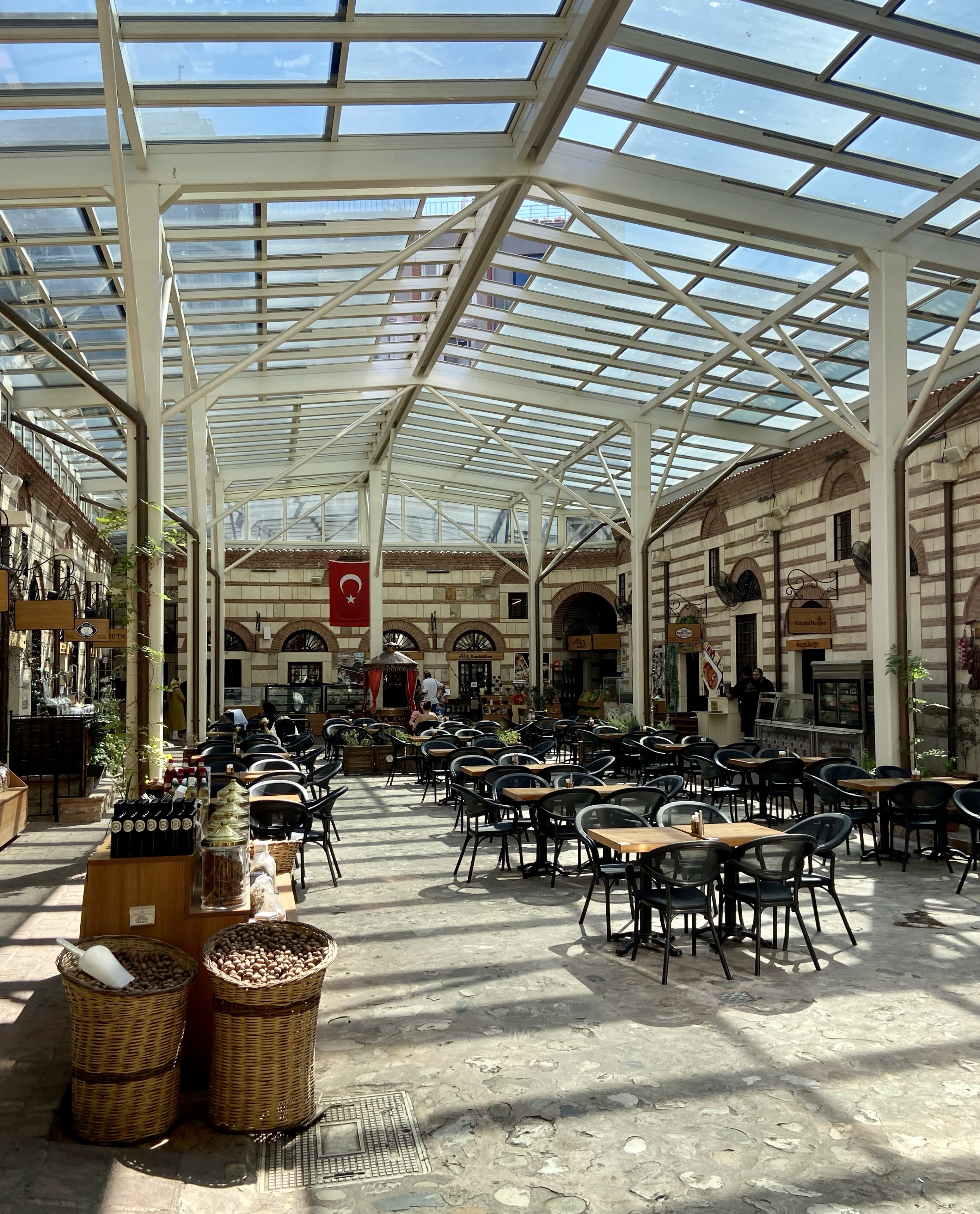 Sonra soluklanmaya Beta Tea’ye uğradım, bileniniz vardır, bir zaman önce orada hanın içine şahane bir kafe açtılar. Mısır Çarşısı’nın içinde olup da bu kadar sakin, hayhuydan uzak yer azdır. Eski hanların avluları bu bakımdan çok özeldi, sayelerinde yine öyle olmuş. Bana makul fiyatlı çay soranlara fiyat/performans açısından ben hep Beta’yı öneriyorum. Burada artık tadıp içip öyle alma imkanı oluyor. Hem açık hem kapalı yeri var. Alışverişten yorulduğunuzda aklınızda olsun, burada huzur içinde oturabilirsiniz. Bu arada çayın yanında çok da güzel kurabiye ikram ediyorlar.