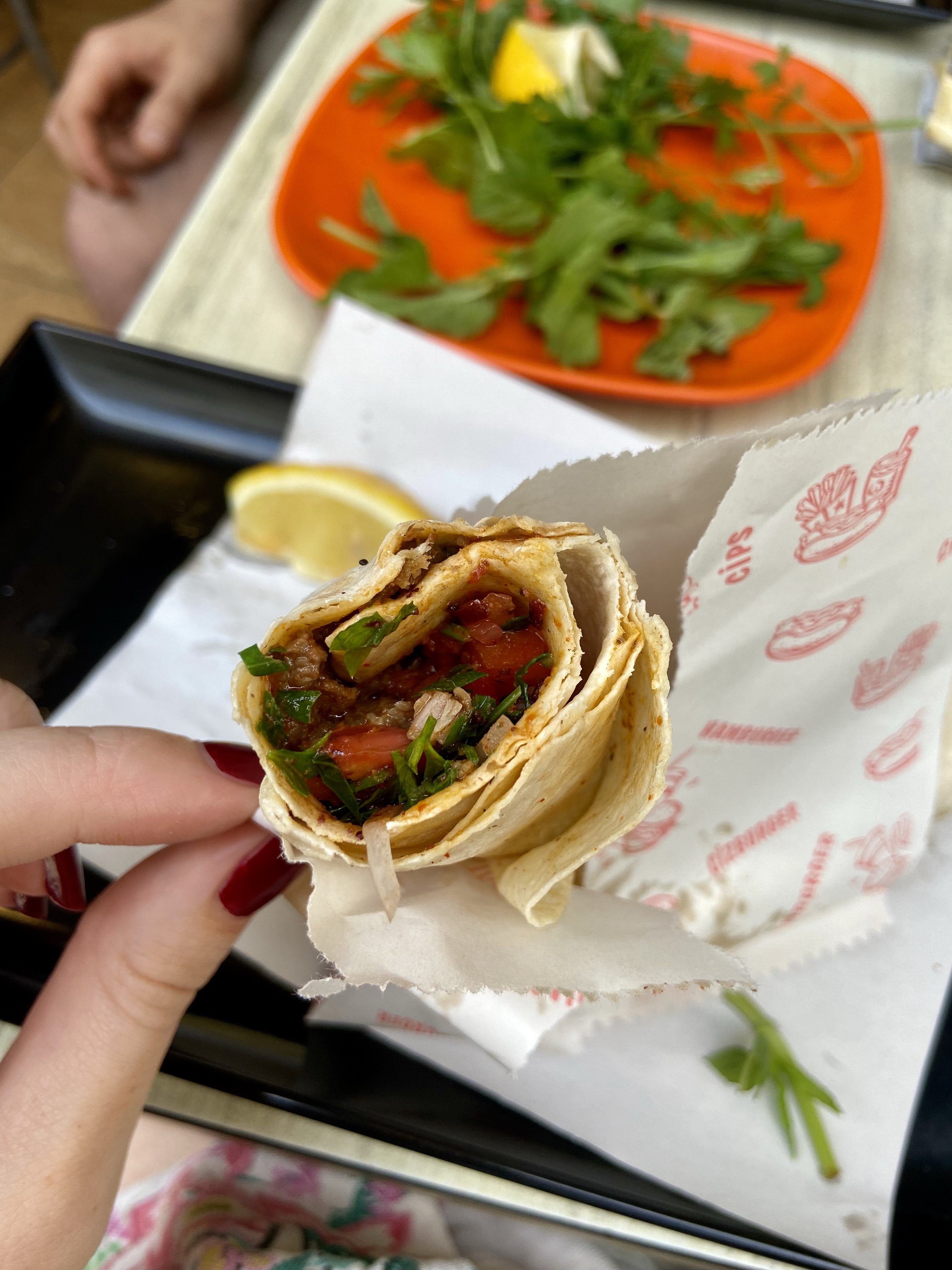 Mısır Çarşısı’nda onu al bunu al deyip birkaç yüz lira bayıldıktan sonra Karaköy’e geçtik. Oradaki Beş Altı Kirvem Tantuni’yi ilk kez yıllaaaar yıllar önce dostum Merve bize öğretmişti, o zamandan beri oranın tantunisini çok seviyorum. Birer tane atıverdik. Eskiden pazarları açmazlardı, son yıllarda açıyorlar, artık pazartesileri kapalılar. Tantunileri yine çok güzel. Benim çok sevdiğim dondurmacılardan Girandola da aynı sokağa şube açtı, çok mutluyum doğrusu! Zira Arnavutköy, İstinyePark şubeleri şehrin öbür ucundaydı, artık burada da varlar, oh!