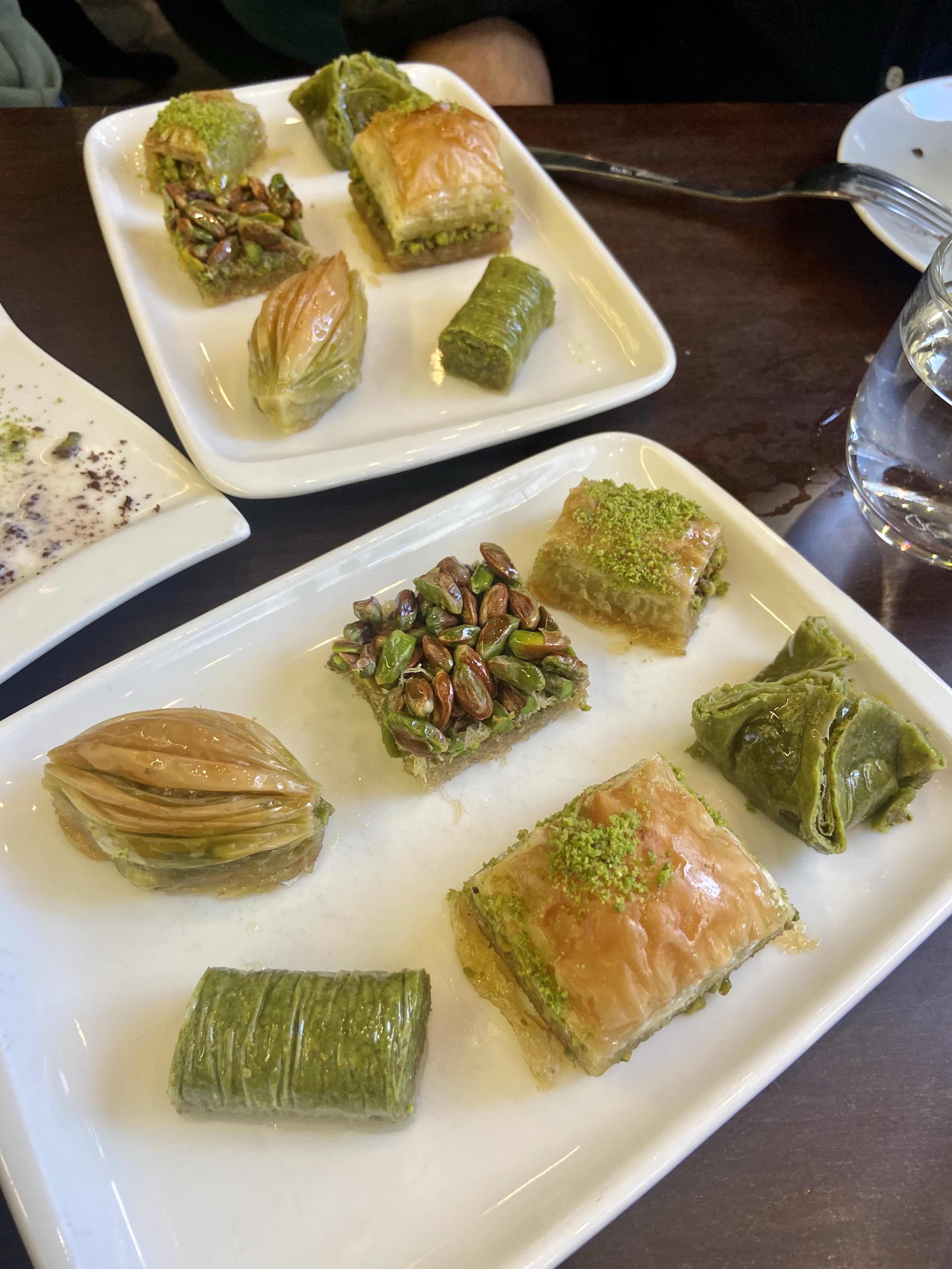 Altın vuruş, Güllüoğlu’nda çay, kahve ve baklavayla oldu. Baklava zaten baklava, onu anlatmaya hacet yok da, şu “soğuk baklava” dedikleri şeye baklava değil mesela Sütlü Hayriye falan diye isim koysalar yemin ederim daha çok seveceğim! “Baklava” diye düşünmeyince hoş bir sütlü tatlı olabilir, ama baklava diye düşününce cinlerim tepeme çıkıyor ahah! Neyse, kendimce tatlıyı Hayriye ismiyle vaftiz ettim artık bu şekilde yiyeceğim.