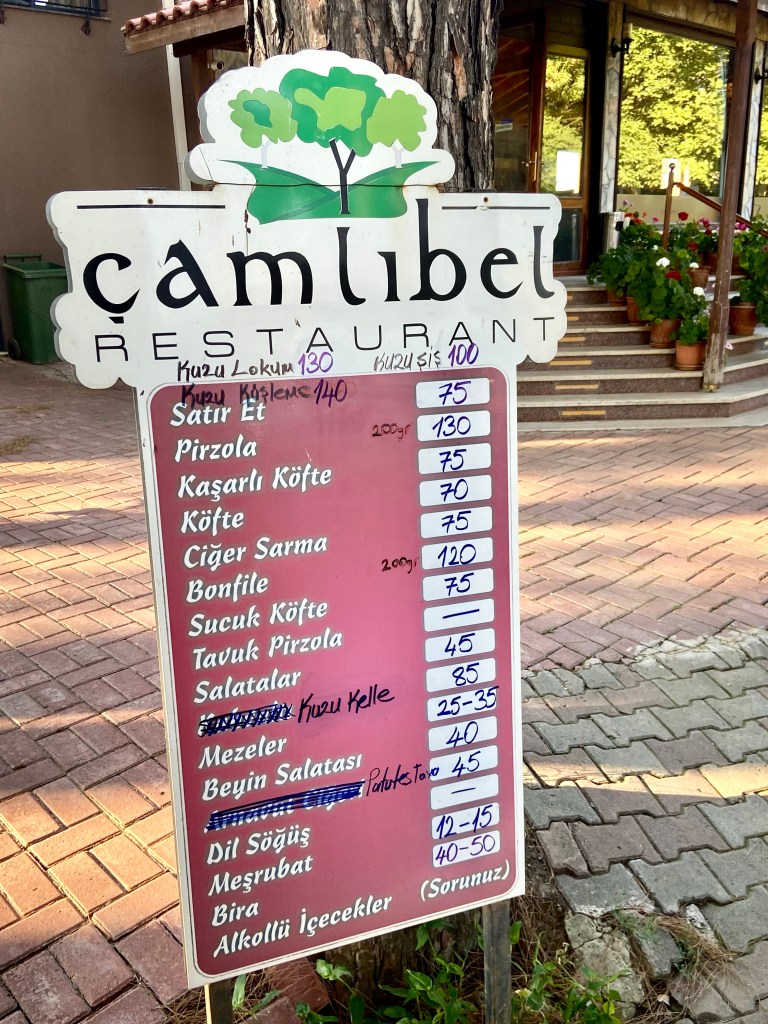 Fiyatlara gelince… Çamlıbel ünlü olduğu için mi bilmem, fiyatlarda İstanbul’la büyük bir fark yok. (Ki bu çılgın enflasyon döneminde bu fiyatların Ağustos ayına ait olduğunu söyleme ihtiyacı hissediyorum, eylül malum zam ayı oldu, şu an zamlanmış olabilir.) Yani bu sefer öyle cümbür cemaat yol parası verip yiyip gelmeye değer ne bir fiyat farkı görebildim ne de kendi adıma lezzet farkı. Fakat yolunuzun üstüyse oturup yenir mi? Elbette. Pişman olur musunuz? Muhtemelen hayır. Bizden daha şanslı güne denk gelebilir misiniz? İhtimaldir. Sadece sanırım eskisi kadar büyük heveslerle gitmemek gerek…