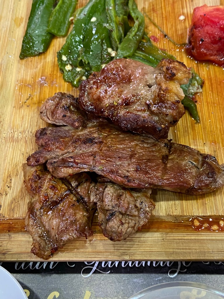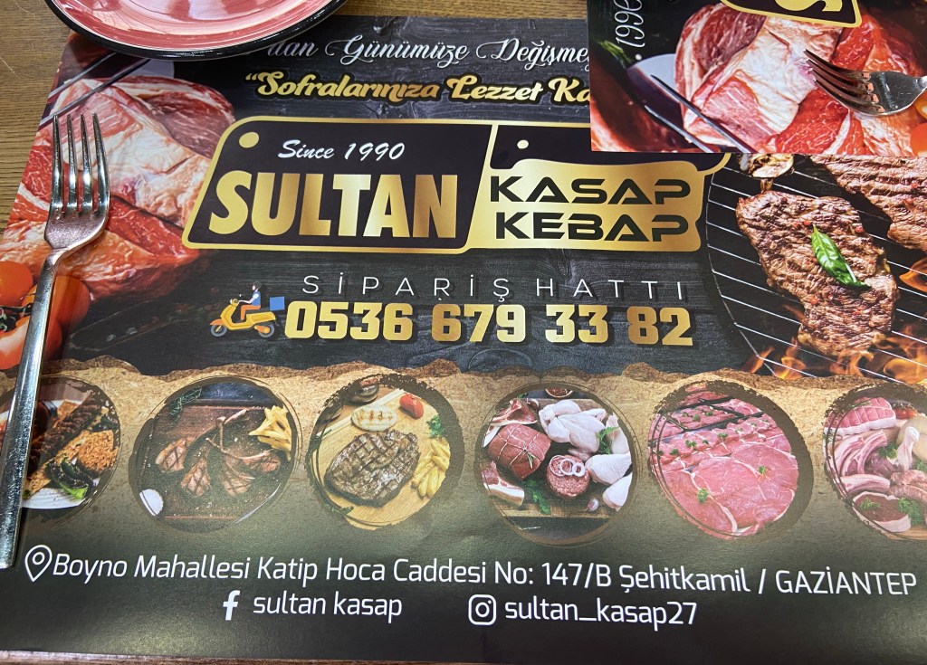 Antep, Antakya gibi şehirlerde ciddi bir “kasap” kültürü var, kasaptan et seçip pişirtmek, fırına tepsiyle kebap göndermek gayet sıradan, hatta eskiden kebapçıların ve tatlıcıların bir olduğunu da biliyoruz. Bugün aynı kültür devam ediyor, bu yüzden pek çok iyi et yiyebileceğiniz yerin adı “kasap” (İstanbul’da da Hocapaşa’da böyle meşhur bir “Kasap Osman” vardı, bilenleriniz vardır kesin), bizim ilk durağımız da Sultan Kasap oldu nitekim. Şehrin civcivli kısmının az dışında, Şehitkamil’deki bu dükkanda etinizi seçip dilediğiniz gibi pişirtebiliyorsunuz. Ayrıca gerçekten nefis bir tandırları var. Olması gerektiği gibi, aceleye getirmeden pişirilmiş tandırda etin bütün yağı erimiş, suyuna bırakmış, et de yumuşacık ve lif lif. Biz tandırın dışında kıyma kebap, sebzeli kebap, küşleme ve pirzola da yedik. Hepsi hakikaten son derece lezzetli, kurutulmadan tam kıvamında pişirilmişti. Ocakçısının ehil biri olduğu belli. Masaya gelen piyaz, salata, ezme gibi yancıların da hepsi gayet iyi, hatta açık söyleyeyim, bence esas şu “tablacı salatası” stilinde salatalar çok başarılı, şöyle tazecik reyhanlı filan, işte insana esas et yediren bu salatalar oluyor! Her şeyin özenli geldiği bu yer standart görünümlü, zaten gündüz esnafın daha çok tercih ettiği bir yermiş. Havalı bir görüntü beklemeden güzel et yemek istiyorsanız rahatlıkla gidilebilecek bir mekan, zaten fotoğraflar sanırım etin kalitesini yansıtmaya yetiyordur!