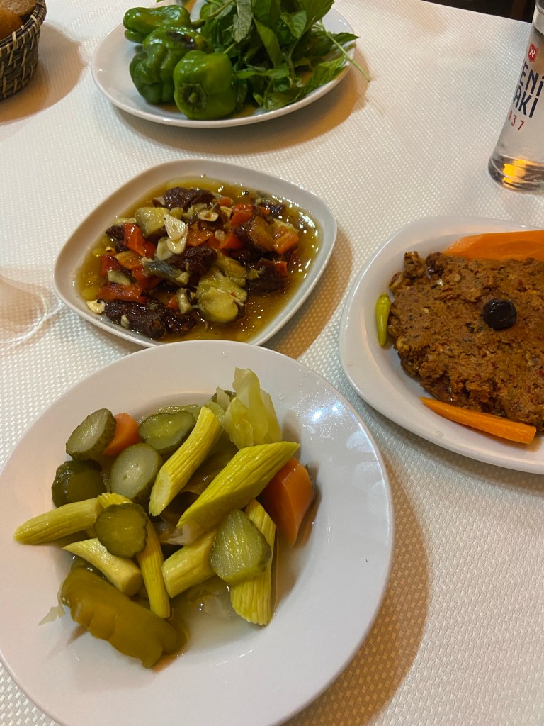Bahsedeceğim üçüncü yer ise kebap yapsa da özünde bir meyhane, Akınal Gar Lokantası. Tipik Cumhuriyet mimarisinin izlerini taşıyan gar binasına kurulu bu meyhane, aslında bir dönemin anlayışını da yansıtıyor; her şehirde en azından bir tane tertipli, servisi iyi, beyaz örtülü, düzgün yemek yenecek içkili bir lokanta bulunması anlayışını… Duvarda asılı enstrümanlar, fotoğraflarla çok tatlı bir havası var buranın. Mezeler dizili, sıcak yemek tarzında da bir iki çeşit var ve tabii ki kebap yapıyorlar! Elbette yemekleri sıradışı değil ya da şehrin en iyi kebabı burada yapılmıyor, ama gar meyhanesi insana o dönemi anımsatan tarzıyla bence Antep’e gidildiğinde sırf bu havası için uğranması iyi olacak bir yer. Antep peyniri, ezme, turşu, sucuklu humus gibi mezelerin üstüne Ali Nazik yiyip rakılarımızı yudumladığımız bu mekanı da, o akşam masadaki eğlenceli muhabbetlerimizi de ben hep hatırlayacağım mesela. Sonuçta yemek dediğimiz şeyin doğasında bu da var, olay sadece tabağın içindekinin lezzeti değil, biraz da bizim modumuz, ortamın havası, gülüp eğlenmenin tadı… Ne yazık ki meyhanenin kapatılacağına dair söylentiler var, umarım öyle bir hataya düşmek yerine bu nostaljik mekanı sonuna kadar yaşatmayı seçerler.