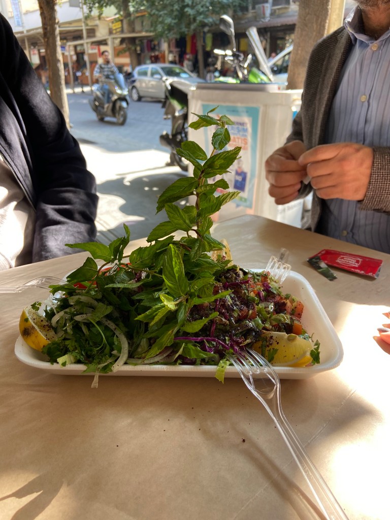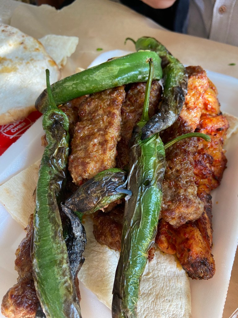 İkinci kebapçı tavsiyem ise biraz daha ünlü, artık bilenin bildiği bir yere ait, Kebapçı Ömer. Çarşıya daha yakın olan Ömer’in yeri tam bir salaş kebapçı mekanı. Çok az masası var, ayakta veya biraz bekleyerek yiyebilirsiniz, zaten yiyen kalkıyor. Az bekleyip sandalyeye çökerek köpük tabakta kebap yemekle derdi olmayanlar mis gibi kıyma kebap, kuzu şiş, yağlı kara yiyebilir. Enteresan şekilde tavukları da hoşuma gitti, normalde kebapçılarda tavuk hoşuma gitmez, ama bunun terbiyesi iyiydi. Salata da kallavi porsiyon, o da köpük tabakta. Yine şehrin yerlisinin sıkça gittiği, gelene de tavsiye ettiği Ömer’i beğenme ihtimaliniz yüksek.
