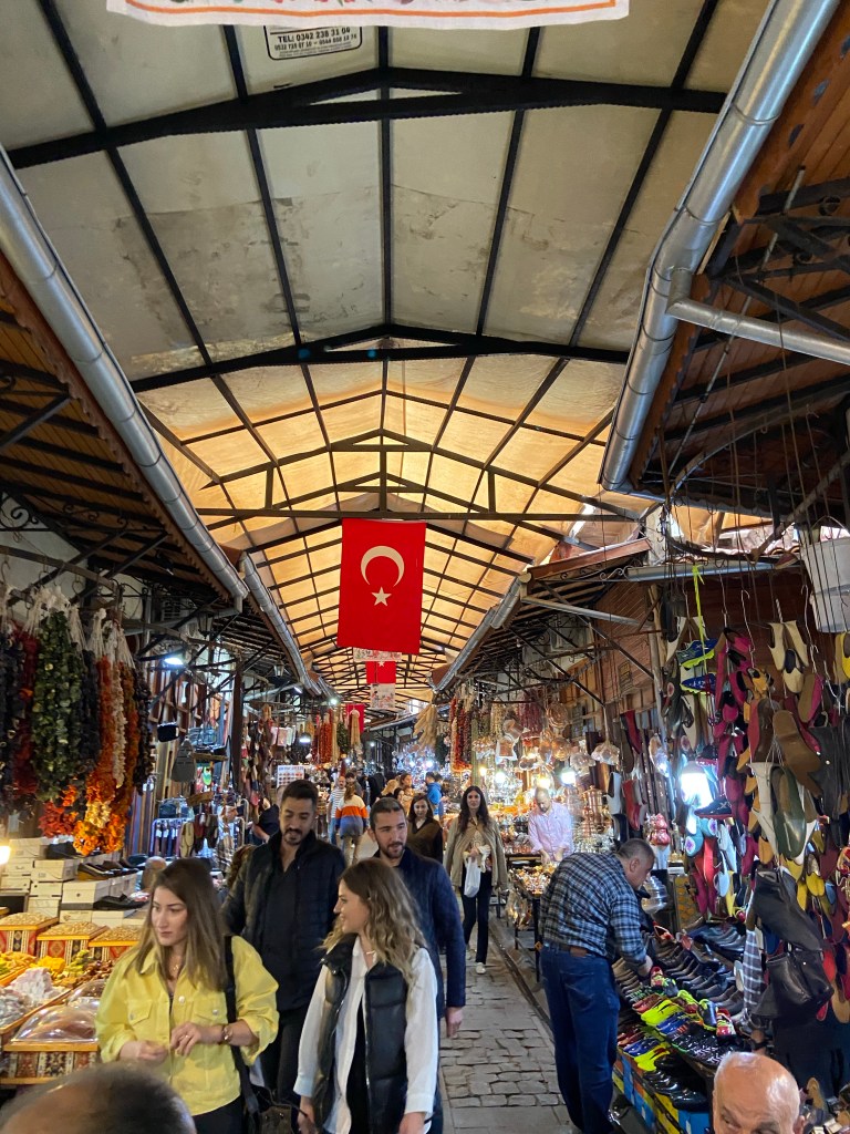 Benim gözümle çarşı, çok sevdiğim ve sık gittiğim Mısır Çarşısı’nın az daha küçüğü gibiydi, az daha derli toplusu ve eski usule -her sokağı bir iş koluna ayrılmış çarşı modeline yani- daha yakın kalabilmiş olanı… Yukarıda asılı kuruluklar arasından geçerek bakınarak, baklavacılar sokağında ne çok marka var diye düşünerek gezerken ise insana Mısır Çarşısı’ndan artık olmayan bir ses eşlik ediyor, bakırcıların çıkardığı bakır dövme seslerinden gelen nefis bir müzik. Bakırın sesi hakikaten ne yumuşak, ne güzel…