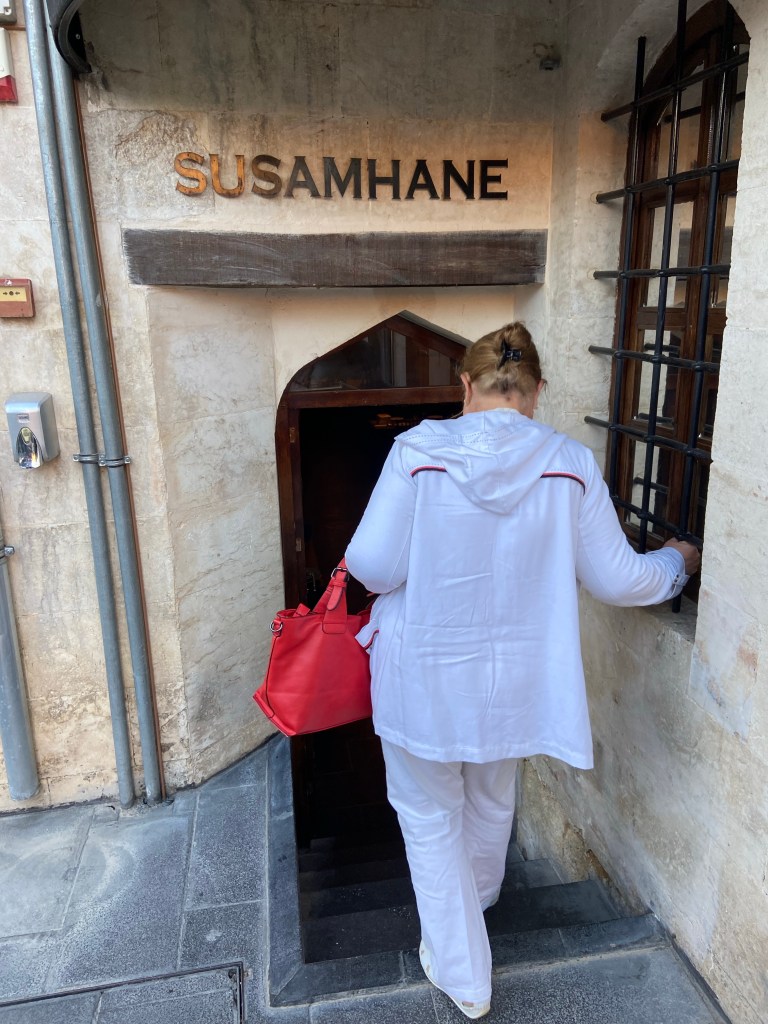 Bu ikisini görüp gözümüzle sevdikten sonra Hışvahan’a girebiliriz. Hışva, “pamuk kozası” demek ve hakiki bir ticaret şehri olan Antep’te pek tabii ki böyle ticari değeri haiz ürünlere özel hanların olması da pek normal. Ne güzel ki, şimdi bunlar birbirinden şık yerlere de dönüştürülmüş durumda. Hışvahan, bunların içinde en şık, en gerçek lüks olan… (Ne demek “gerçek lüks”, bence “görgüsüzlüğe oynayan değil, hakikaten incelikli bir güzellik, rafine bir zevk yansıması sunan demek.) Konaklama yönünden cidden muazam pahalı, fakat güzelliği temaşa etmenin tek yolu konaklamak değil elbet, nefis bahçesind eoturup soluklanmak, güzel bir kokteyl içmek, bir kadeh şarap yudumlamak yahut iyi bir kahve içmek de buna yeter. Fakat içerideki kuyuların camla kapatılmış hallerine de bakılmalı, hele girişte sağdaki Susamhane muhakkak girilip gezilmeli, eskiden susamı dövüp tahin yaptıkları taşlara bakmalı, en son cam arasında muhafazaya alınmış eski han kapısına da son bir göz değdirilmeli. İşte o zaman tamam olur.