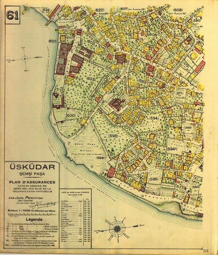 Bonus: Bu da sevgili Burak’ın bahsettiği Pervititch planlarından biri, Üsküdar’da sahile yakın bostanları gösteren sigorta planı. Bugünkü beton meydanların yerinde belki de sadece 50-60 yıl öncesine kadar bostanlar vardı, kim bilir?