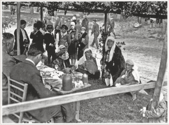 Şimdi gelelim masadaki “opsiyonel” kısma: Kuzu veya oğlak. Nasıl ki Paskalya Hristiyanlar için bir “kışın orucundan sonra baharla gelen et bayramı” ise Hıdrellez de bilhassa Müslümanların “et bayramı” olmuş. Yakın tarihki bu iki kutlamadan önce, celepler pek kuzu, oğlak işlemezmiş. (Bunda muhtemelen yavruların en azından belli bir boya gelene kadar korunması amacı var.) Hıdrellez ise bir kutlama günü olarak -yine tıpkı diğer düğün dernek bayram günlerinde olduğu gibi- sıradan halkın kuzu/oğlak çevirme gibi istisnai et yediği günlerden… Pikniğe, sayfiyeye sefaya gidildiğinde o gün kuzu ve oğlak kapama yahut çevirme yemek adettenmiş, buna bol taze otlar, yeşillikler, mayalanan yoğurttan ayranlar ve pek tabii rakı ile duziko başta olmak üzere içki de eşlik edermiş. Ayrıca sanılmasın ki Hıdrellez’i sadece Müslümanlar kutlarmış, bilhassa İstanbul’da her dilden şarkının, polkanın, dansın birbirine karıştığı, pek şenlikli bir gün olarak tasvir edilir Hıdrellez.