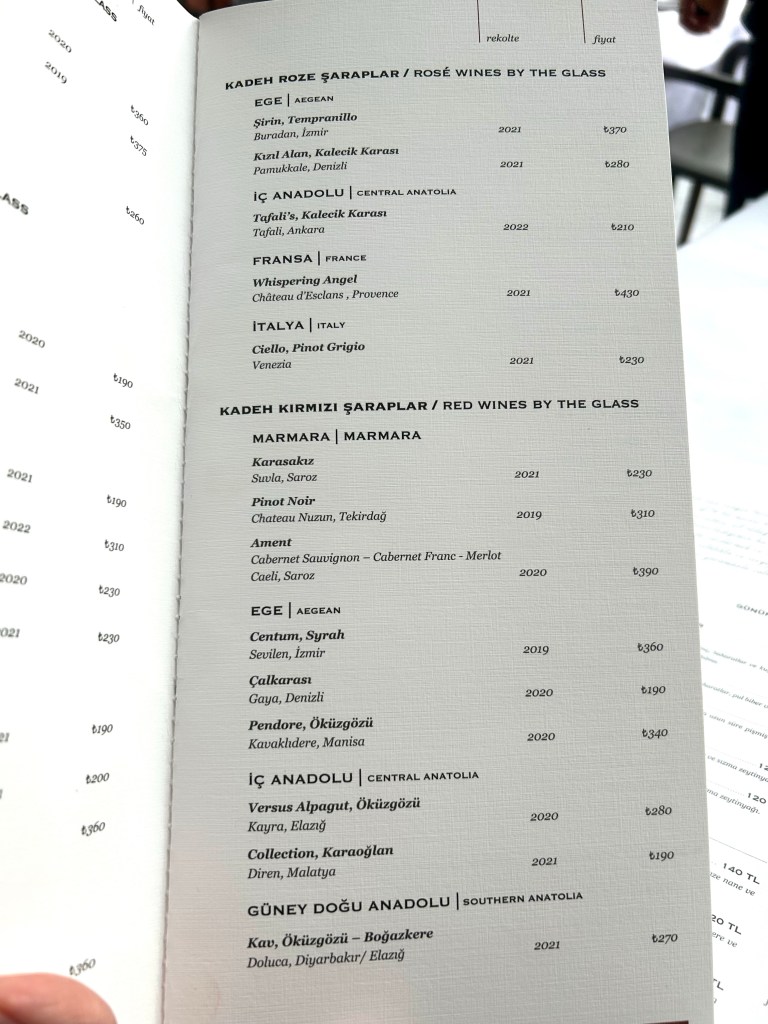 Anadolu lezzetlerinin rakıyla çok iyi uyuştuğu muhakkak ve bu alışık olduğumuz bir eşleşme, ama işin gerçeği, zeytinyağlılar ve soğukların çoğu beyaz şaraplarla, kuzu ve dana etli yemekler ise elbette kırmızı şaraplarla harika eşleşiyor. Fakat ne yazık ki bunu deneyebileceğimiz çok fazla yer yok, yerel tatların “füzyon” ya da “modern” halleriyle belki, ama geleneksel halleriyle birlikte alkol servisi bulabileceğimiz mekan ne yazık ki çok az. Olanlara, açıkçası bu servis kalitesinde, bu şıklıkta, bu konseptte değiller. (Sonuçta her konsept kendi içinde değerlendirilmeli!)