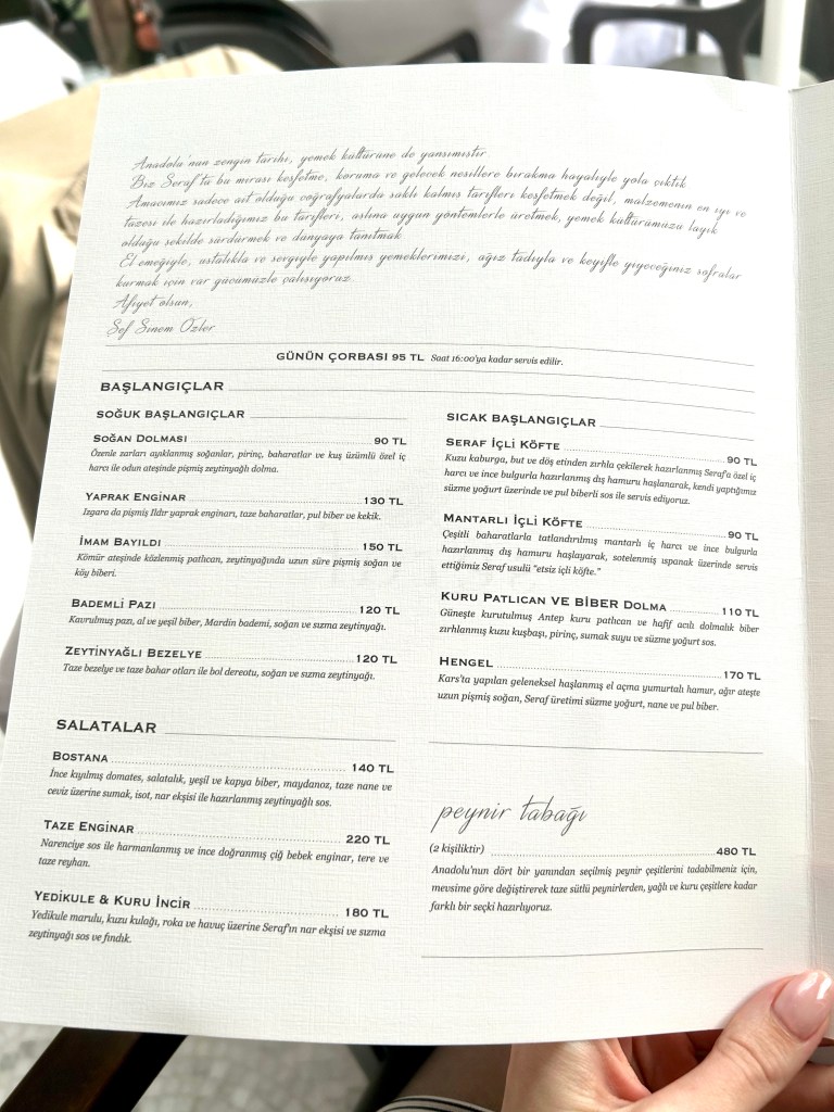 Kimileri şeflerle tanışmak, “ortam”lara dahil olmak ister. Kimileriyse sadece beğendikleri şeflerle, beğendikleri için konuşabilmek, onları farklı yapanın ne olduğunu öğrenmek isterler. Ben Seraf Mahmutbey’e ilk gittiğimde arkadaşımın önerisiyle gitmiştim, Neşe ve ailesi düzenli olarak Gayrettepe’den kalkıp taaa Mahmutbey’e gidiyorlardı. Ki, Mahmutbey’de o ayarda, o tarzda bir restoran açıldığı görülmüş şey değildi. Ne Boğaz manzarası vaadediyordu ne “görme-görülme” mekanı olmayı, sadece çok iyi yemek ve iyi servis vaadediyor, bunu da sonuna kadar yerine getiriyordu. Zaten insanları İstanbul gibi trafikli bir şehirde kaç semt öteden kaldırıp getiren de buydu: Mükemmel içli köfteler, Mardin usulü kuzu, Edirne usulü zirva, mevsimine göre kâh Karadeniz’den bir ot yemeği, kâh Ege’den bir dolma… Anadolu ve Balkanlar’dan miras birçok tarifin, mümkün olduğunca aslını yansıtan şekilde pişirilmiş hallerini sunuyor, “yenilik”ler yerine doğru teknik ve iyi malzemeye odaklanıyordu Seraf. Yeniliğe ihtiyaç duyduğumuz gibi, bazı şeylerin eskisiyle bire bir aynı kalmasına da ihtiyaç duyduğumuzu düşünen biri olarak, Seraf’ın geleneksele daha yakın duran anlayışını sevmiştim.